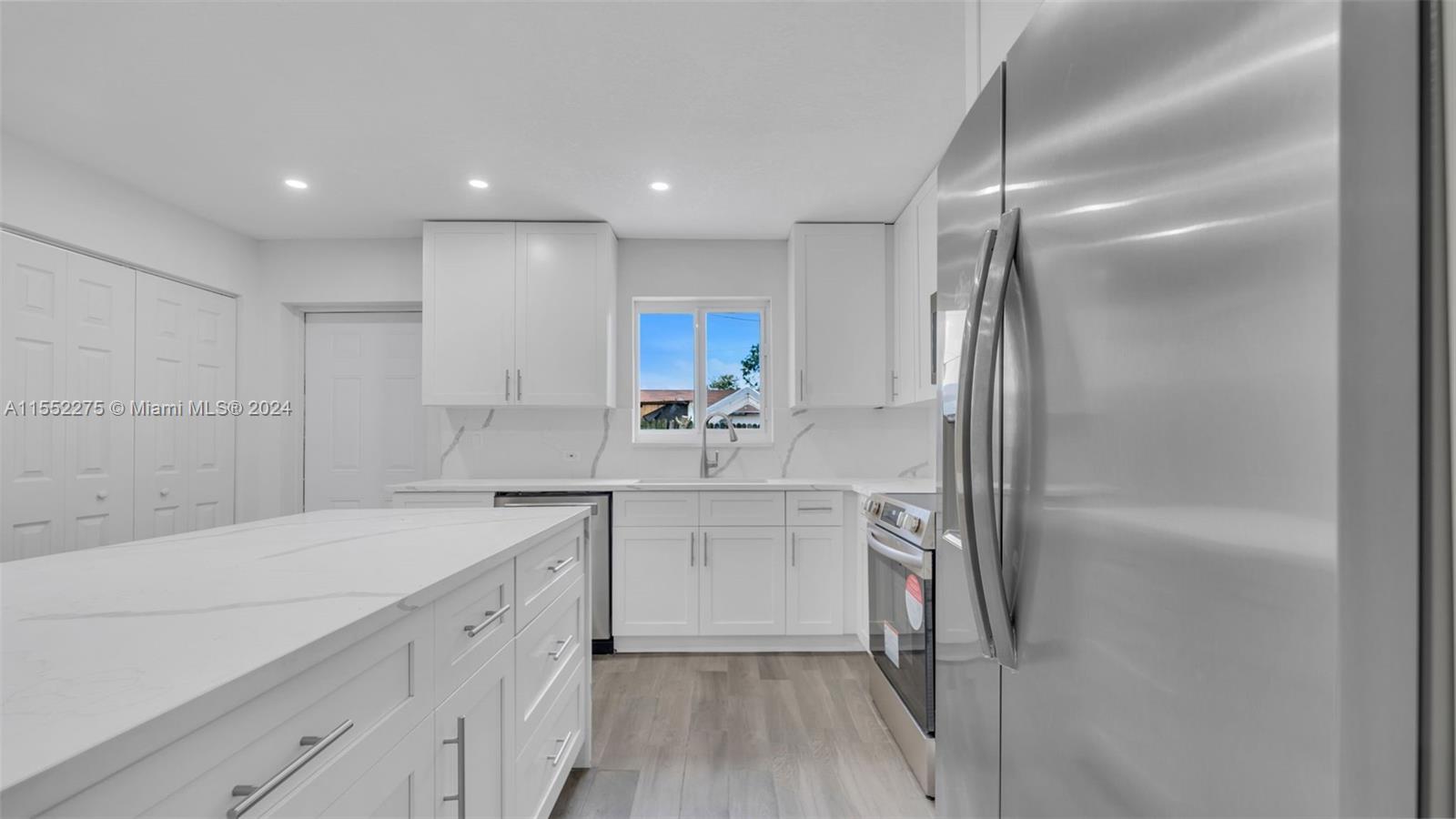 Recently REMODELED, this adorable three-bedroom, two bath home with a bonus room that can be used as a den or office. It is on an interior lot in SOUTHEAST HIALEAH. It has been recently painted inside and outside, with new landscaping, laminate flooring, and new closets and doors. It is conveniently located near Lejune Road, Miami Airport, and major highways. Enough space for a Boat or large vehicle to park on the side of the home. It is ready to move in.