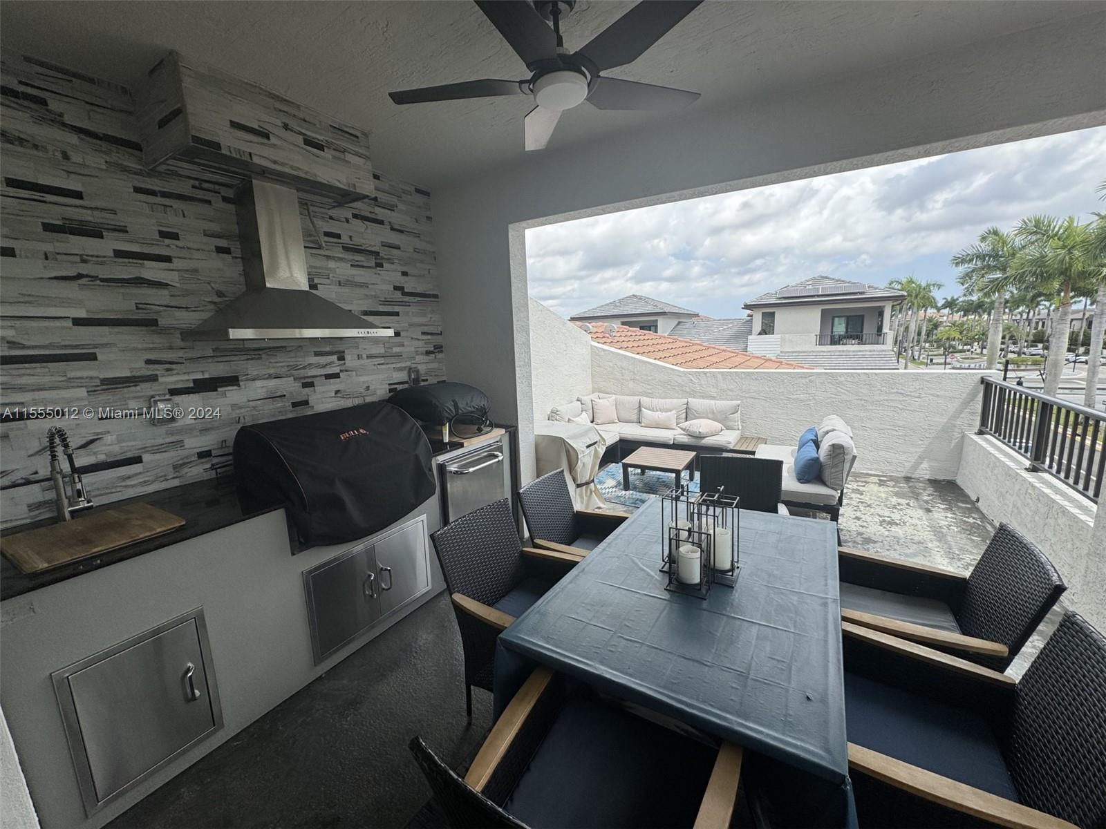 Luxury Living in this 3 Story Corner Unit TH with unobstructed views of the Spectacular Main Paseo in Urbana. 3 Bedrooms, 2 Full Baths, 2 Half Baths, bonus room, and a 2-car garage w/EV charger. Main level open concept modern kitchen with stainless-steel appliances, quartz countertops and ceramic tile floors. 2nd & 3rd levels have hardwood floors. All bedrooms have custom closets, upgraded lights and fixtures. Laundry area and storage. Bonus room with two rooftop terraces, outdoor BBQ kitchen area that provides for great entertainment. This is a smart home which can be managed thru apps for A/C, doorbell, lights, security system, garage, and digital key. Urbana offers unparalleled amenities including a clubhouse, pool, and fitness center. Live in the heart of Downtown Doral.