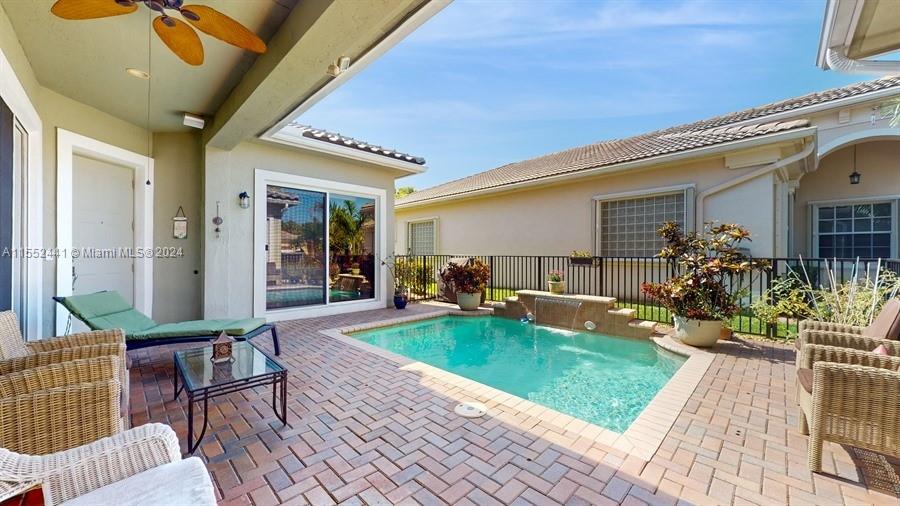Simply a beautiful Courtyard Pool Home unique on its own, nestled in one of Parkland most sought after communities of Heron Bay. This Cayman model of 4-bedroom, 3 bathroom offers a perfect blend for families seeking both comfort and privacy. As you enter through the front door, a private courtyard welcomes you with its own pool. The separate bedroom is ideal for your guest and opens to the main living area with its grand foyer into the coziness of this home. Enjoy this home with a brand new 2022 Roof!, Freshly painted, 2021 AC unit with new air ducts, new pool pump motor, surround sound throughout the house and pool, large lot with no neighbors on the north side. Resort-style amenities:2 pools, tennis courts, playgrounds, racquetball & pickleball courts, and fitness centers! A+ schools.