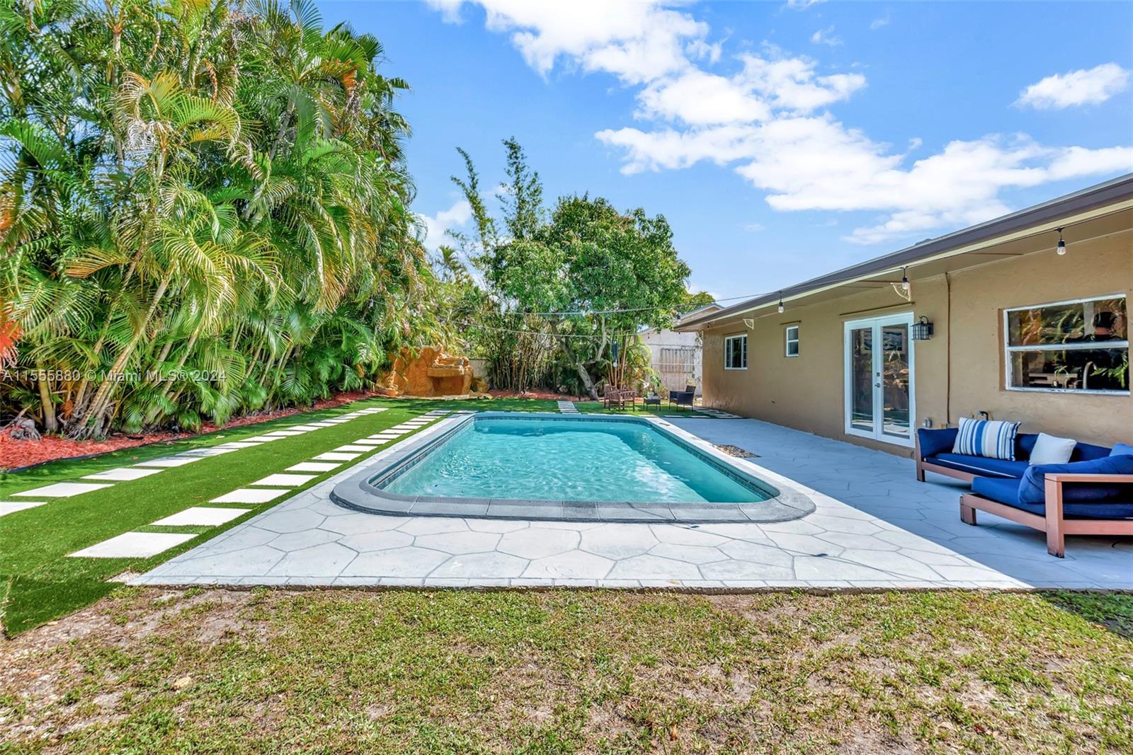 Ready to move in, this home features a 3 bedroom 2 bath, 1 car garage with Pool. Remodeled backyard with scenic views. Large Pool area, Grotto with waterfall, BBQ covered area, turf throughout the back, LED lighting and full privacy landscaping and fence. Making this backyard Oasis private and relaxing. All updated Samsung kitchen appliances with LED lighting. Updated Smart LED lighting throughout that can be controlled by your smart phone to adjust the lighting indoor and outdoor. Bathrooms have been updated. Alarm and surveillance system with door camera and AC temperature control. Home has plenty of room for large RV, boat or both, no associations to deal with. Stamped concrete driveway with spacious one car garage.