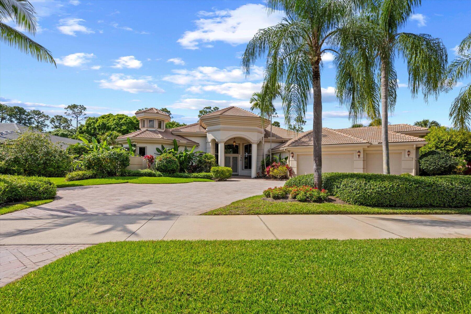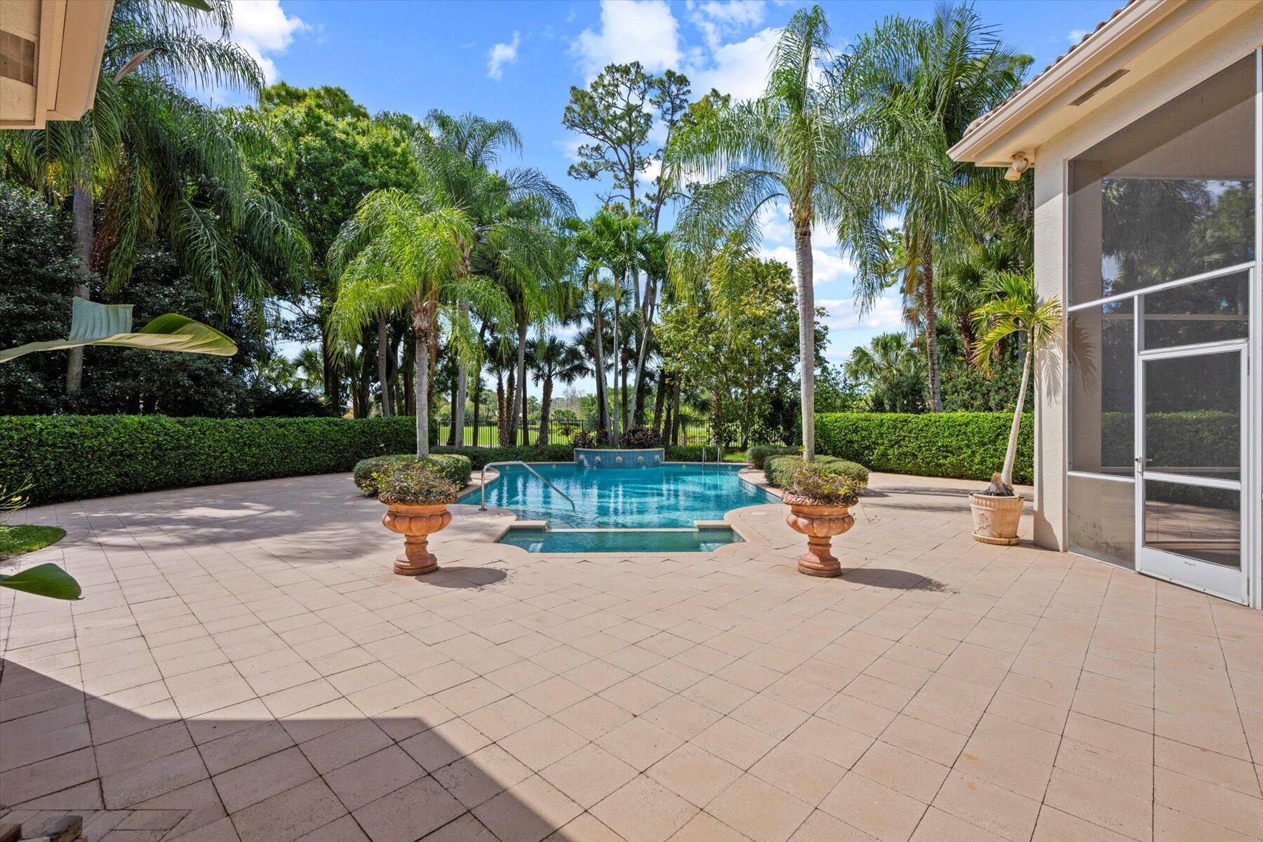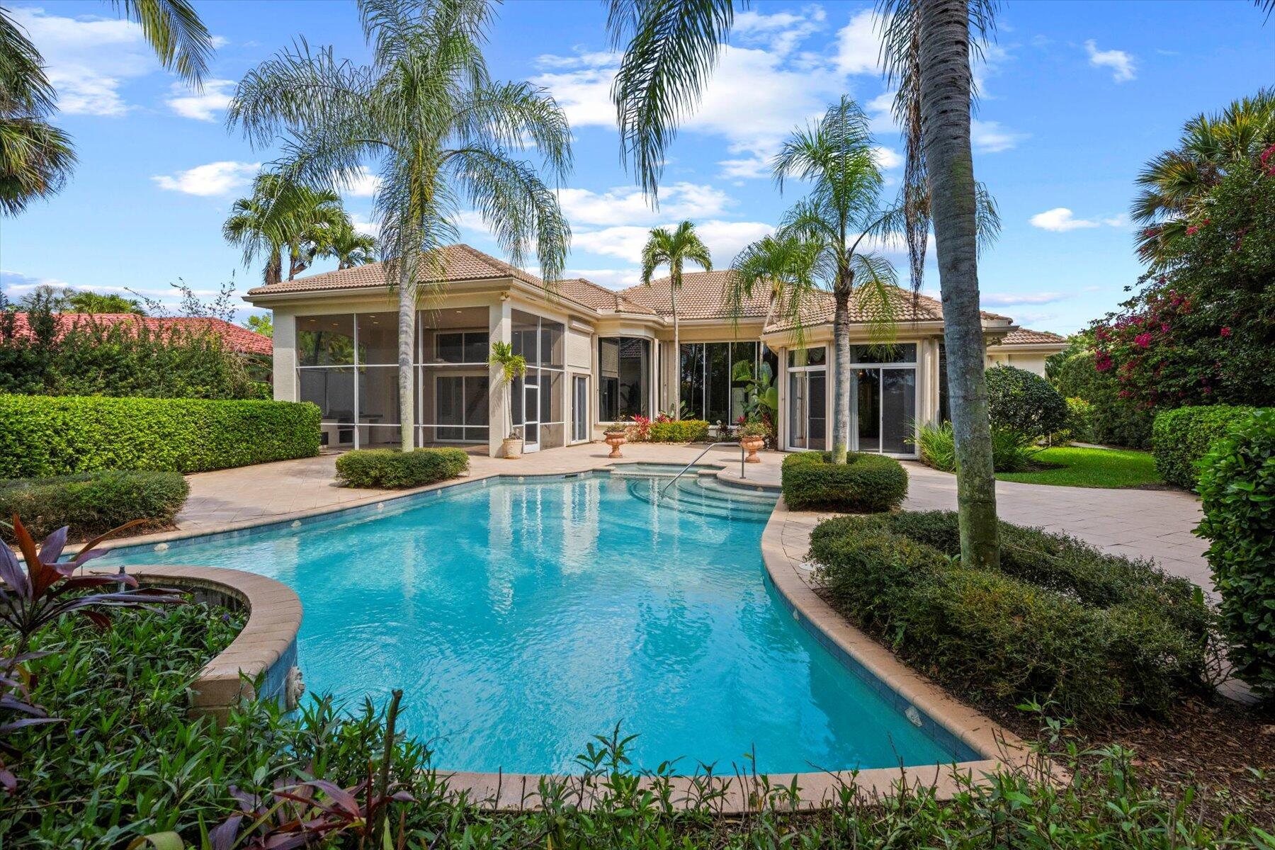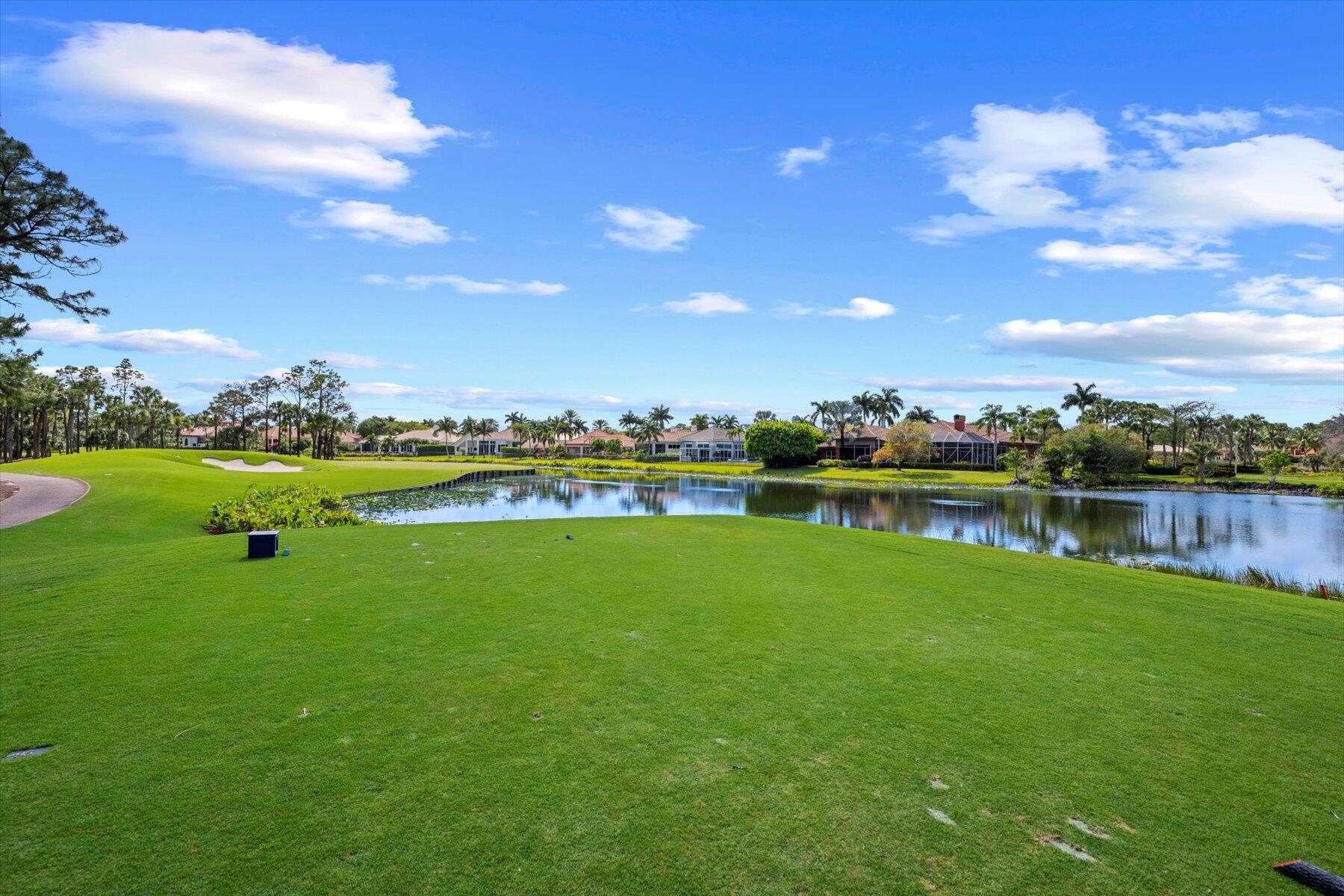 First time on the Market in Breakers West and just 20 mins to downtown West Palm Beach. With 4,224 SF Living Area, this spacious home features 3 Bedrooms + Office + Exercise Rm, 3.5 Baths, and oversized 3-Car Garage with room for golf cart too. Situated on private 1/2 acre lot with water & golf views along 11th hole of Breakers Rees Jones Golf Course. Neutral marble stone flooring, high ceilings, extensive crown molding and solid core interior doors. The Primary Suite is its own retreat with 2 walk-in closets, an Exercise room or possible 2nd Office, and marble Bath featuring lg marble shower, separate tub and 2 toilet areas. Lg office with built-in bookcases and high ceilings. The pool and patio are perfect for outdoor entertaining with screened summer kitchen/grill area and an open