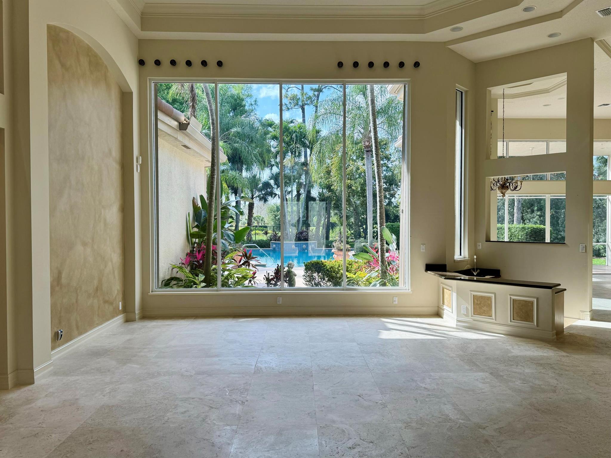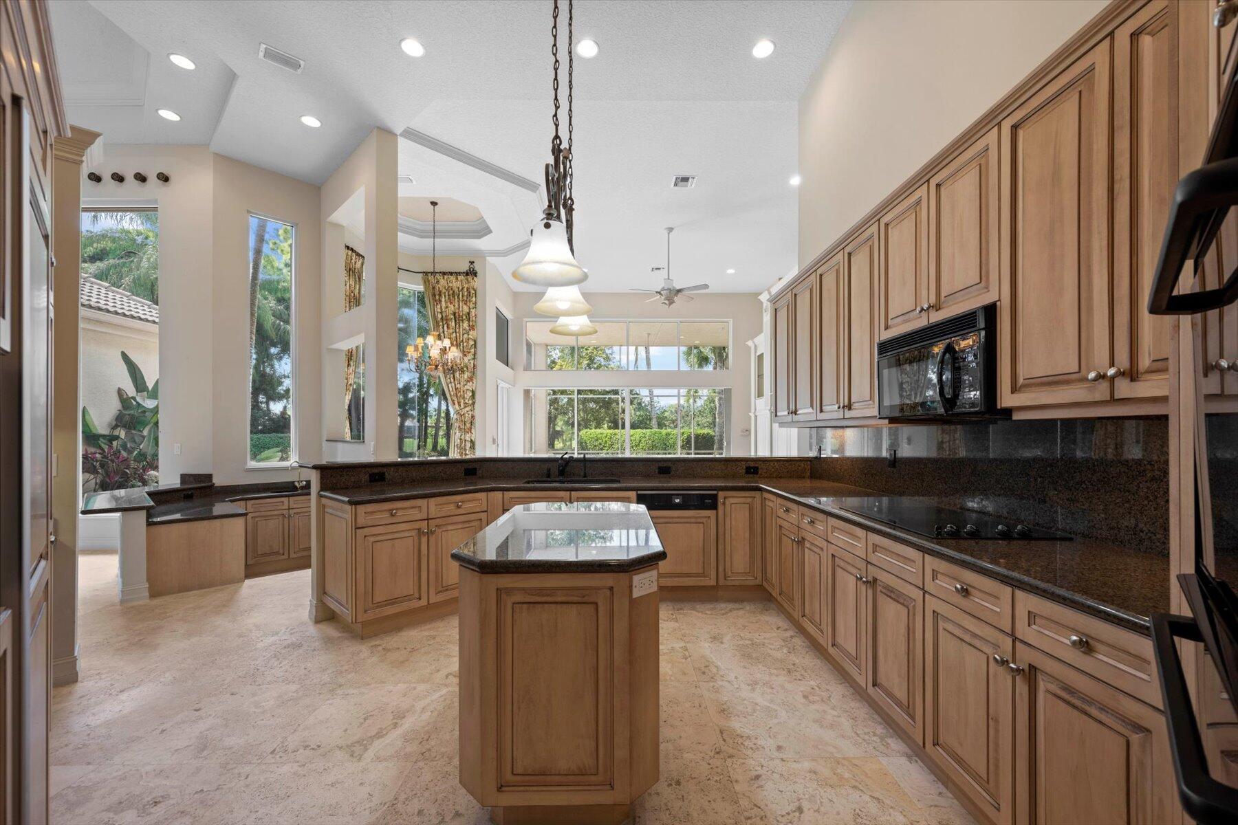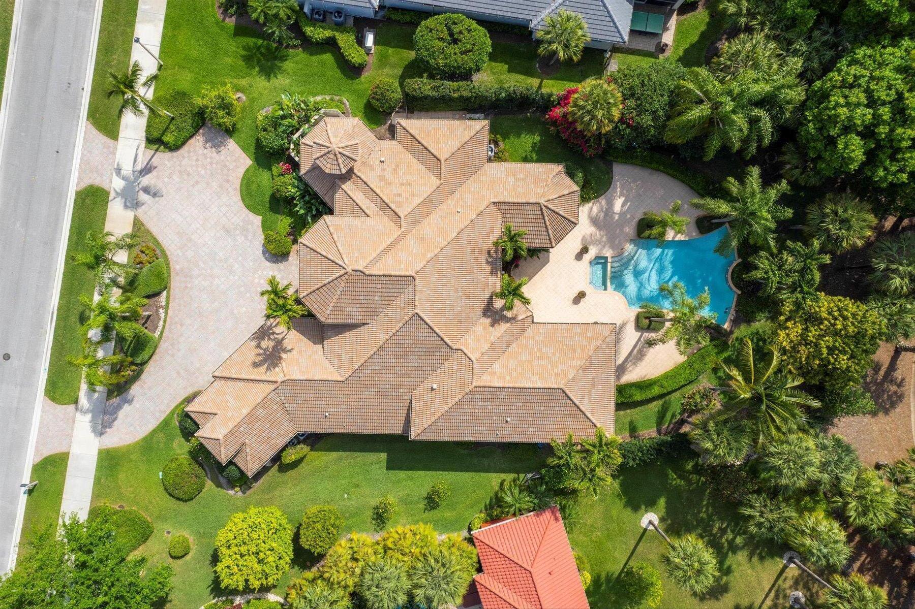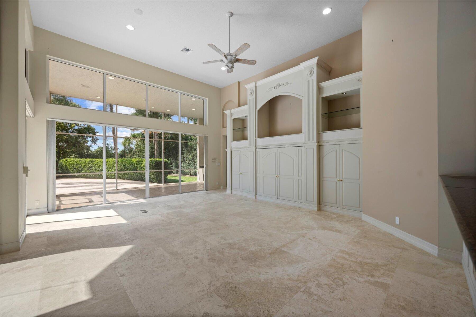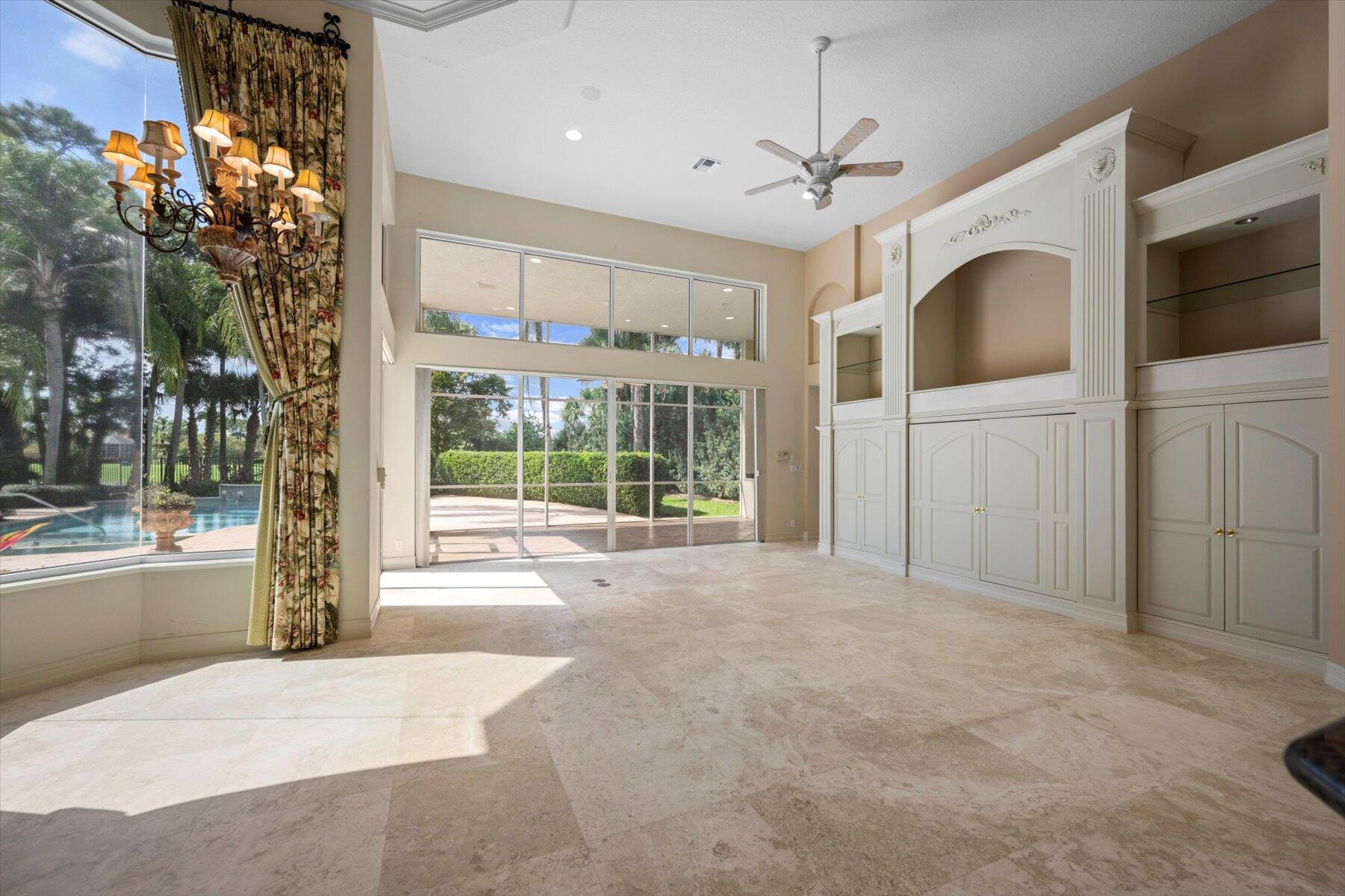 First time on the Market in Breakers West and just 20 mins to downtown West Palm Beach. With 4,224 SF Living Area, this spacious home features 3 Bedrooms + Office + Exercise Rm, 3.5 Baths, and oversized 3-Car Garage with room for golf cart too. Situated on private 1/2 acre lot with water & golf views along 11th hole of Breakers Rees Jones Golf Course. Neutral marble stone flooring, high ceilings, extensive crown molding and solid core interior doors. The Primary Suite is its own retreat with 2 walk-in closets, an Exercise room or possible 2nd Office, and marble Bath featuring lg marble shower, separate tub and 2 toilet areas. Lg office with built-in bookcases and high ceilings. The pool and patio are perfect for outdoor entertaining with screened summer kitchen/grill area and an open