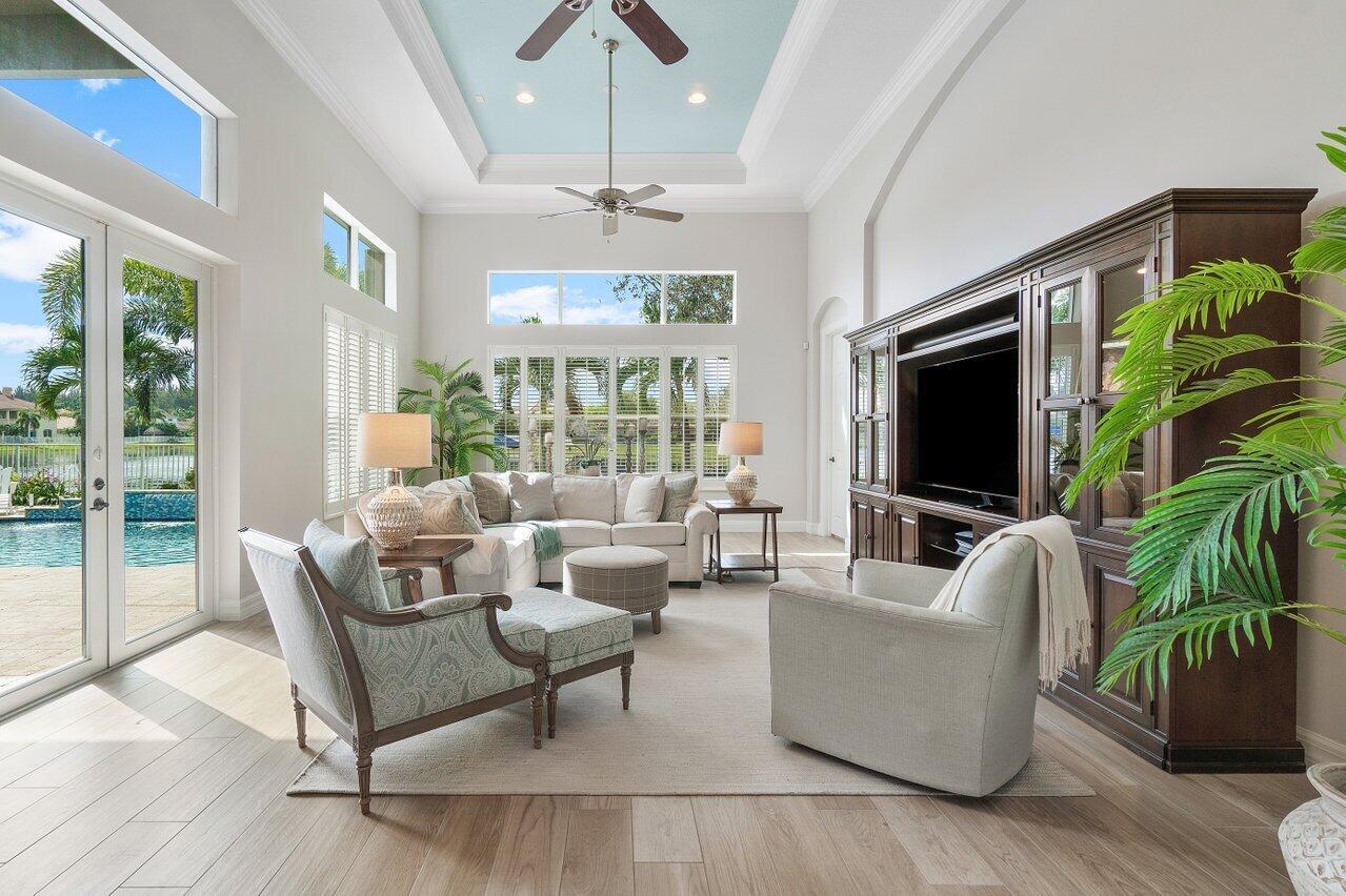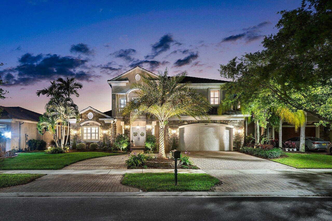 Stunning ''Hibiscus'' model reimagined with the finishes you want today! 5 bedrooms + office + loft! Backyard is truly an oasis, completely renovated in 2019, w/ salt chlorinated pool, travertine, LED colored lighting, glass mosaic tile, sheer descent & sun shelf. Lush landscaping custom by Sanctuary Gardens exudes a modern, tropical feel. Double-door entry w/ soaring 18+ foot ceilings in living room punctuated by a floor-to-ceiling fireplace. NEW kitchen in 2022 w/ shaker cabinetry, lighted glass uppers, Calacatta quartz counters, porcelain & marble backsplash, induction cooktop & beverage fridge. The completely open kitchen w/ huge island creates that WOW factor you are looking for. NEW 2022 porcelain wood-look tile floors throughout 1st level.