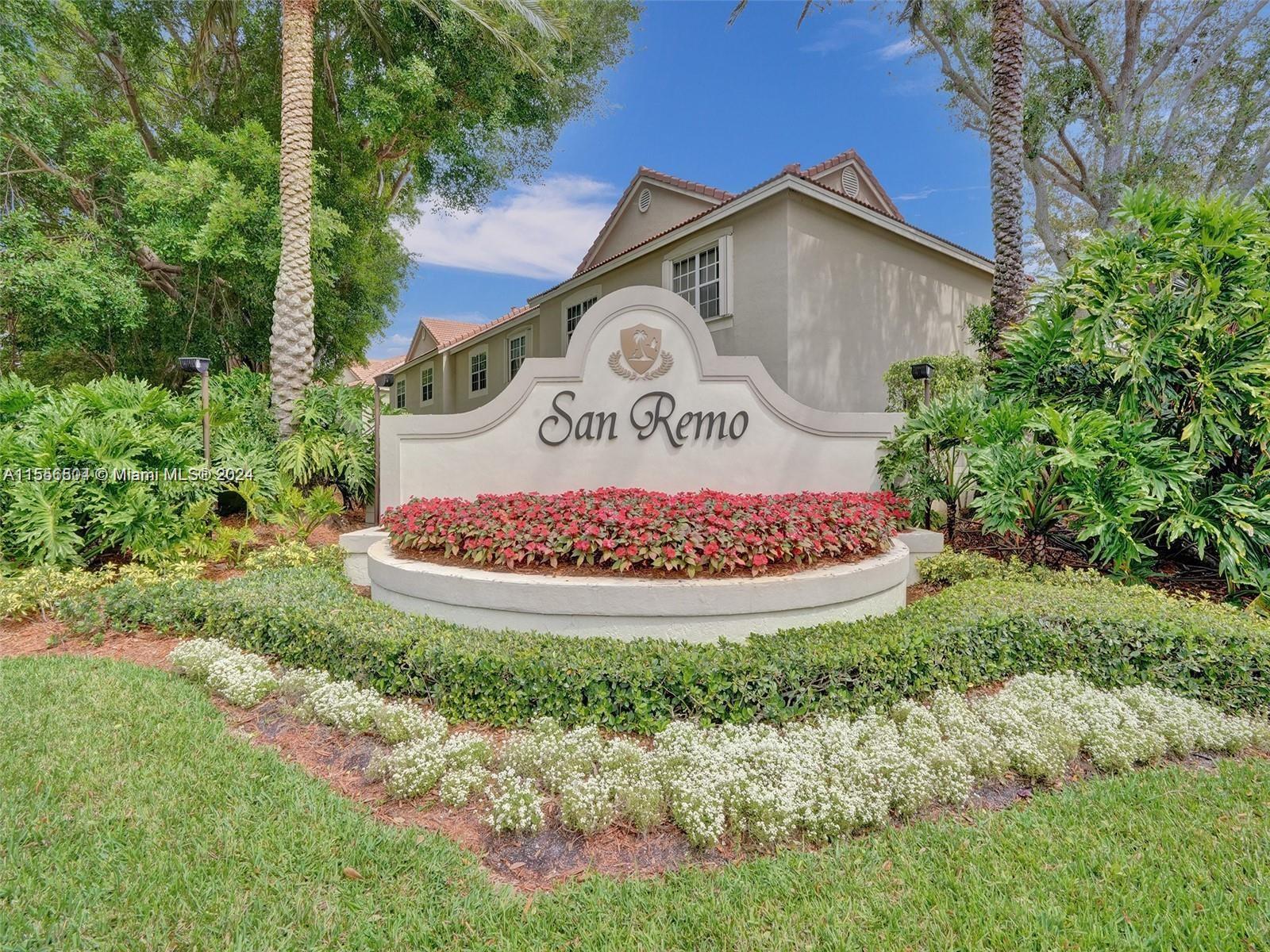 Located in the charming community of San Remo in Weston, offers a beautiful 3-bedroom, 2.5-bathroom townhouse. This meticulously designed home features a spacious open-concept layout, a gourmet kitchen with granite countertops, and elegant porcelain tile floors, like-new appliances. The rooms with lots of natural light, and laminate flooring. A screened patio with space for your patio set and BBQ overlooking lush gardens, and the one-car garage adds convenience. Located just minutes from I-75 and I-595, walking distance to Eagle Point Elementary, supermarkets, restaurants and parks, and one of the most important shopping centers in the area Sawgrass mills. Features include gated entrance, community pool, playground and basketball court.