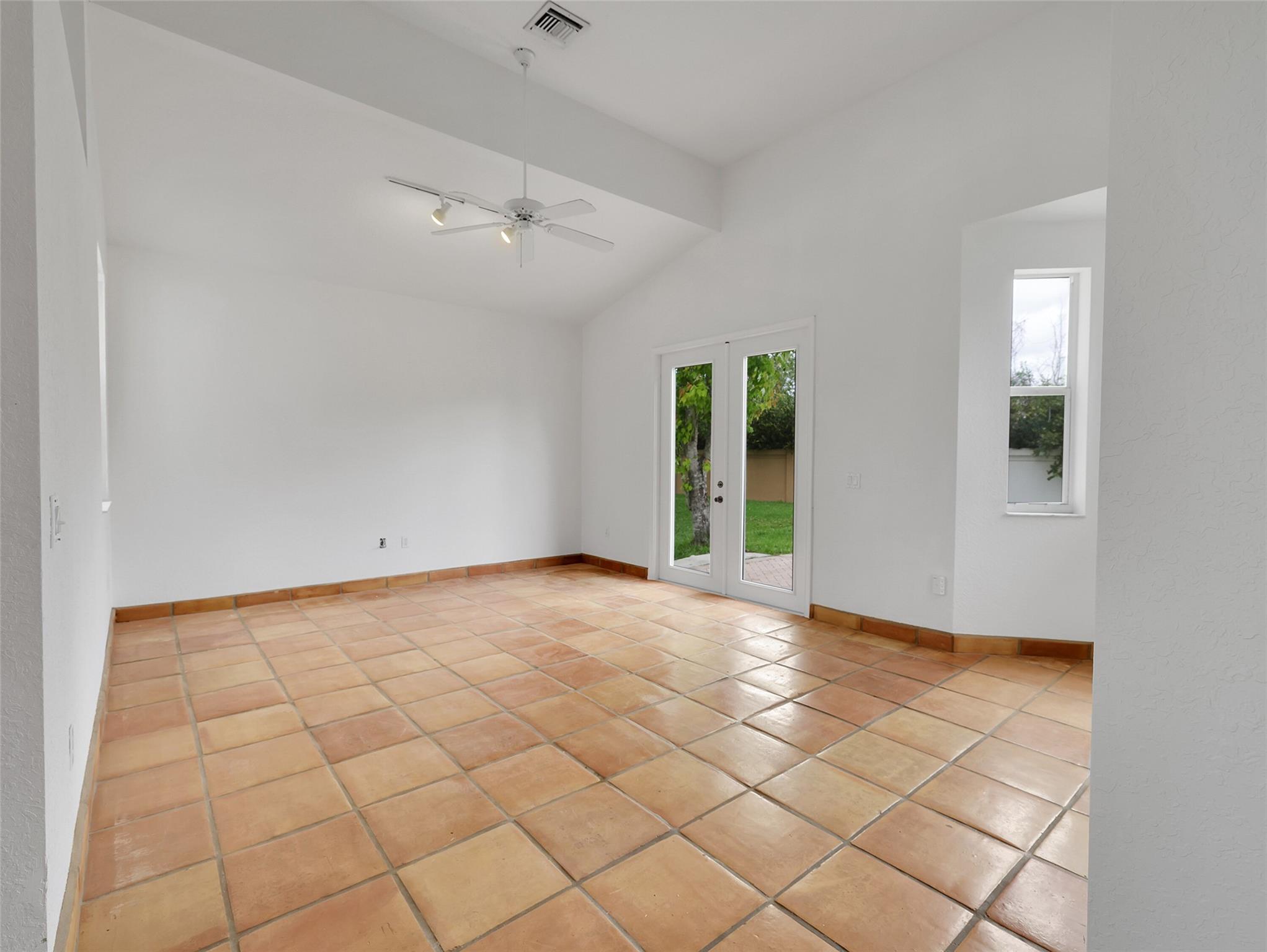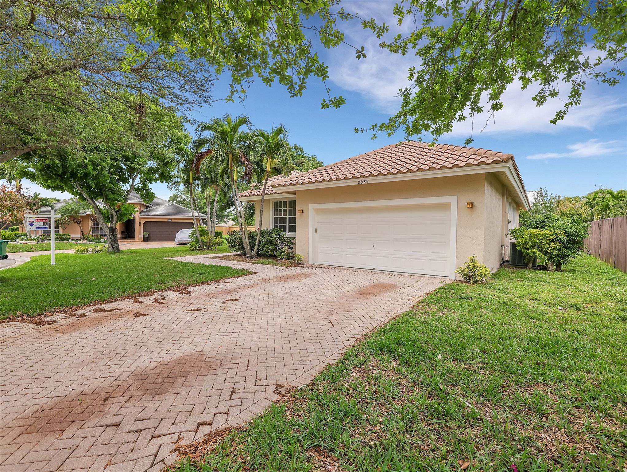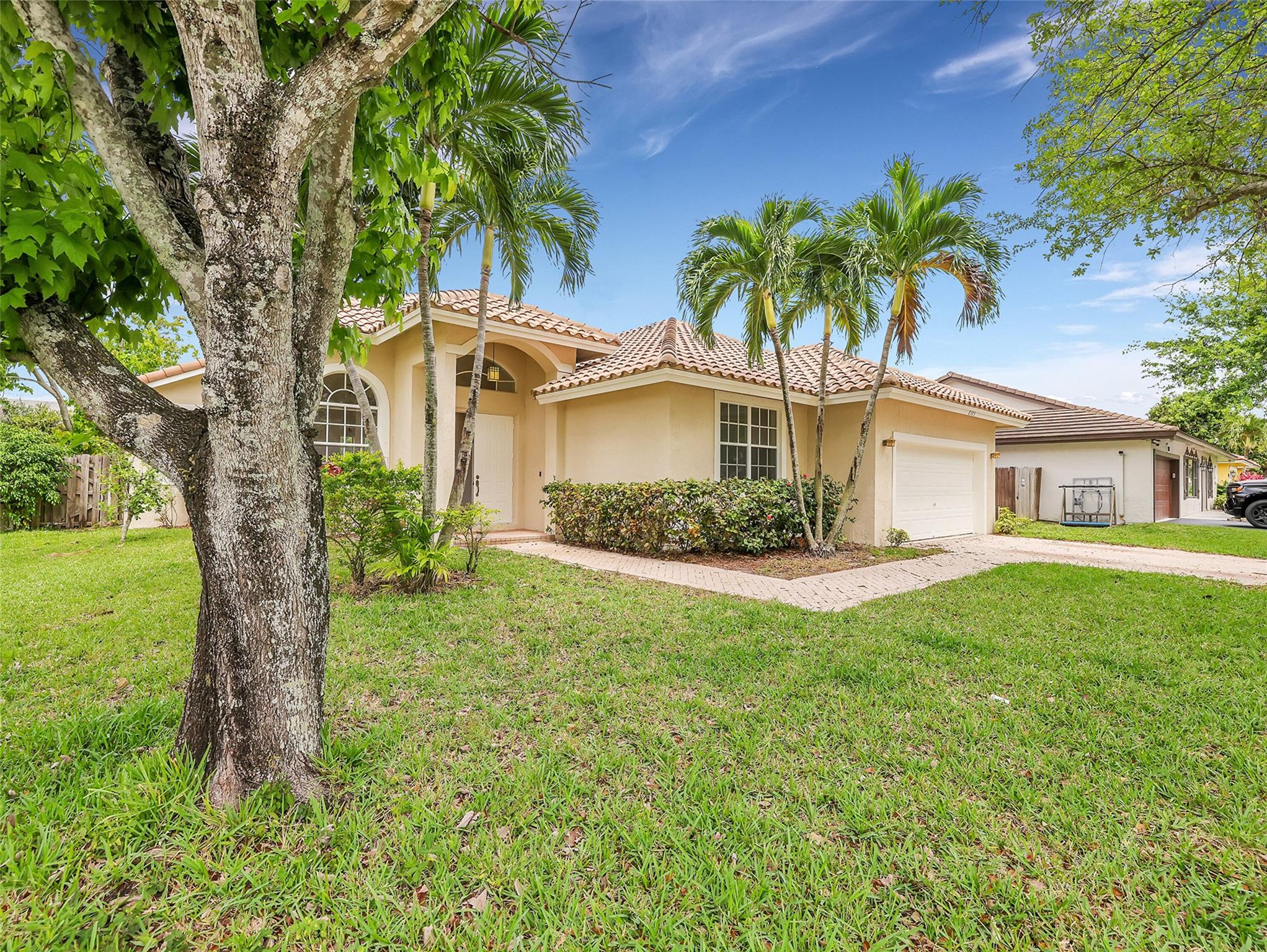 Beautiful home nestled in a lovely community in the heart of Coral Springs. Mature tree lined streets lead you home. The large kitchen with an eat in breakfast area and pantry is perfect to create your culinary masterpieces. Formal living room and a unique attractive formal dining room which can also be used for any creative purpose. Beautiful mexican tile throughout living areas. Don't miss the authentic dog paw prints. (See if you can find them!) Large master bedroom. Master bath with dual sinks, separate shower and luxurious roman tub. Freshly painted interior and exterior. New French Doors. New carpet in one bedroom. Full size washer and dryer inside the home. Two car garage. Paver driveway. Backyard patio with no residential neighbors behind for privacy. Close to dining and shopping!!