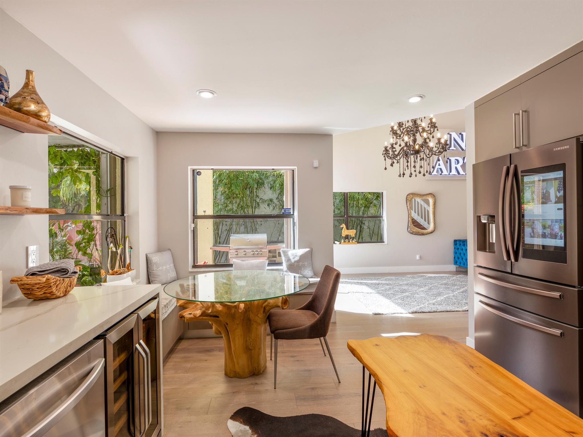 Absolutely Beautiful Single Family Home with 2 Car Garage and with a salt water pool in Central Boca Raton.Recently renovated with custom wood kitchen cabinets with top of the line Samsung appliances,custom built eat in kitchen nook with extra storage,quartz counter tops,shaw engineered wood floors throughout,european solid core custom italian interior doors,european stretch ceilings with led lighting,new AC unit,screened in summer kitchen and the list goes on.Too many upgrades to list,the full list will be attached as a pdf.This home is move in ready, backs to a private reserve with lots of room for a dog run.No pet restrictions,A+ schools and easy access to all major highways.
