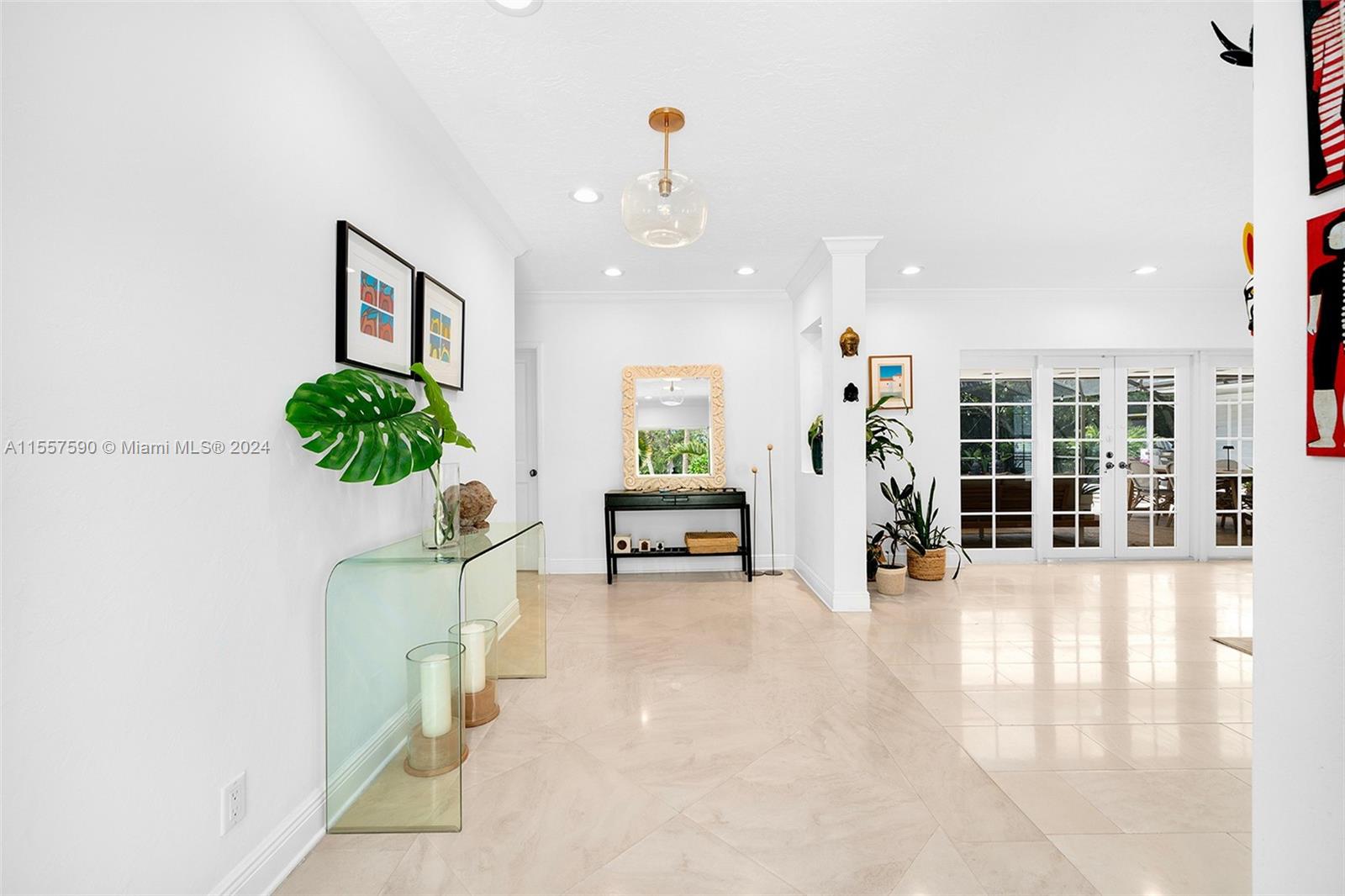 Nestled in the Hammock Oaks exclusive community, this charming residence sits on an acre lot with gated entry. It boasts 4 bedrooms with updated floors, 4 bathrooms, and a spacious den ideal for a home office or gym. A circular driveway and two-car carport add to the appeal. Featuring a 7-year-old roof, two recently installed AC units, and impact-resistant windows and doors. The kitchen is semi private but still connects to the family room and outdoor area. Formal living areas are bathed in natural light from French doors leading to the pool and patio. Outside awaits a private tennis court, surrounded by lush foliage. Additionally, community has marine docks with for purchase or rent upon availability. Perfect to live or remodel to your taste.