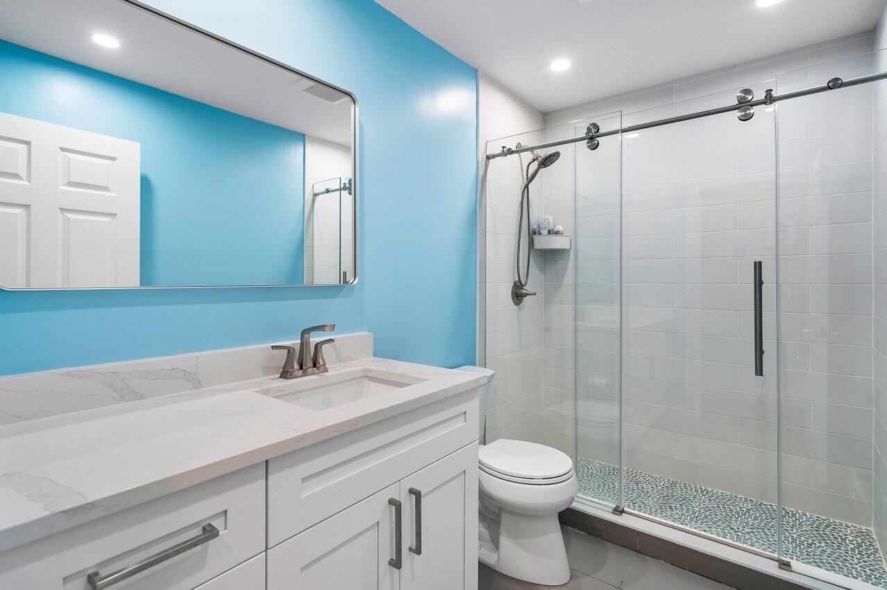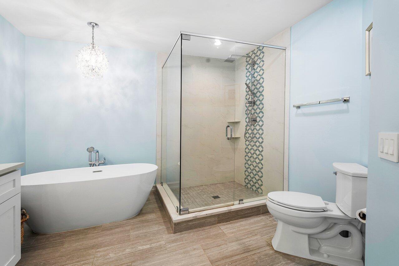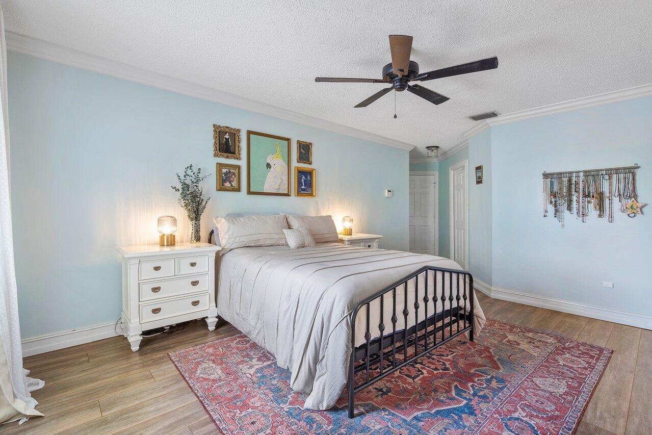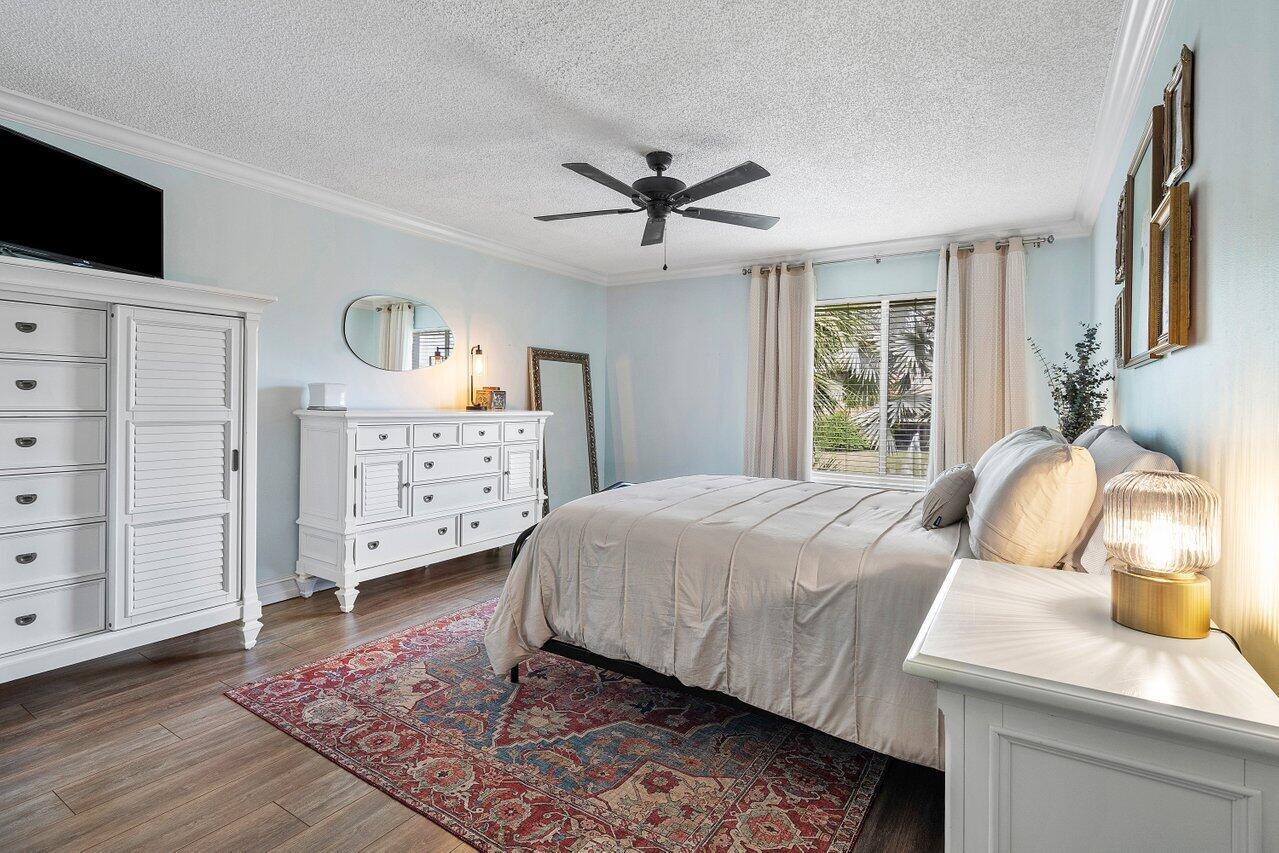 This fantastic 3 bedroom + office, lakefront, townhome has a long list of upgrades from the New Chef's kitchen with all Samsung appliances and Brazilian Walnut counters and beautiful wood floors upstairs to the Accordian shutters on all windows, gorgeously renovated bathrooms including the stunning Primary bathroom with soaking tub and separate shower. The living room has dramatic vaulted ceilings and wonderful lake views. There is a screened porch + a paver patio to enjoy the beautiful lake and wonderful eastern exposure. Boca Isles offers a newly renovated heated & chilled pool, hot tub and exercise room. Located in wonderful SE Boca with all A rated schools. HOA is installing all new roofs and painting this year. Maintenance includes Insurance, Alarm, Roofs, Cable TV & Water
