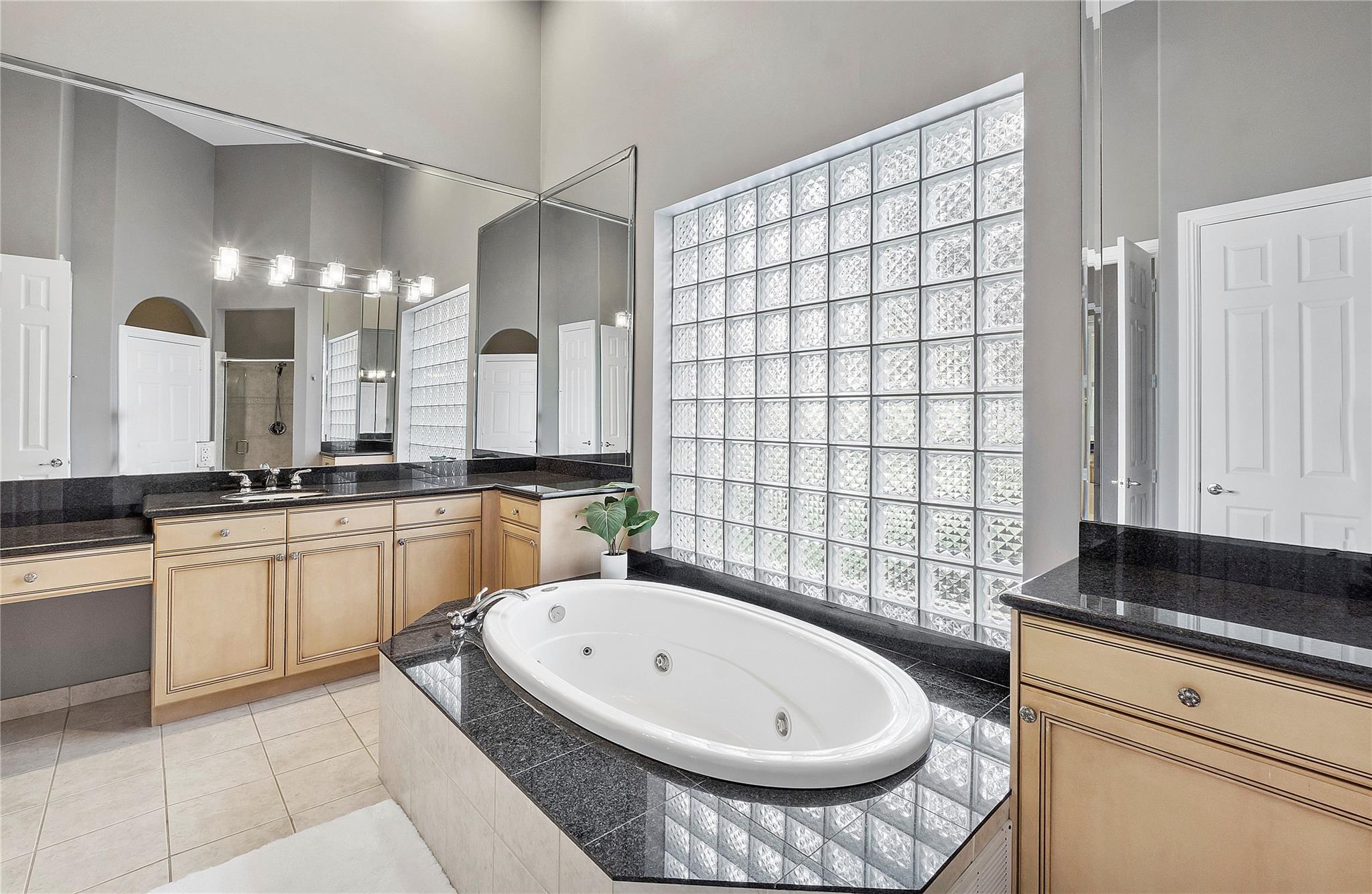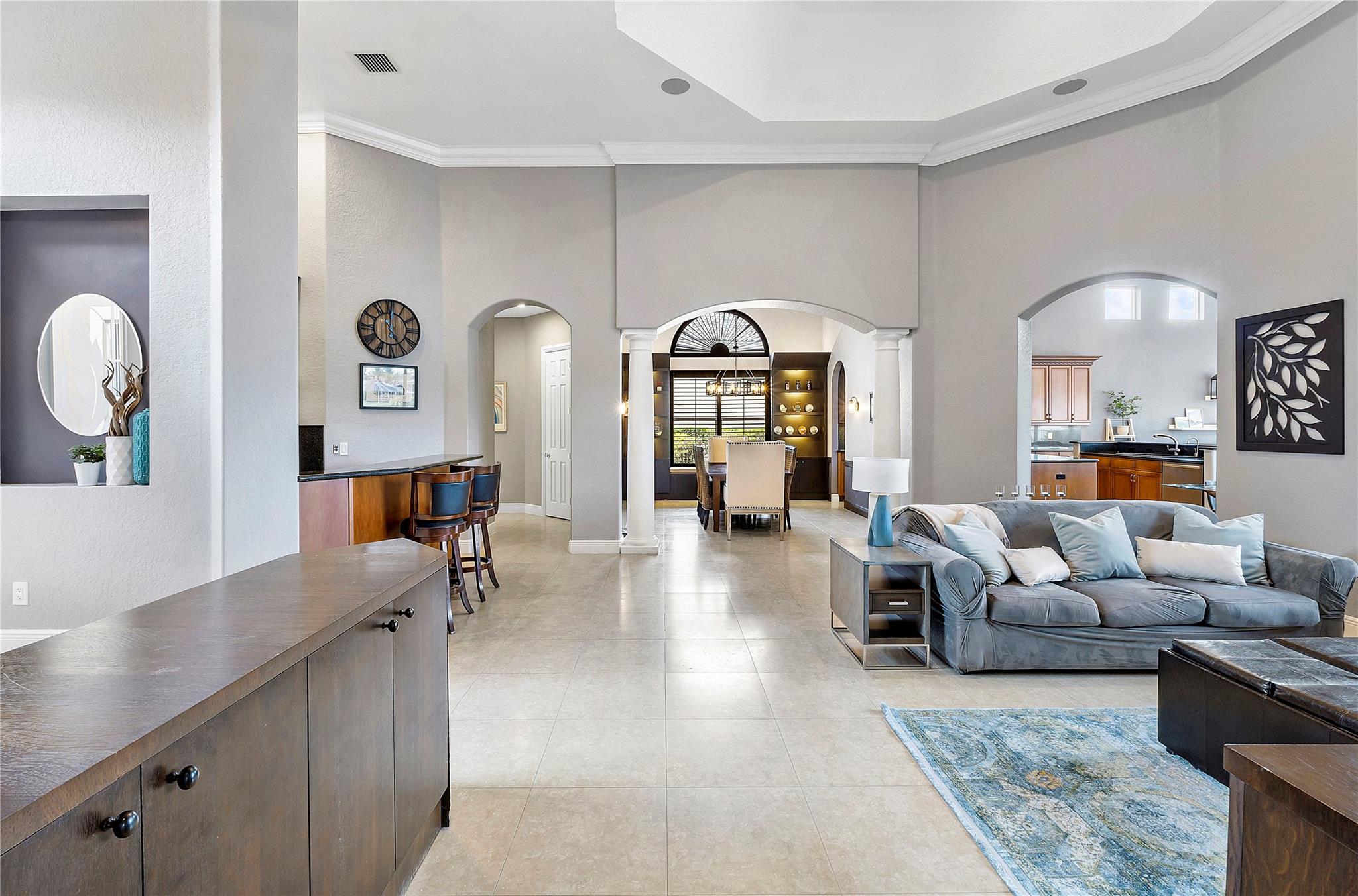 ONE STORY, 5 BEDROOM + 4.5 BATHS + 3 CAR GARAGE W/OVERSIZE DRIVEWAY. NICE YARD W/ POOL & LAKE VIEWS. NEW FIXTURES & FANS THROUGHOUT, FRESHLY PAINTED INTERIOR, KITCHEN W/ WOOD CABINETS & GRANITE COUNTER TOPS, CUSTOM ELECTRIC WINDOW TREATMENTS, 7.1 SURROUND SOUND, NEW LED LIGHTING & BUILT-N BAR AREA. SPACIOUS FAMILY ROOM. CROWN MOLDING & TRAY CEILINGS THROUGHOUT . LARGE MASTER BEDROOM W/ BRAND NEW LUXURY VINYL FLOORS & 2 WALK INS. LUSH LANDSCAPING, LEVEL 2 EV CHARGE PLUG IN GARAGE & COURTYARD ENTRY. THE FALLS OF HERON BAY HAS A DOUBLE GATED ENTRY - ENJOY ALL OF THE AMENITIES OF HERON BAY INCLUDING CLUBHOUSES, GYMS, TENNIS, RESORT STYLE POOLS, VOLLEYBALL, KIDS SPLASH AREA & MORE!
