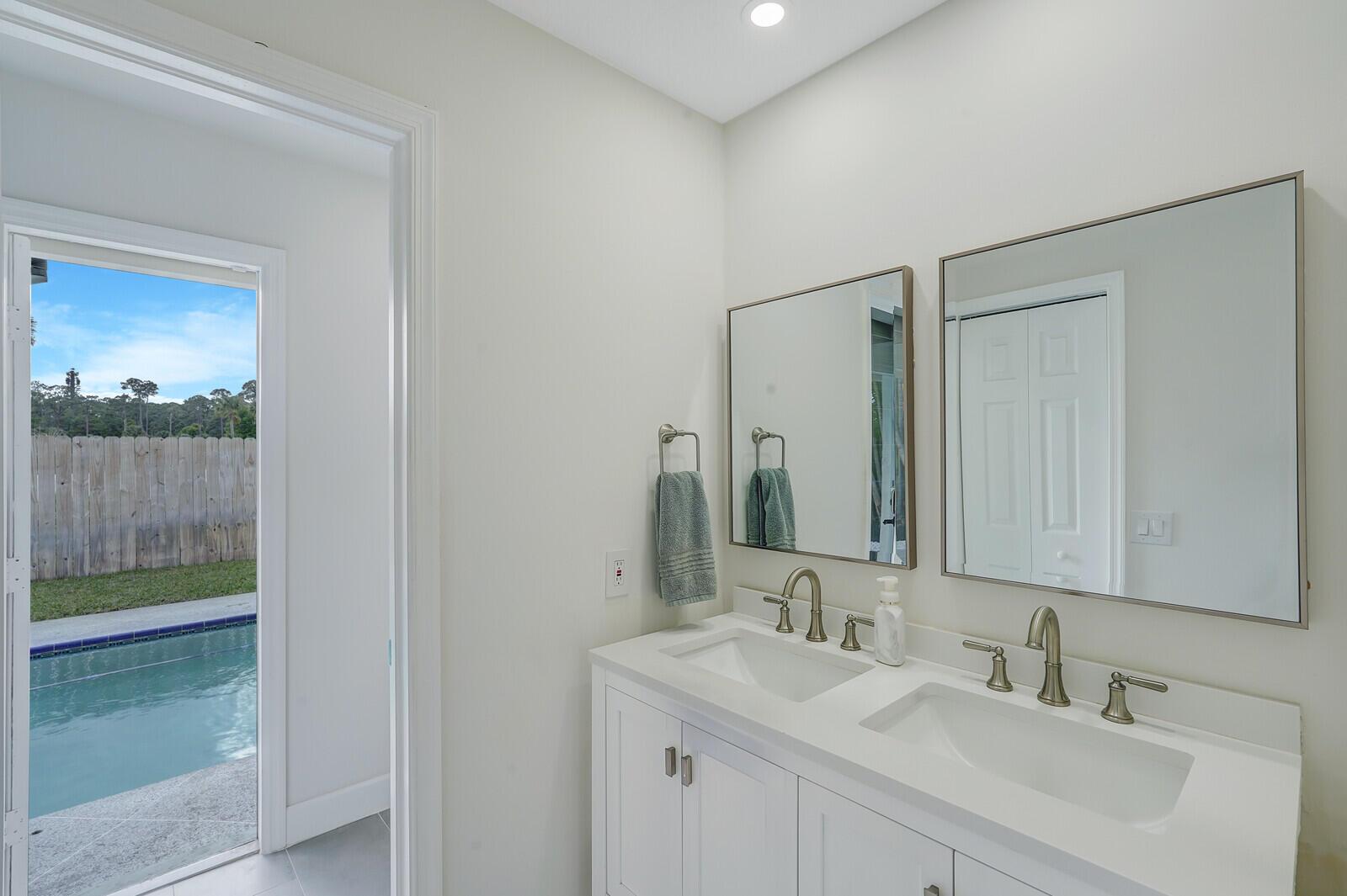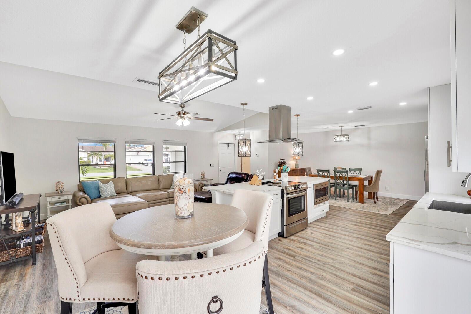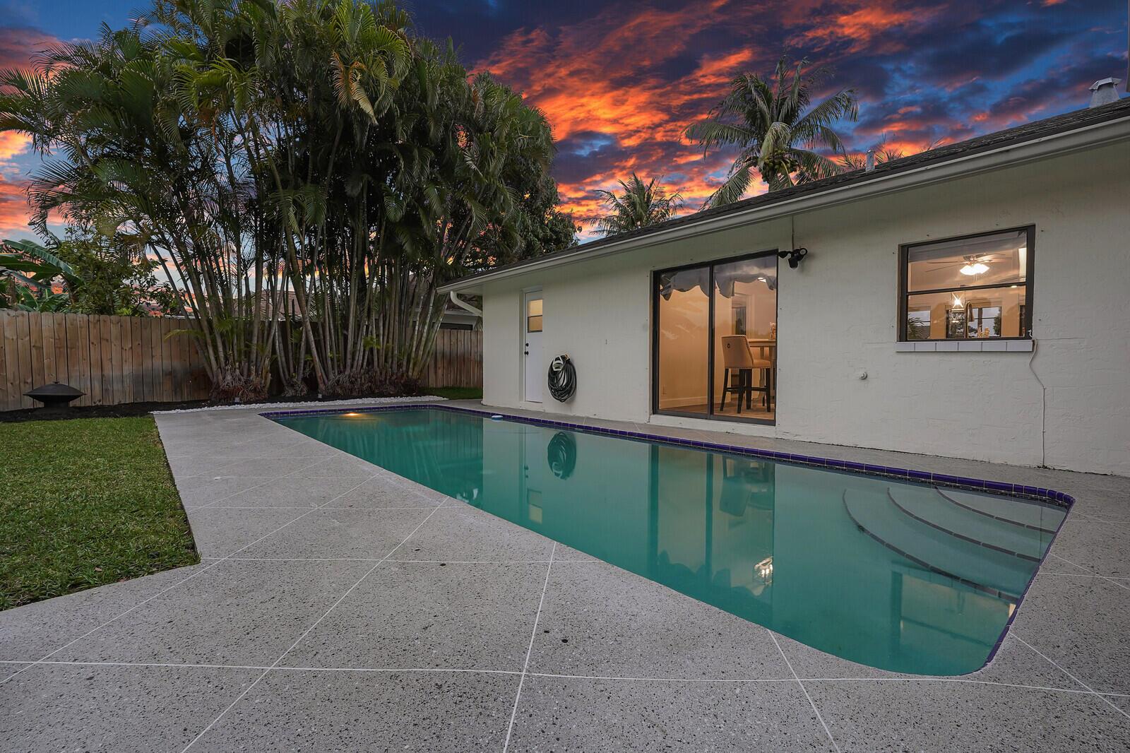 This property is ideally situated for beaches and work commutes. A quiet community of 113 homes, featuring CBS constructed homes perfect for families with plenty of space inside and out. Every corner of this home updated with high-end modern finishes to an open floor plan with Massive Gourmet kitchen, quartz counter top, Frigidaire stainless steel appliances. Light and bright with upgraded lighting, luxury vinyl plank flooring throughout. This home has 3 bedrooms designed as a split floor plan offering privacy to the primary. Primary has a cabana bath door out to the pool, walk in shower with dual vanities and walk in closet. 2 car garage with ample storage space, large driveway for lots of parking. Fresh landscaped fenced back yard and pool deck with screened patio opening up to a