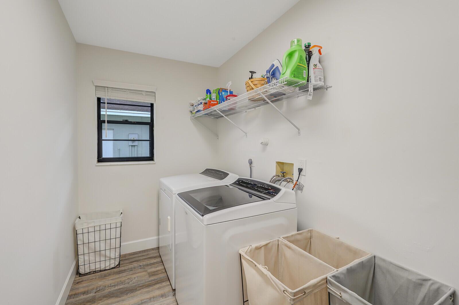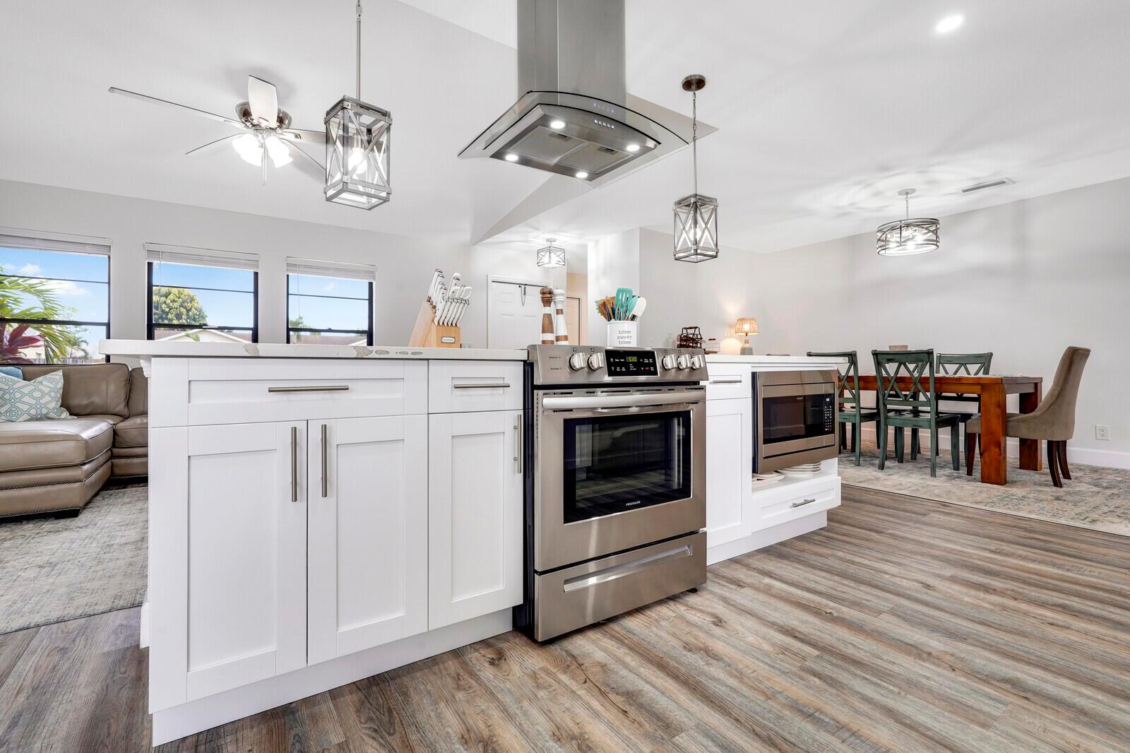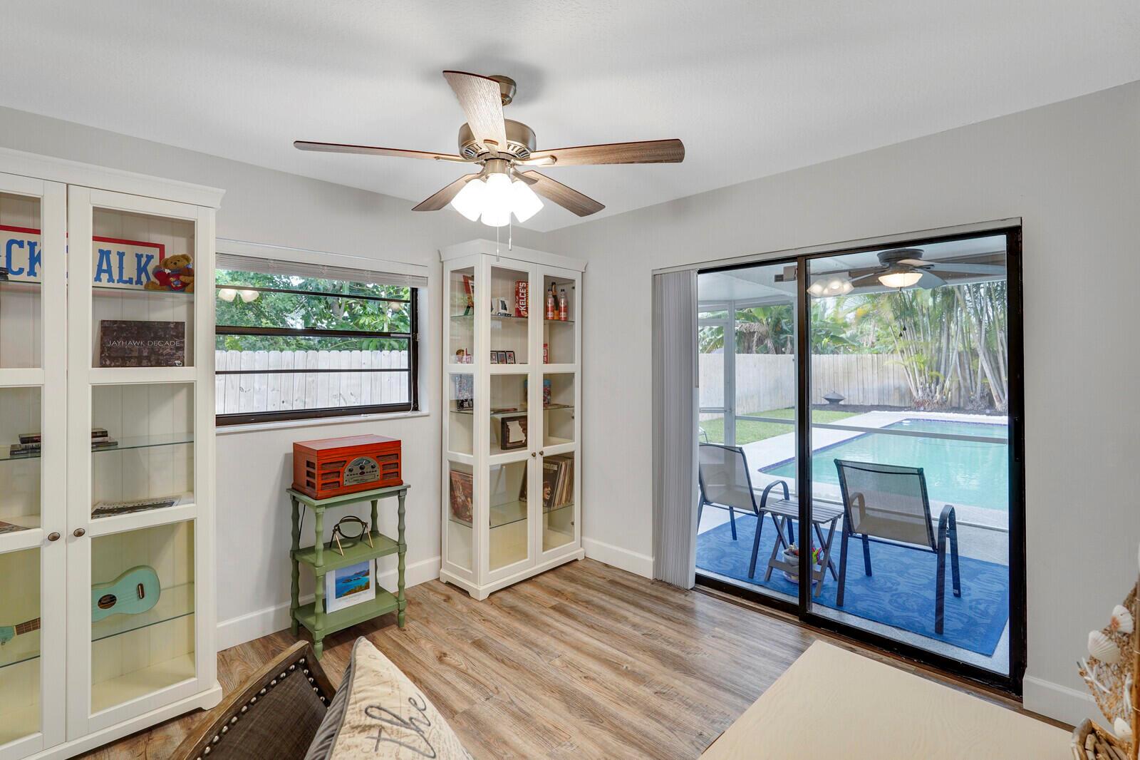 This property is ideally situated for beaches and work commutes. A quiet community of 113 homes, featuring CBS constructed homes perfect for families with plenty of space inside and out. Every corner of this home updated with high-end modern finishes to an open floor plan with Massive Gourmet kitchen, quartz counter top, Frigidaire stainless steel appliances. Light and bright with upgraded lighting, luxury vinyl plank flooring throughout. This home has 3 bedrooms designed as a split floor plan offering privacy to the primary. Primary has a cabana bath door out to the pool, walk in shower with dual vanities and walk in closet. 2 car garage with ample storage space, large driveway for lots of parking. Fresh landscaped fenced back yard and pool deck with screened patio opening up to a