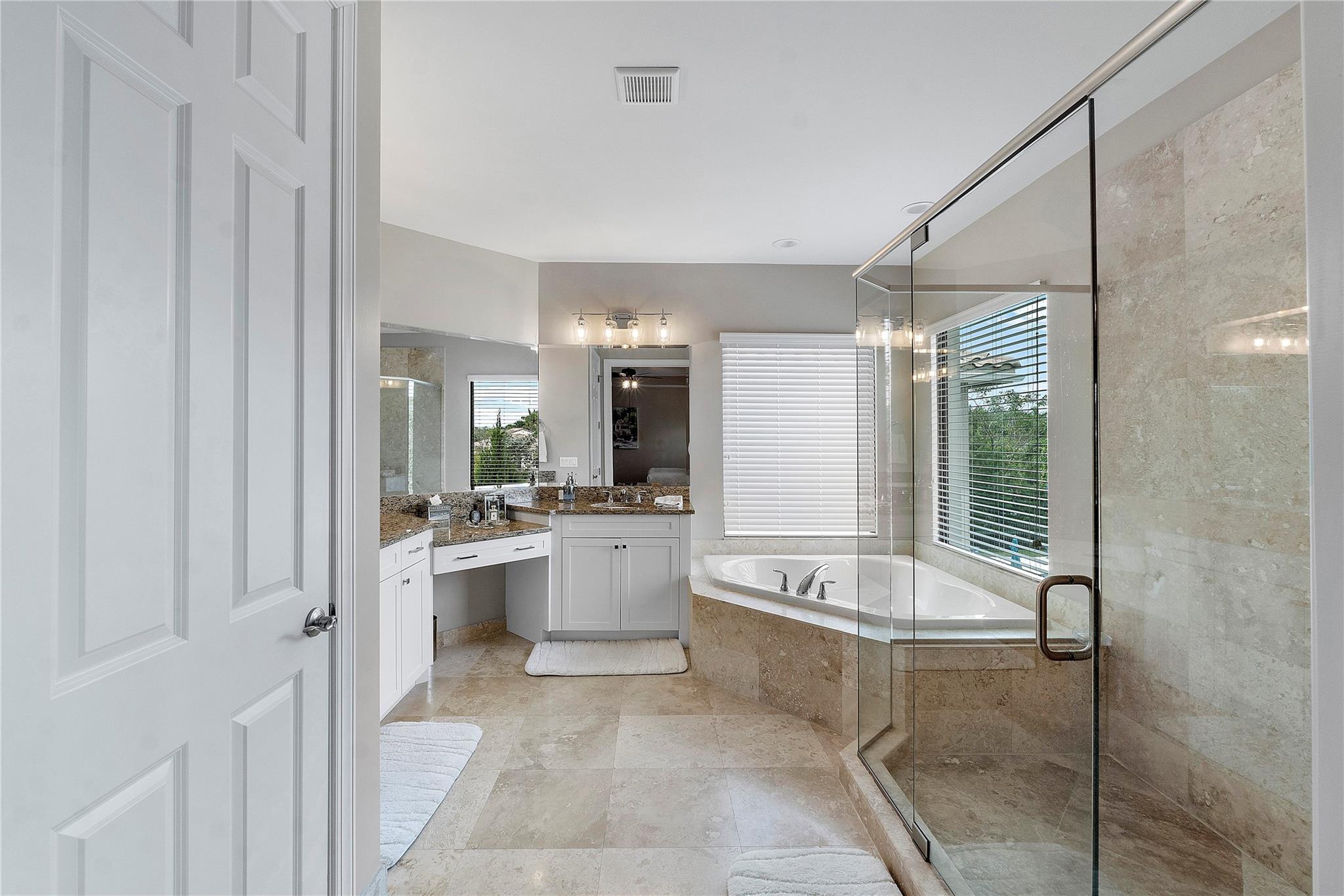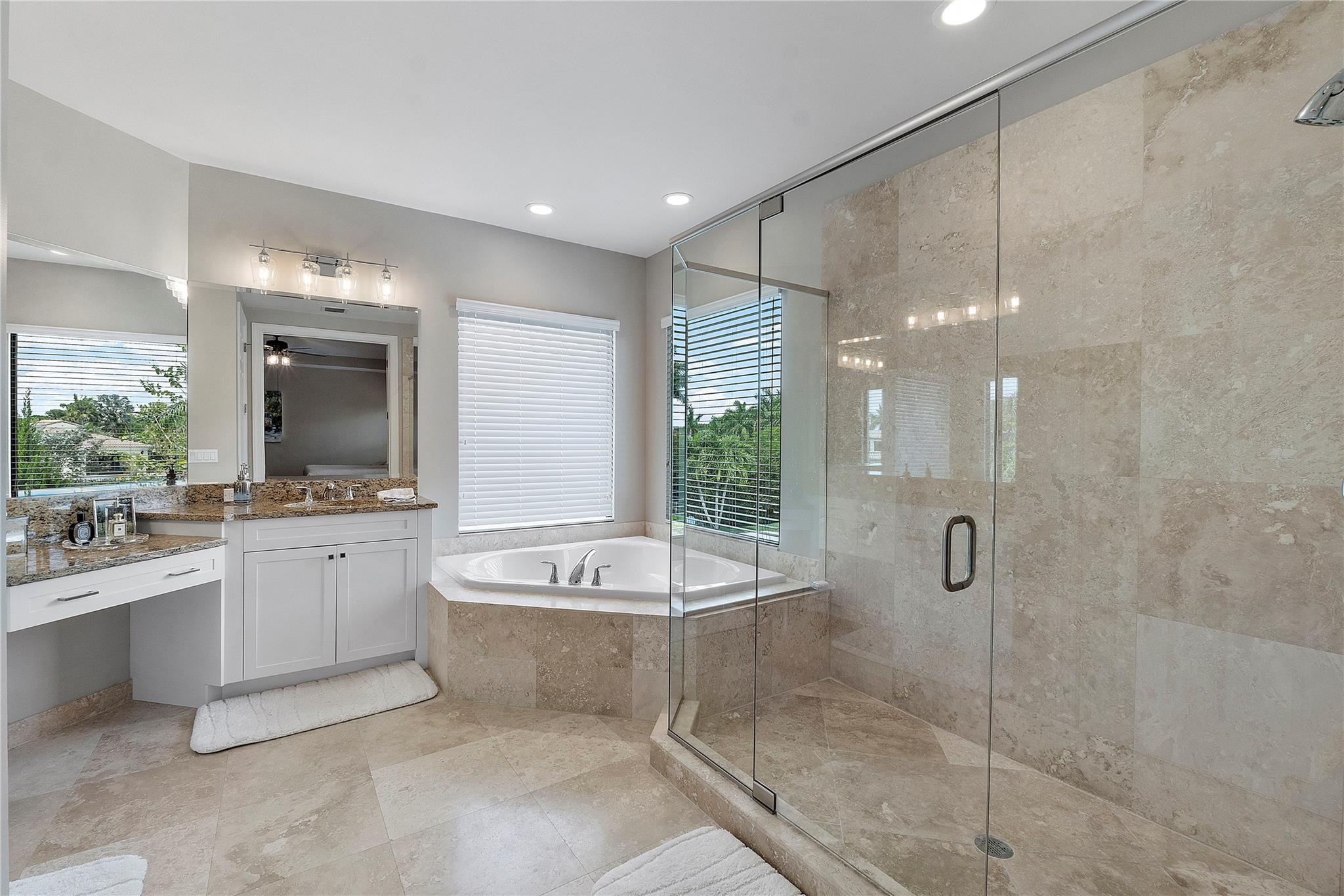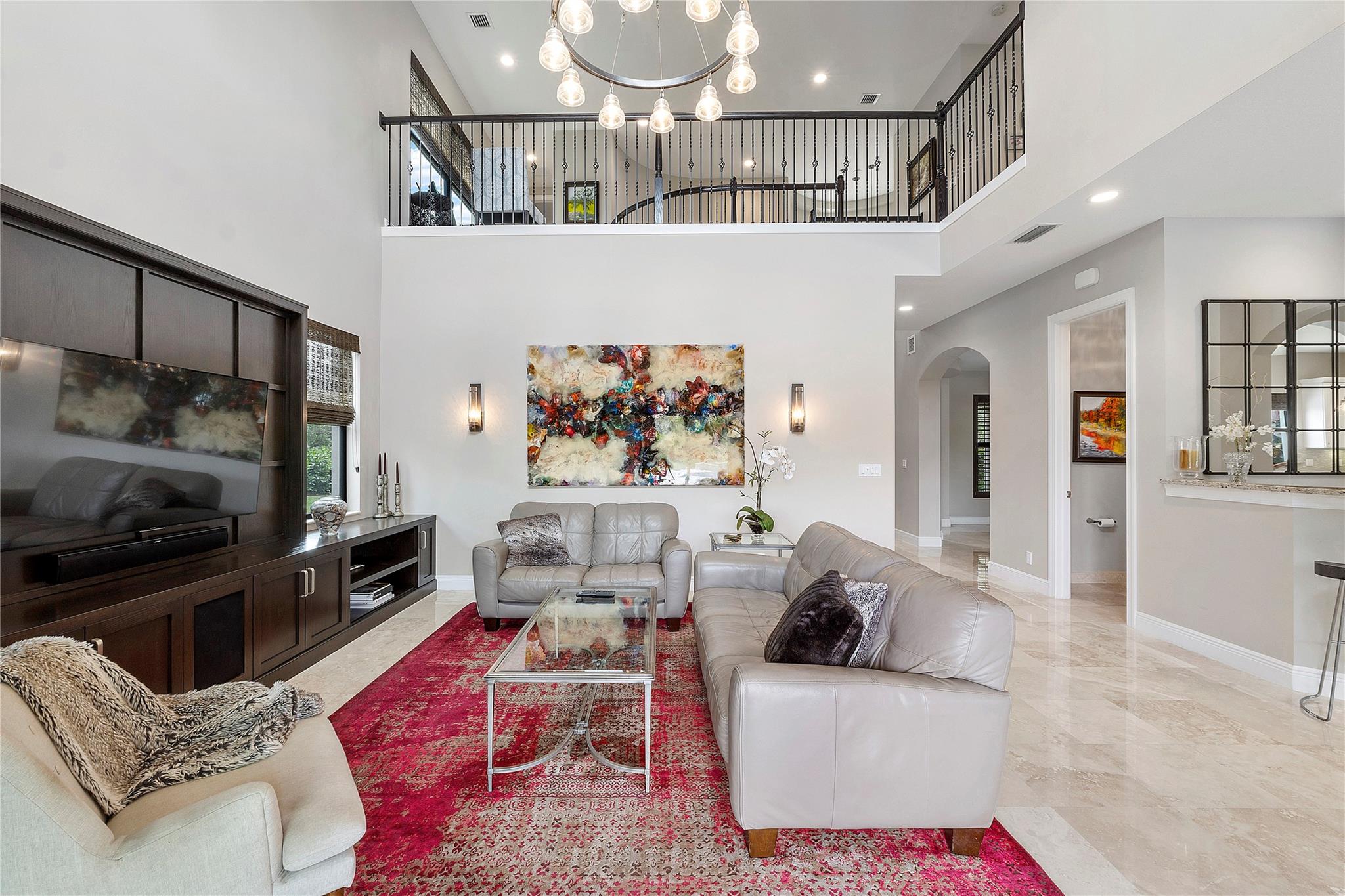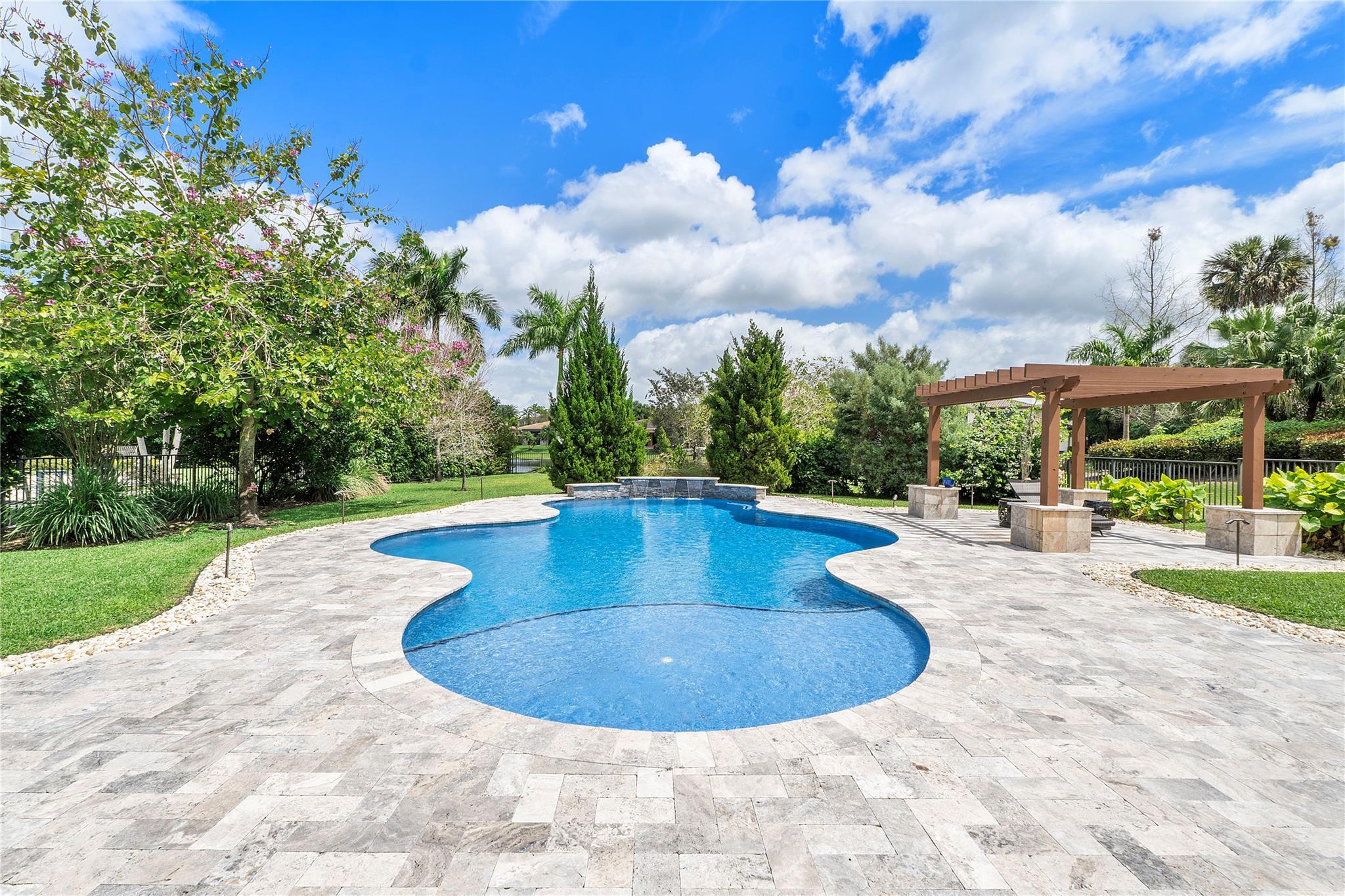 Move in Condition!!! Luxurious 5-bed, 4.5-bath home boasts marble floors downstairs, impact glass throughout. Enjoy a spacious backyard oasis with a saltwater pool and pergola. Chef's kitchen features a large center island, gas stove, and Jenn Air appliances, complemented by a separate bar area. 1st-floor bedroom suite offers convenience, while the 2nd-floor primary bedroom boasts a huge walk-in closet, separate tub/shower, makeup vanity, and double sinks.