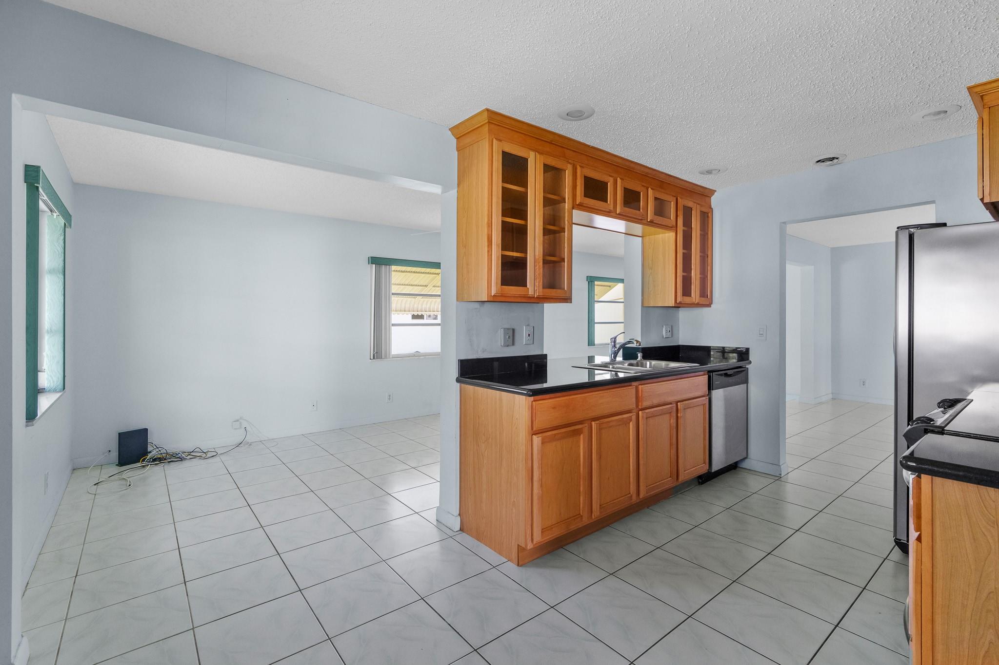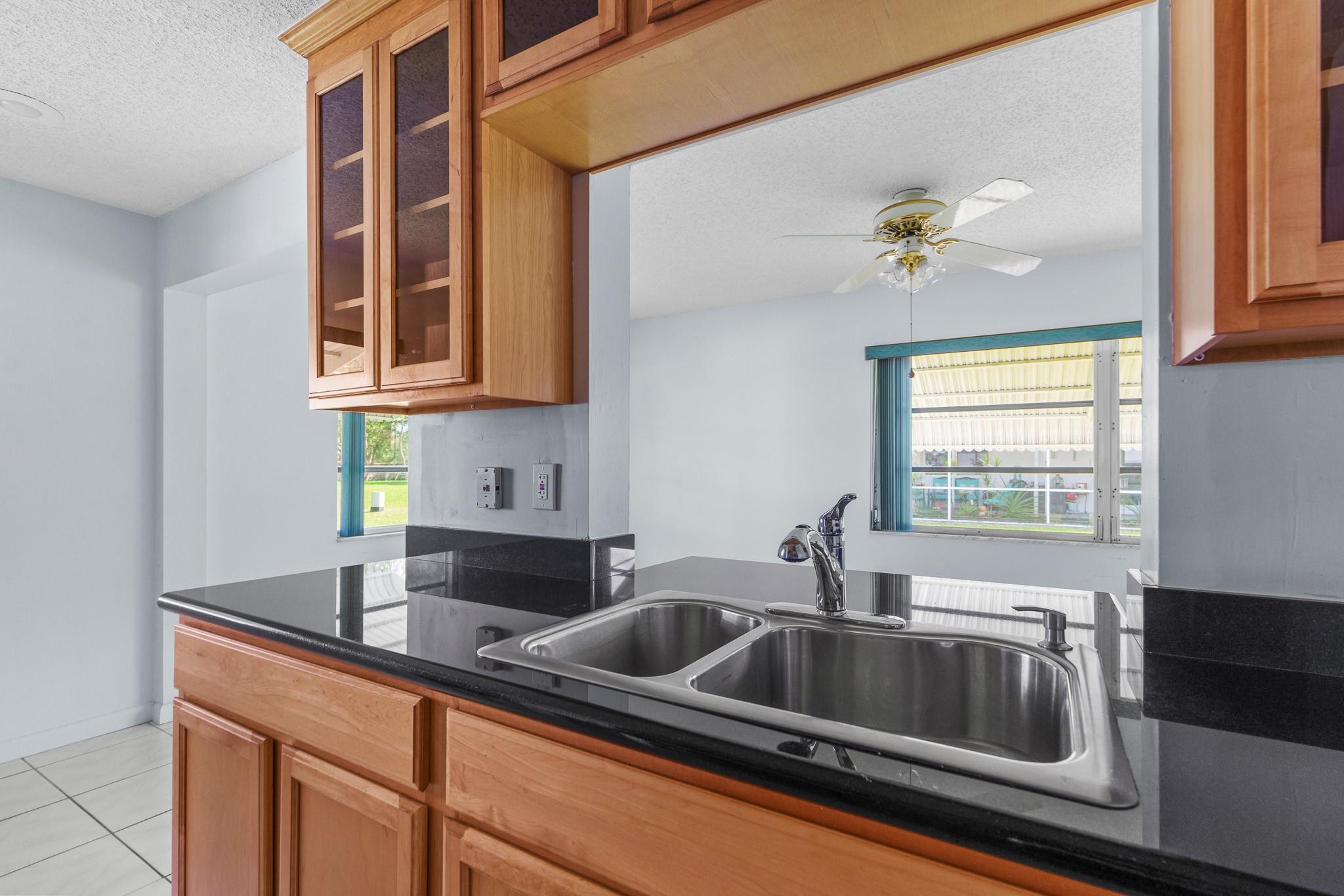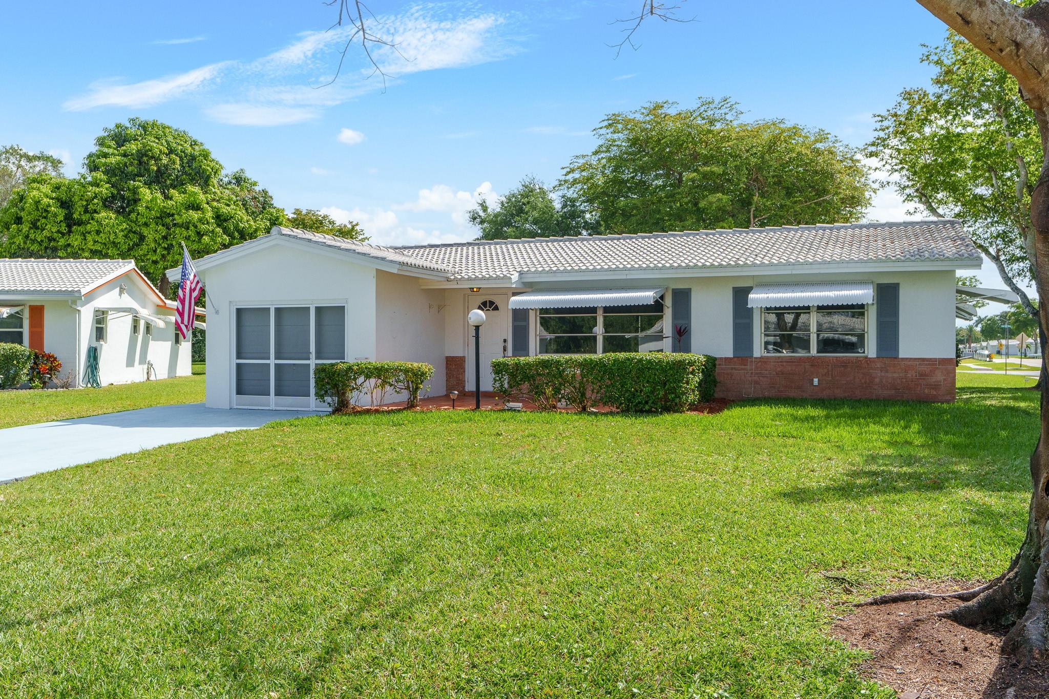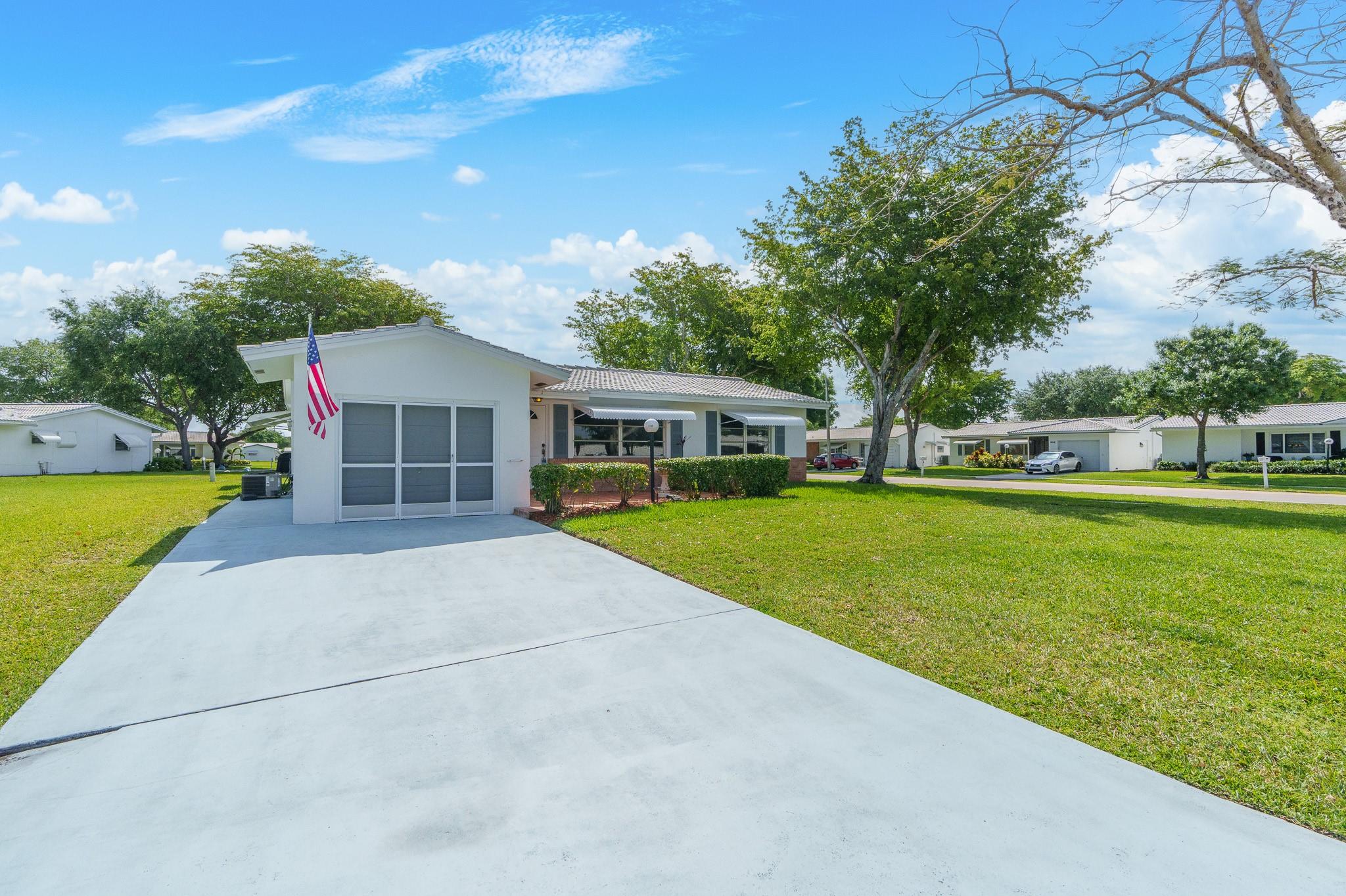 Lauderdale West, 55+ Community. Admiral model, 2/2 w/garage & double wide long driveway. Huge front lawn, quite cul-de-sac, new AC (2022), newer tile roof (2017), remodeled kitchen. Tiled front porch, full size W/D and more. Low maintenance includes repair/replace roof, Fiber optic HDTV & Internet, courtesy bus at your doorstep to shopping, banks etc., lawn service, exterior painting, active clubhouse, 2 pools, tennis courts, pool tables, ping pong, card rooms, professional shows, community parties, free standing fitness center and much more. Minimum 20% down required.