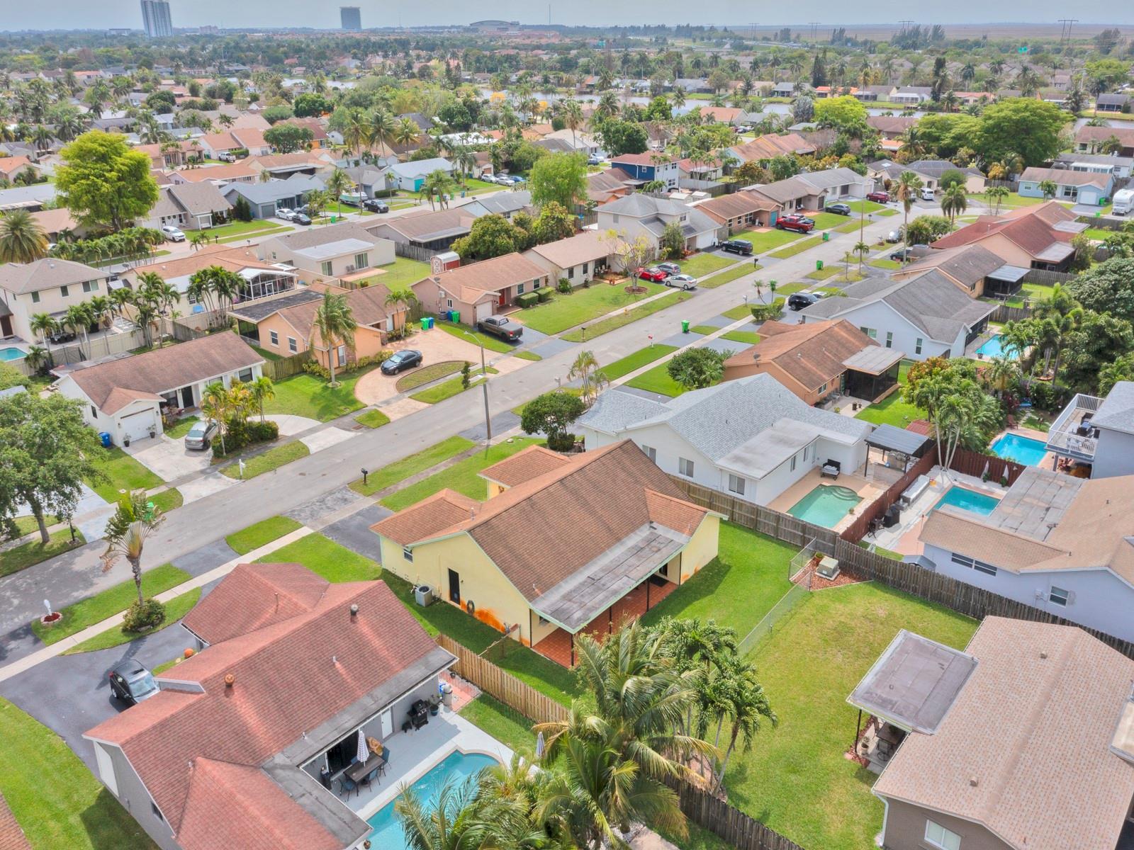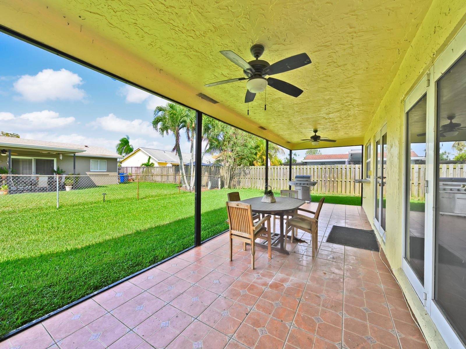 This Beautiful 3 Bedroom 2 Bath home features 18 x 27 tile flooring throughout, vaulted ceilings, upgraded kitchen and bathrooms, Enjoy open family room kitchen area, laundry room, French doors open to an extended covered terrace access to cabana bath, hurricane-impact and a fully fenced yard with plenty of room for a pool, well sprinkles, 3 Miles to Sawgrass Mall, Entertainment, Amerant Stadium, Restaurants and EZ access to major expressways. Best of all no HOA!