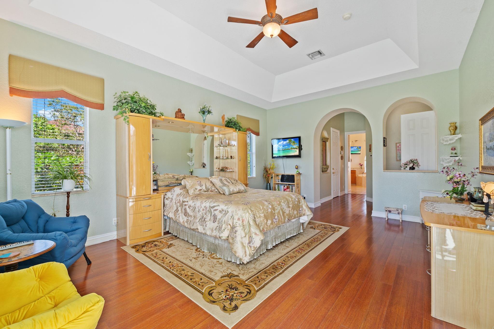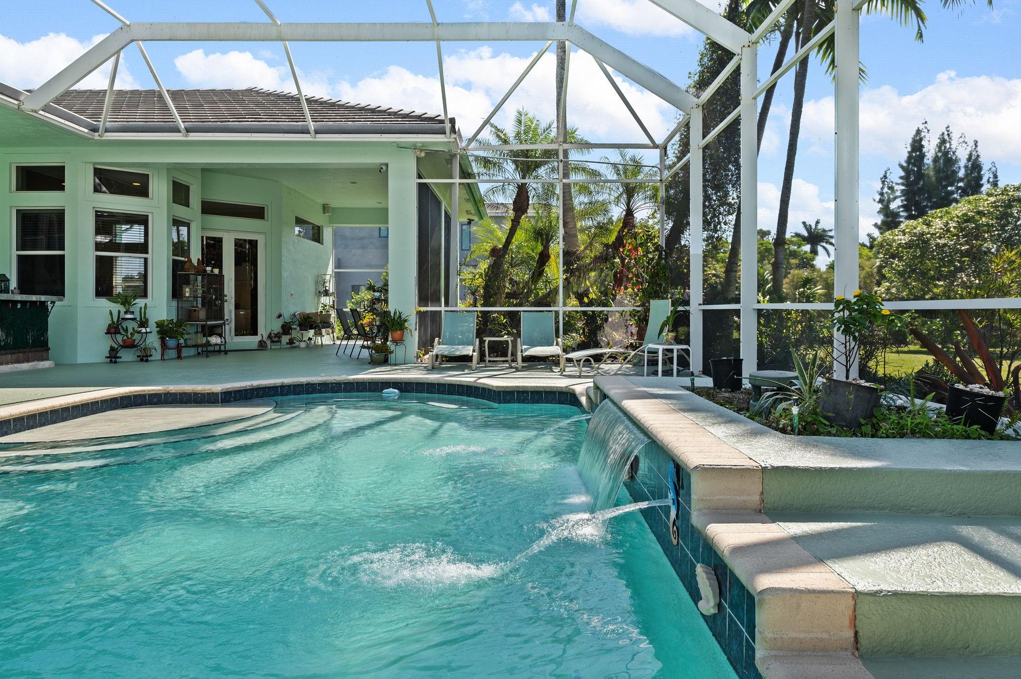 Discover serenity in this Mediterranean masterpiece! Nestled on over an acre, embrace the tranquility of a pond, lush fruit trees, and fresh exterior paint. Boasting 5 beds, 4.1 baths, a 3-car garage, and a screened pool, this haven offers luxury and comfort. The 5th bed transformed into a den, enjoy a breakfast nook with pool vistas. Revel in modern amenities like a gas stove, water heater, and a converted recording studio in the 3rd garage. Meticulously cared for, this home invites you to create memories anew.