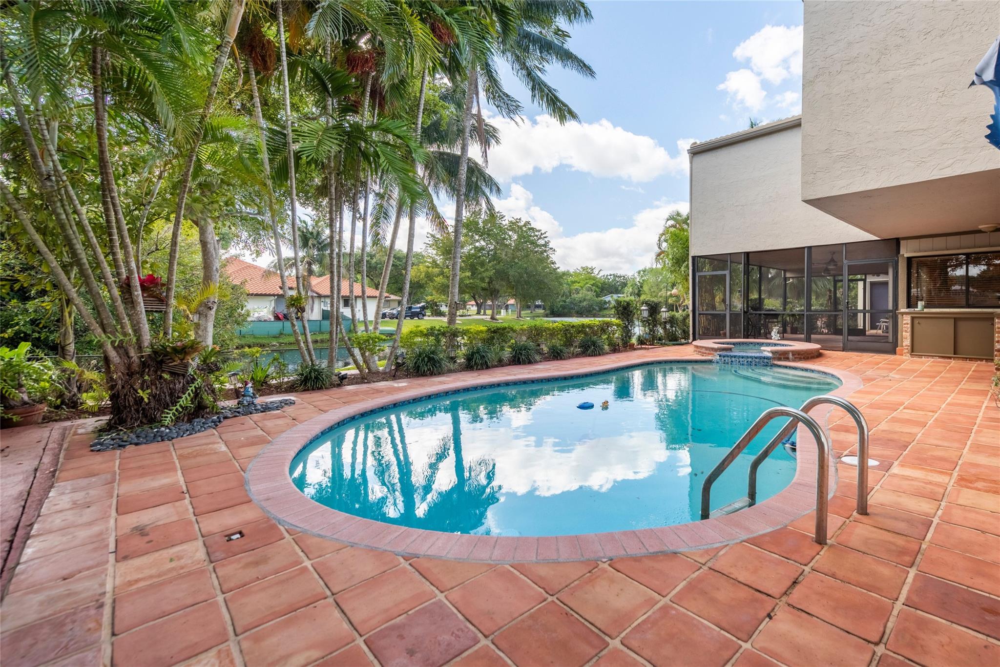 WARM, COTTAGE STYLE HOME ON LUSH TROPICAL SETTING WITH SPECTACTULAR GOLF AND LAKE VISTAS. REMODELED KITCHEN WITH MAPLE CABINETS, GRANITE COUNTERS AND BUILT-IN APPLIANCES. SPLIT BEDROOMS WITH BEAUTIFUL MASTER AREA FEATURING MATCHING CALIFORNIA CLOSETS AND MARBLE BATH WITH ROMAN TUB. LARGE SECONDARY BEDROOMS WITH TWO BATHS. TRANQUIL SCREENED FLORIDA ROOM OVERLOOKS POOL AND WATER VISTAS. GORGEOUS OUTDOOR PATIO/POOL WITH BUILT-IN SPA. NEWER A/C UNIT, STORM PROTECTION,PRIME HEAD OF CUL-DE-SAC LOCATION.