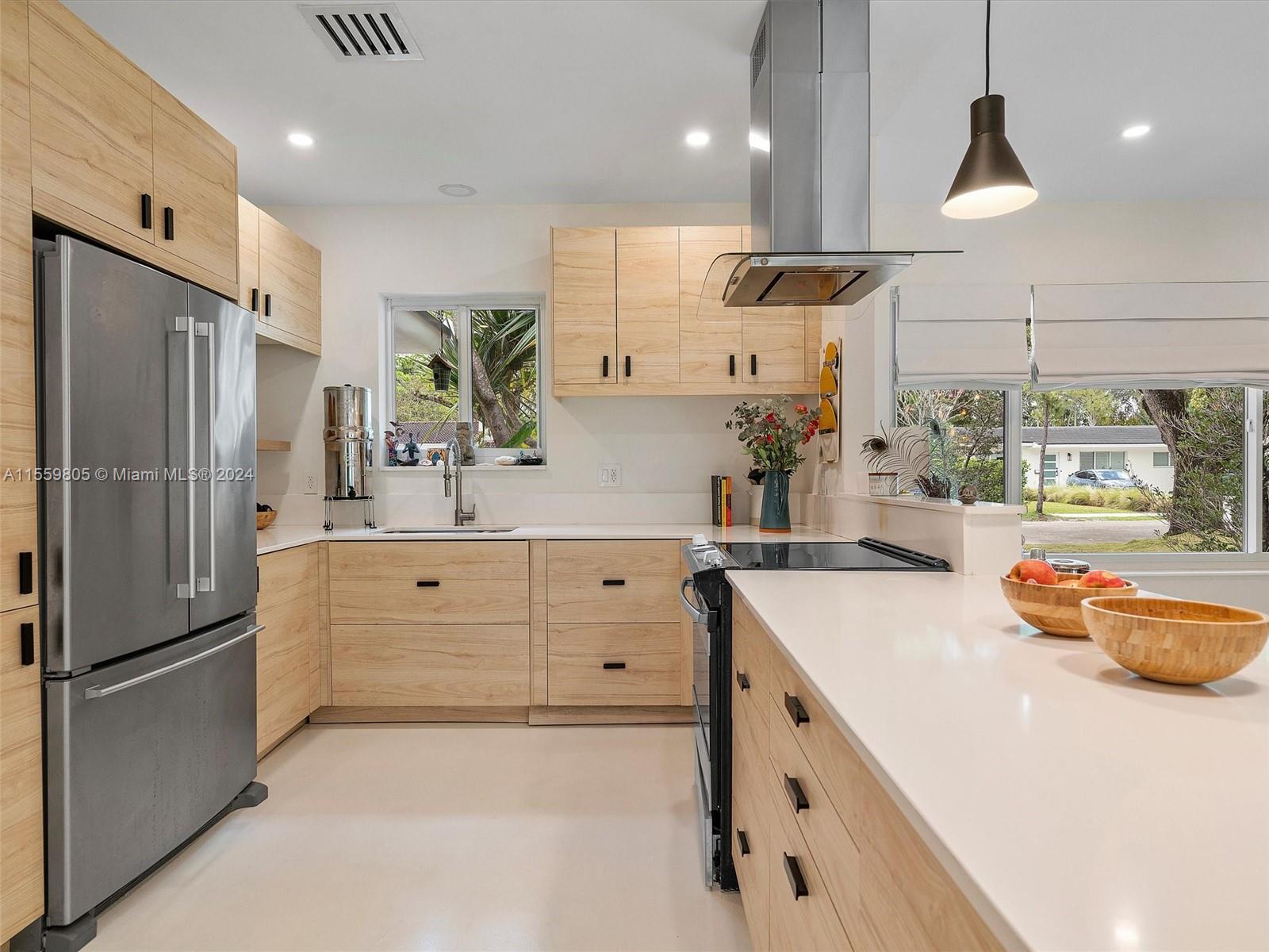 Welcome to your dream home located in East Miami Shores, a highly sought-after Miami neighborhood which features 3 bedrooms plus a den/office, 3 full bathrooms, high ceilings and 2,128 SF of interior space. In addition to the open layout with stunning views of the pool and lush backyard, the living space also has an updated open kitchen with quartz countertops and a large island perfect for entertaining. One of the property’s highlights is a spacious master bedroom with a walk-in closet and a master bathroom with a double sink vanity and a large glass shower/ roman tub combination. This home sits on a 10,938 SF lot at the end of a quiet street and includes an attached single-car garage. New roof, high impact windows & doors, A/C was replaced 2 years ago.