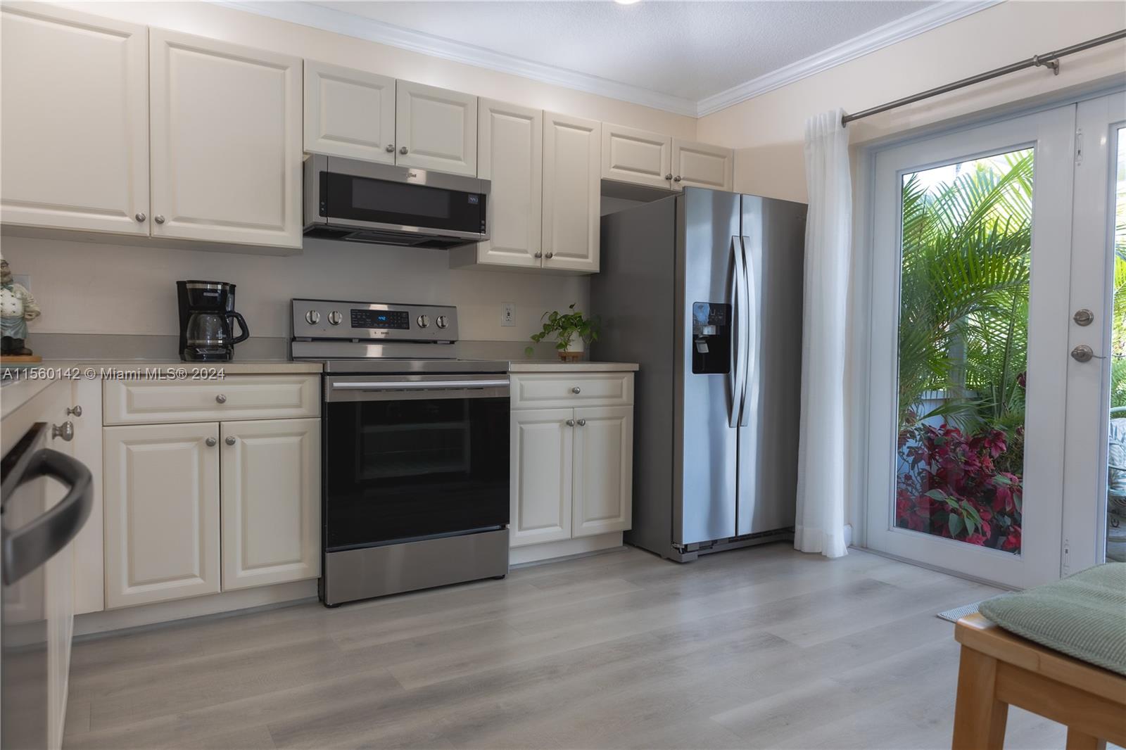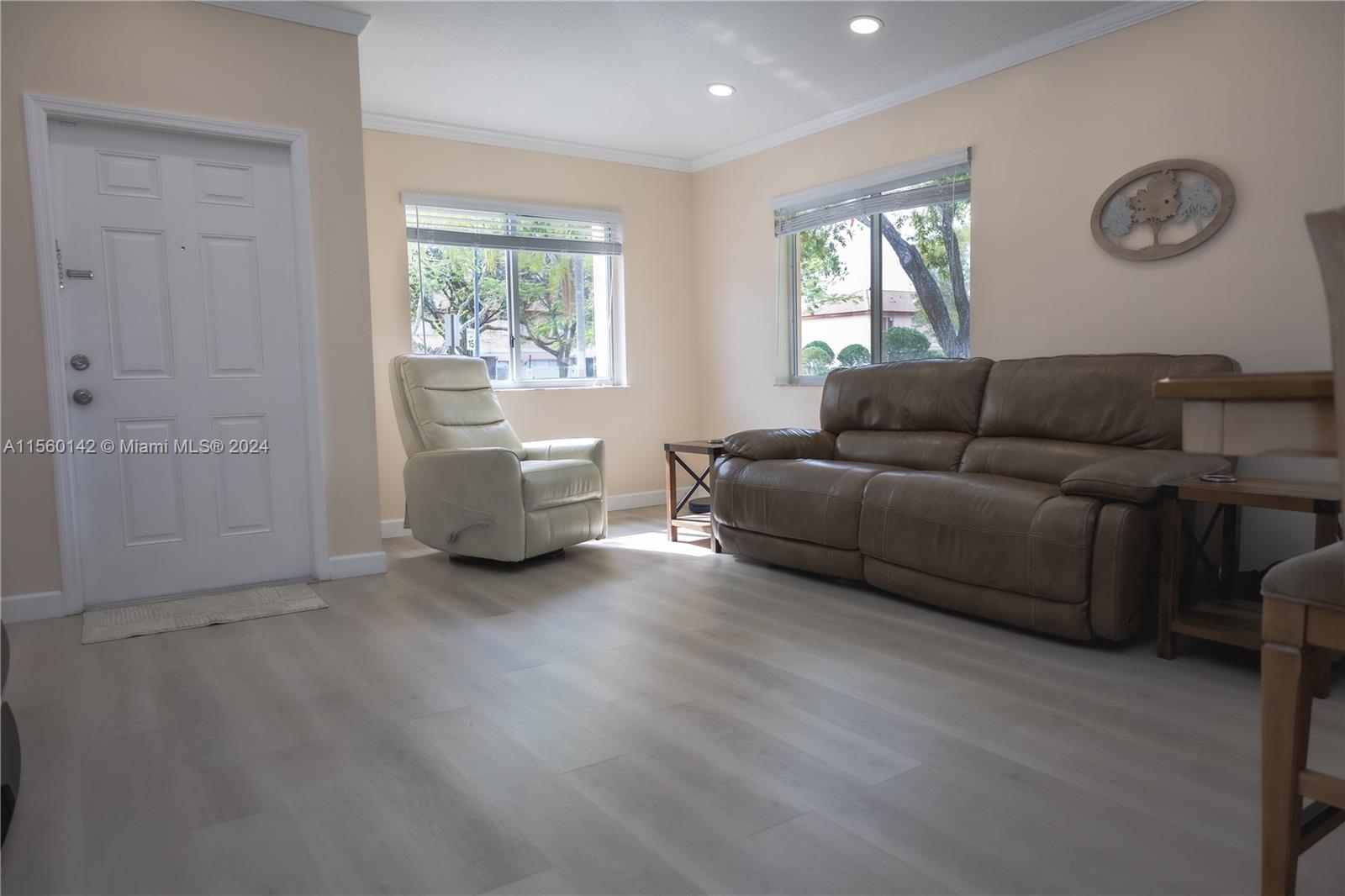 Stunning 1-story corner unit with breathtaking lake views! This 3 beds/2 baths remodeled home features laminate wood flooring, remodeled bathrooms, and elegant crown molding throughout. Enjoy the convenience of new blinds, textured knockdown ceilings with recessed lights, and a spacious open kitchen. Cable and internet are included with the HOA, and you'll have 2 assigned parking spaces right in front of your house. The gated community offers 24-hour patrol, a pool, spa, tennis court, gym, and playroom. Plus, you'll be just steps away from top-rated A+ schools. Don't miss out on this incredible opportunity!