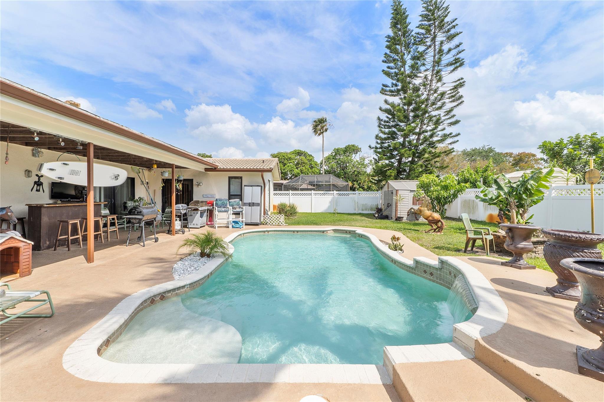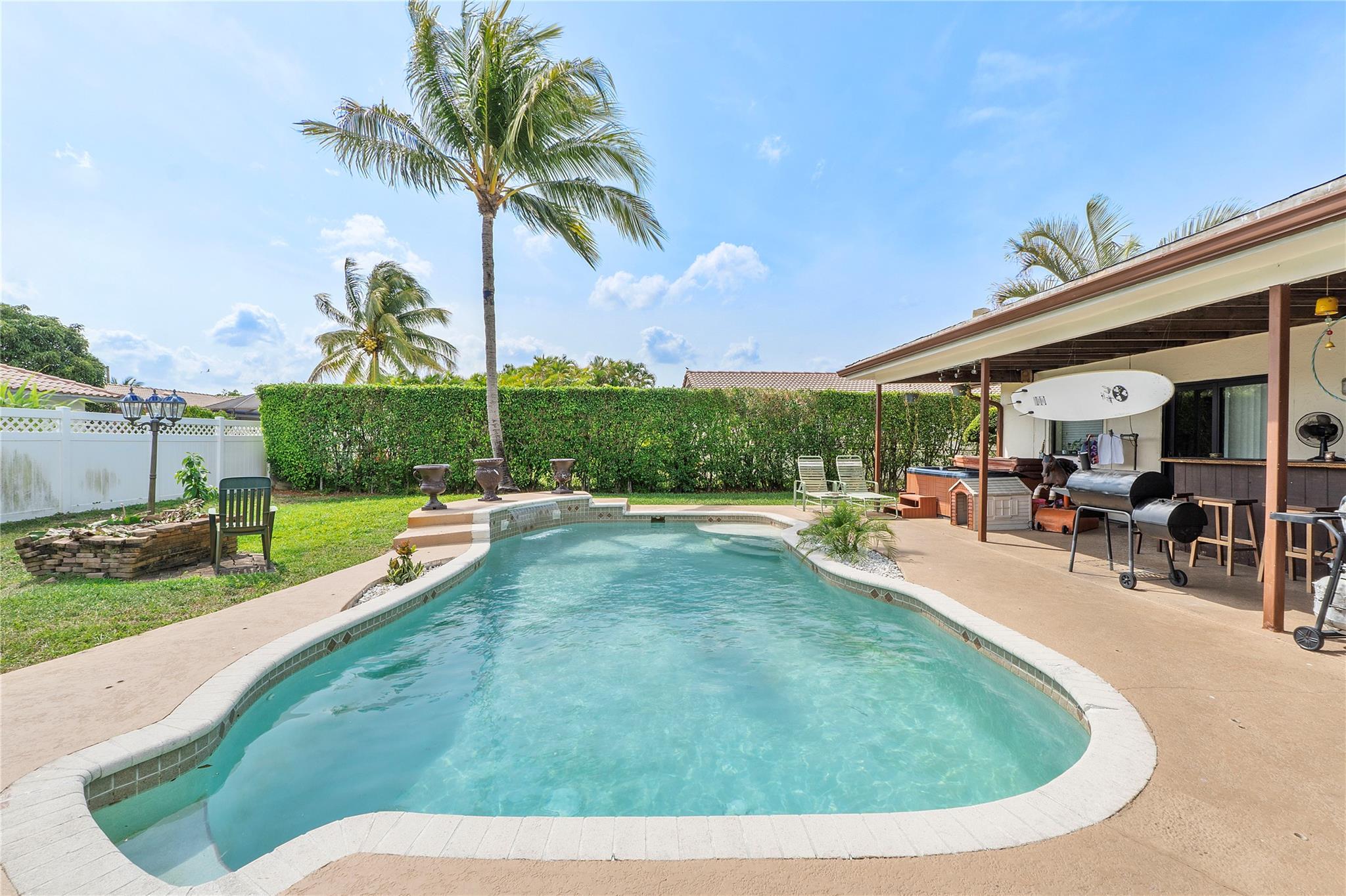 Great 3 bedroom 2 bathroom pool home in Ramblewood. The home features impact windows and doors. The large fully fenced backyard overlooks the beautiful pool area and has mango, avocado, banana, and lemon trees. Perfect for entertaining. The home features over 2400 living sq ft. Great for large families. Awesome location in the heart of Coral Springs. Close to shopping, restaurants and more.
