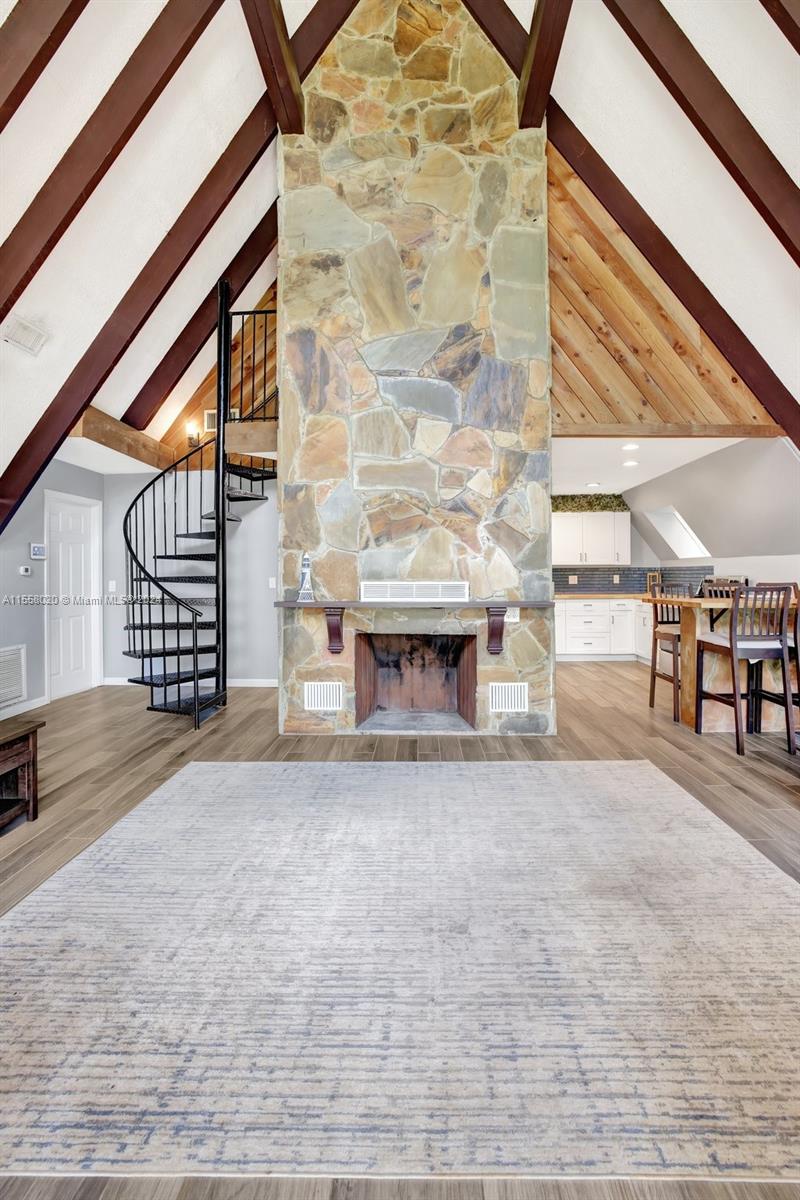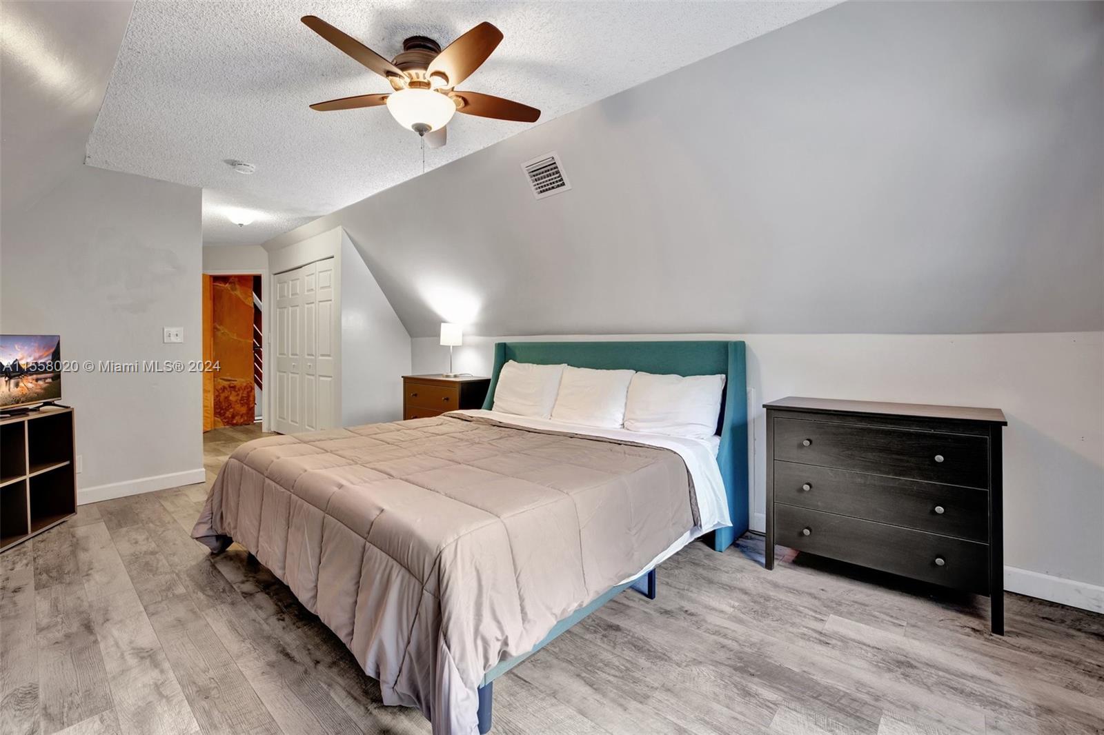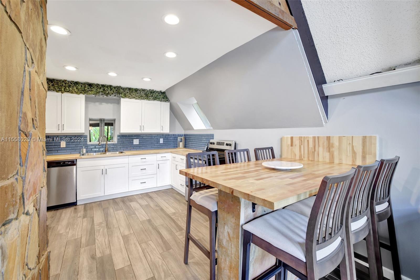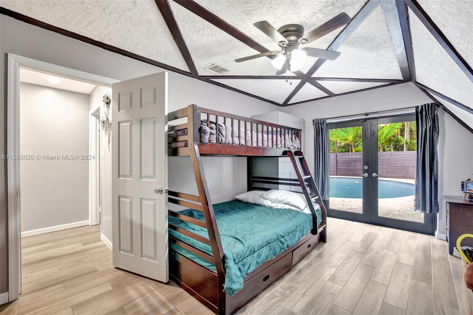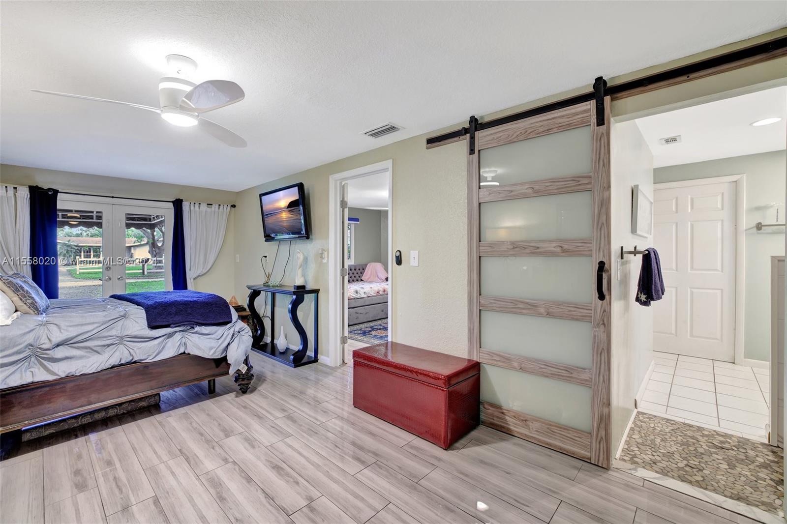 One of a kind A-Frame home, nestled on nearly an acre w/ convenient front & rear access in one of Davie's best neighborhoods. 3 bed, 2 bath pool home PLUS fully equipped charming 2 bed, 1 bath guest house in what feels like tree lined Coconut Grove. Main residence accessible off 24th St features updated open kitchen, wood-burning fireplace & two 1st floor bedrooms opening to pool area; spiral staircase leads to secluded master suite above. Guest house, accessible via 23rd Ct, features a complete kitchen, cozy living space, bedroom, bath & office/bed - perfect for guests/rental income. Large storage shed, lush mature fruit trees & expansive space for all your hobbies, truly a rare find. Hurricane impact windows & doors. A true treasure offering privacy, space, versatility & A Rated Schools.