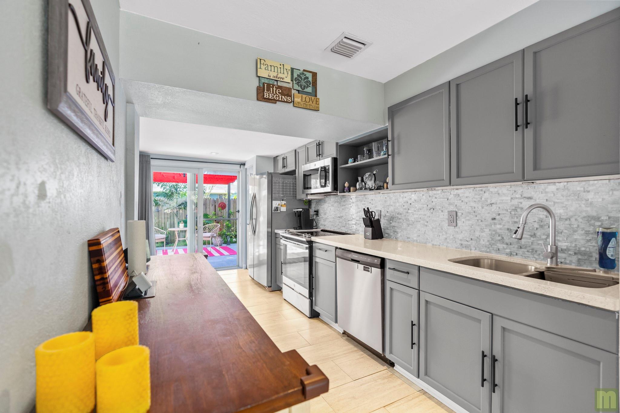 UNDER CONTRACT BUT ACCEPTING BACKUP OFFERS - Beautiful and impeccably maintained 3/2 home in Pompano Beach. Minutes from Lighthouse Point, The Pompano Beach Airpark and the beaches, this completely updated home features impact windows & doors, 2018 roof, tankless hot water heater, updated electric, large plank porcelain tile flooring throughout, pass-through galley-style kitchen with quartz countertops and stainless steel appliances. The kitchen opens up to an eat-in dining area with built-in laundry and access to the back yard. On the outside you'll find a relaxing patio/pergola in the back and an expansive paver side patio with a HUGE 24 x 12 workshop/shed for storage or projects. There's also plenty of parking for an RV, boat or trailer. Close to everything and NO HOA
