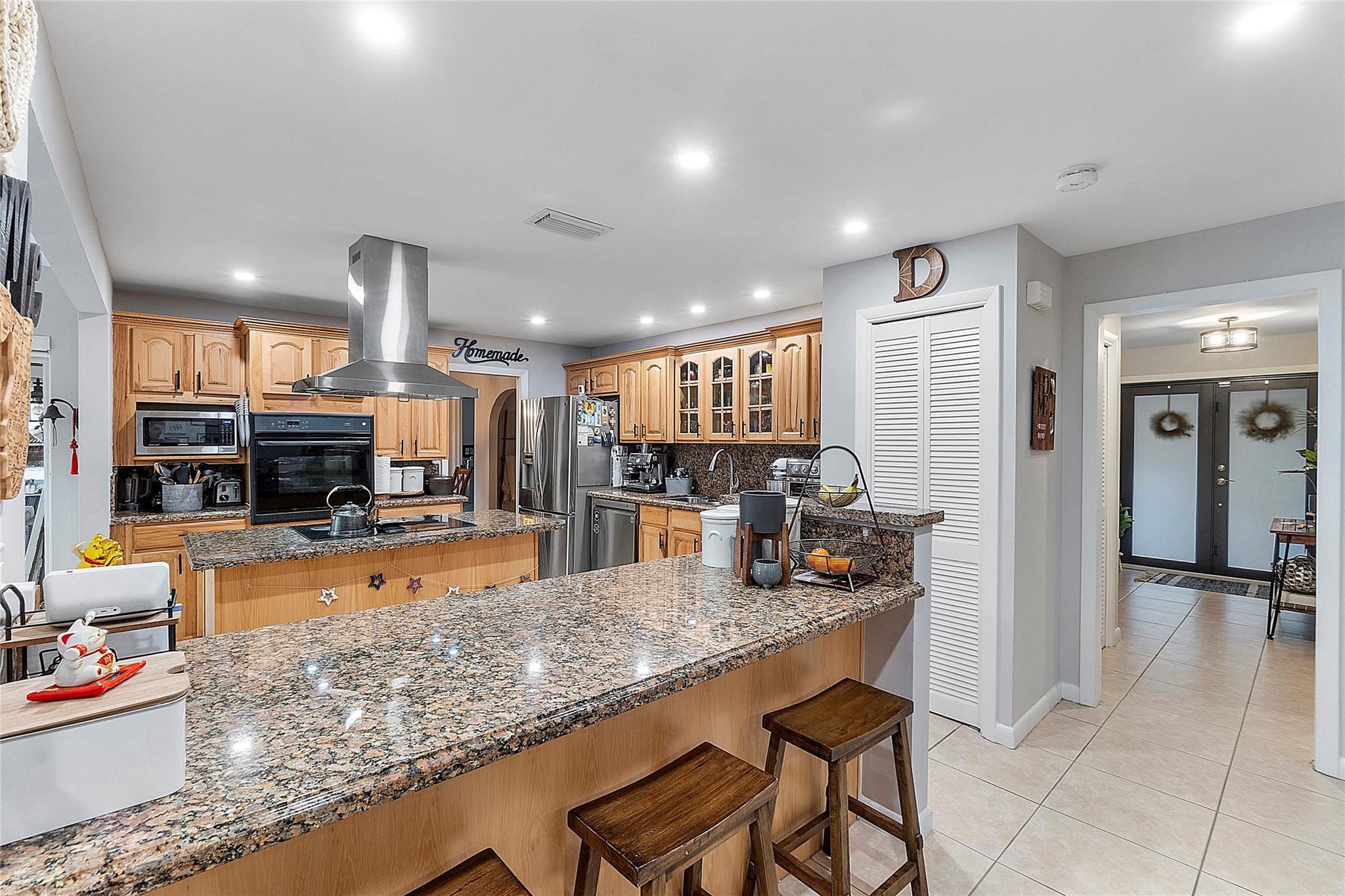 Welcome to your dream oasis! This stunning four-bedroom home boasts a beautiful open floor plan, perfect for modern living and entertaining. Situated on an oversized 15,468 square foot lot, you'll have plenty of space to relax and enjoy the outdoors. The covert area for entertaining features an authentic outdoor kitchen, where you can grill up delicious meals while overlooking the sparkling swimming pool surrounded by pavers. Inside, the bedrooms are spacious and comfortable. Each bathroom has been beautifully upgraded. The spacious kitchen is a chef's dream, complete with a center island, loads of counter space and new range hood. The convenience of a separate laundry room making laundry day a breeze. Experience beauty and comfort in this Home today!