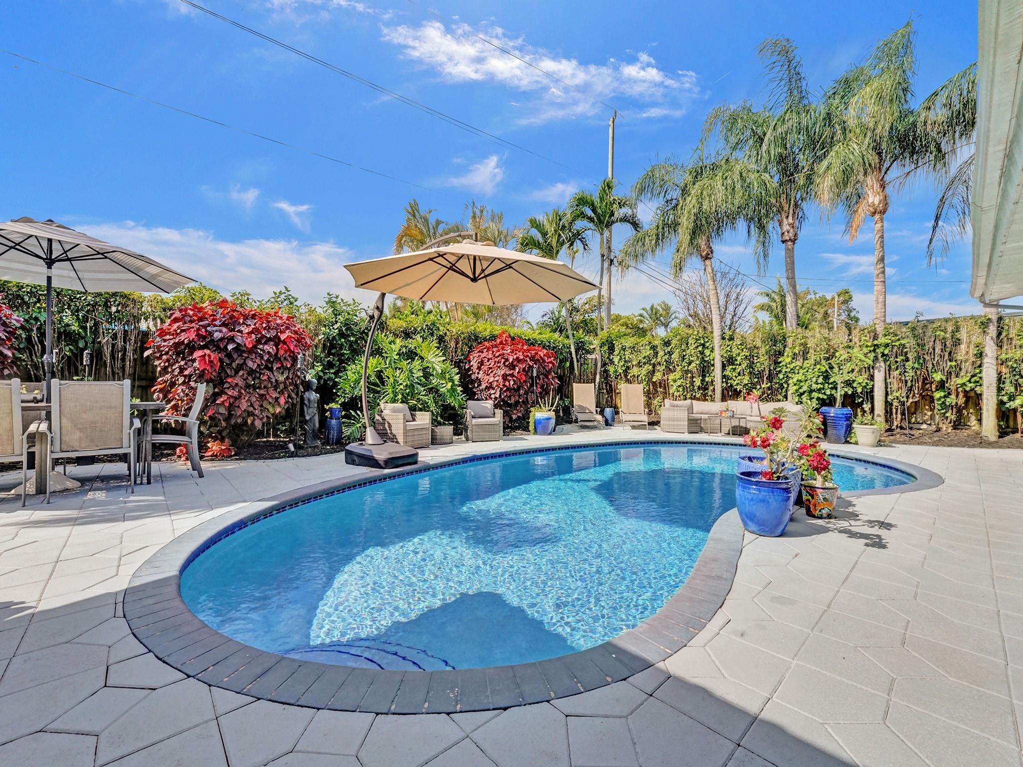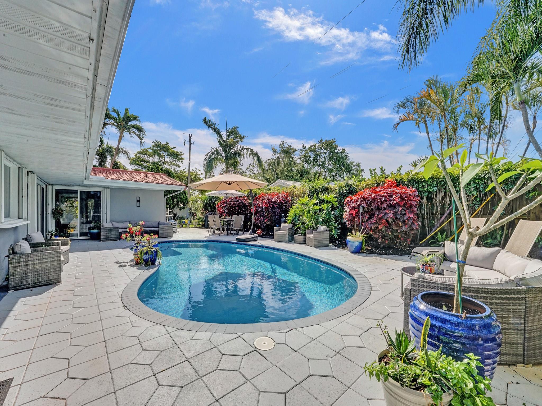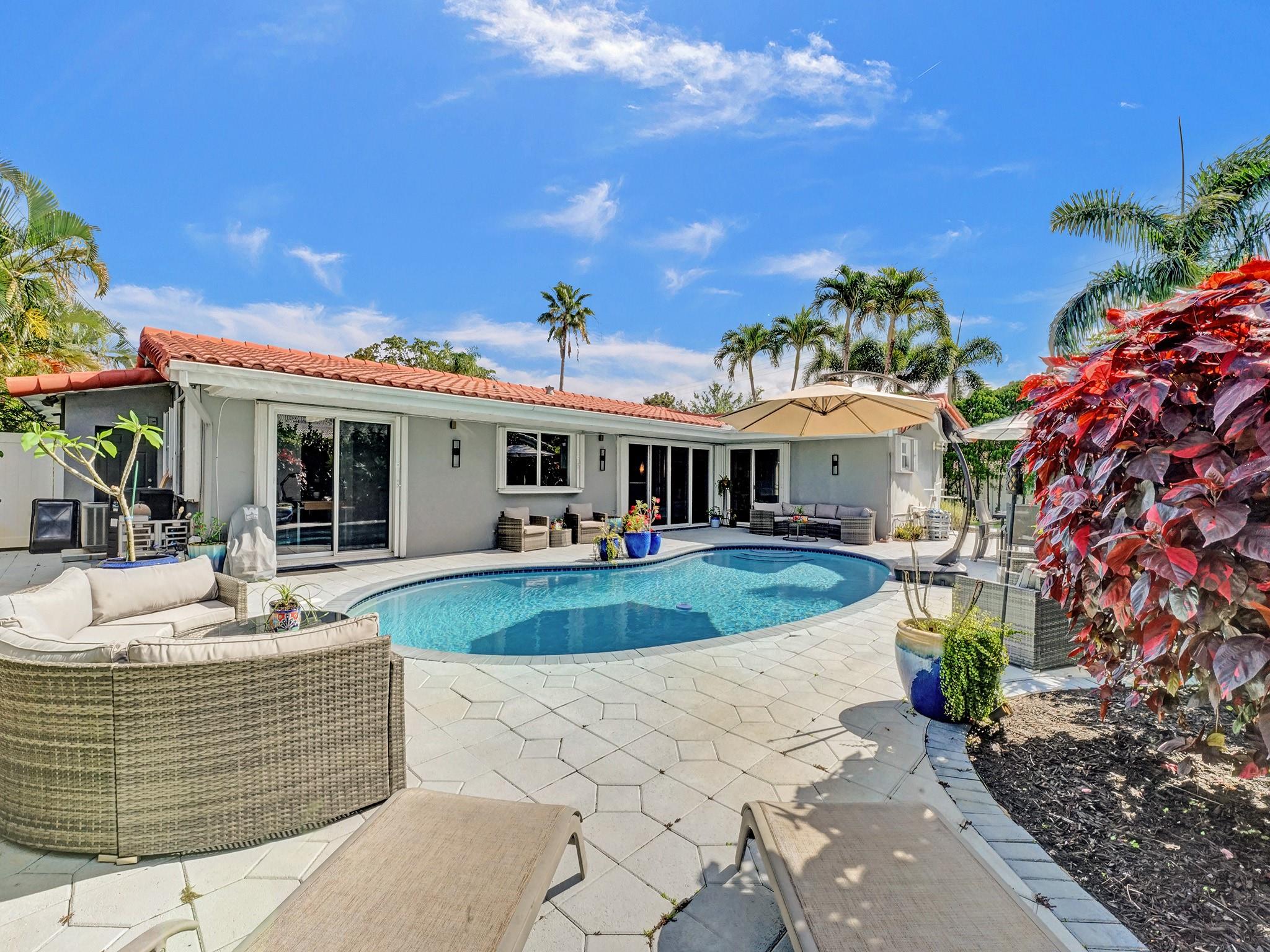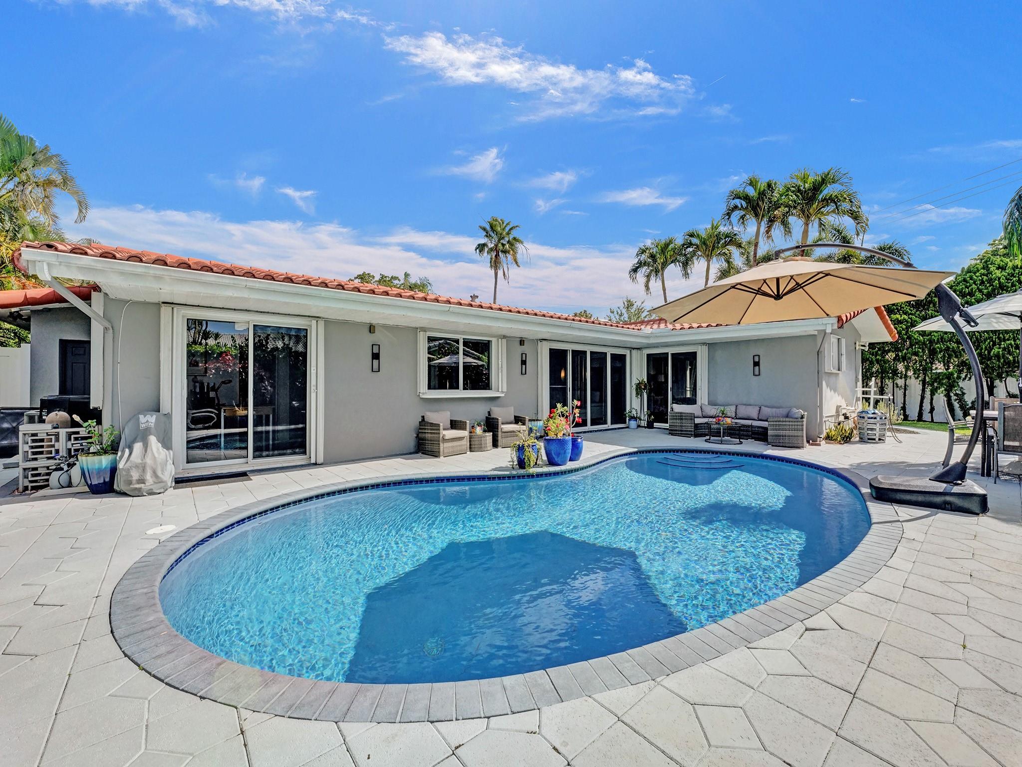 Your DREAM Imperial Point corner lot home awaits, featuring 3 beds, 2 baths, (3rd bedroom doesn't have closet), complemented by a private heated pool & a 2-car garage. Open concept layout, with consistent tile throughout , ideal for entertaining. A notable highlight is the neutral grey paver driveway seamlessly matching the pool deck. Additionally, it includes plantation shutters, an oversized closet in the primary bedroom, & a kitchen with a pass-through window to the pool area, enhancing the home's entertaining appeal. Notably, Westminster Academy & Pine Crest School are both within a few blocks' reach from the home. Front & backyard are beautifully landscaped, adding to the charm. LG washer & dryer, a hurricane-impacted bay window. All openings have hurricane protection.