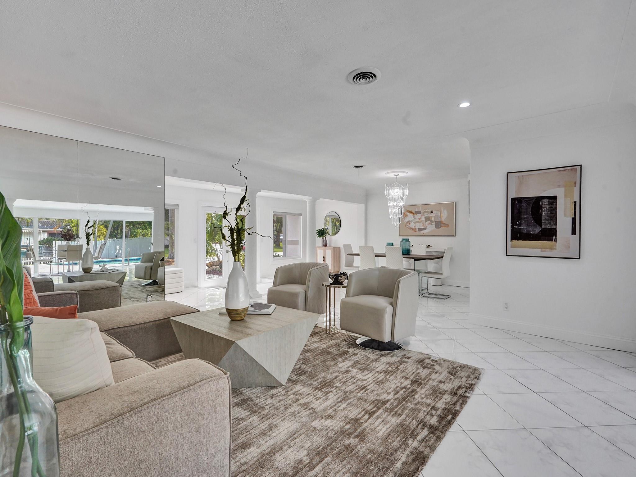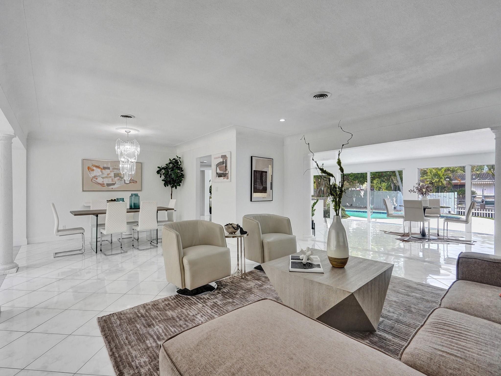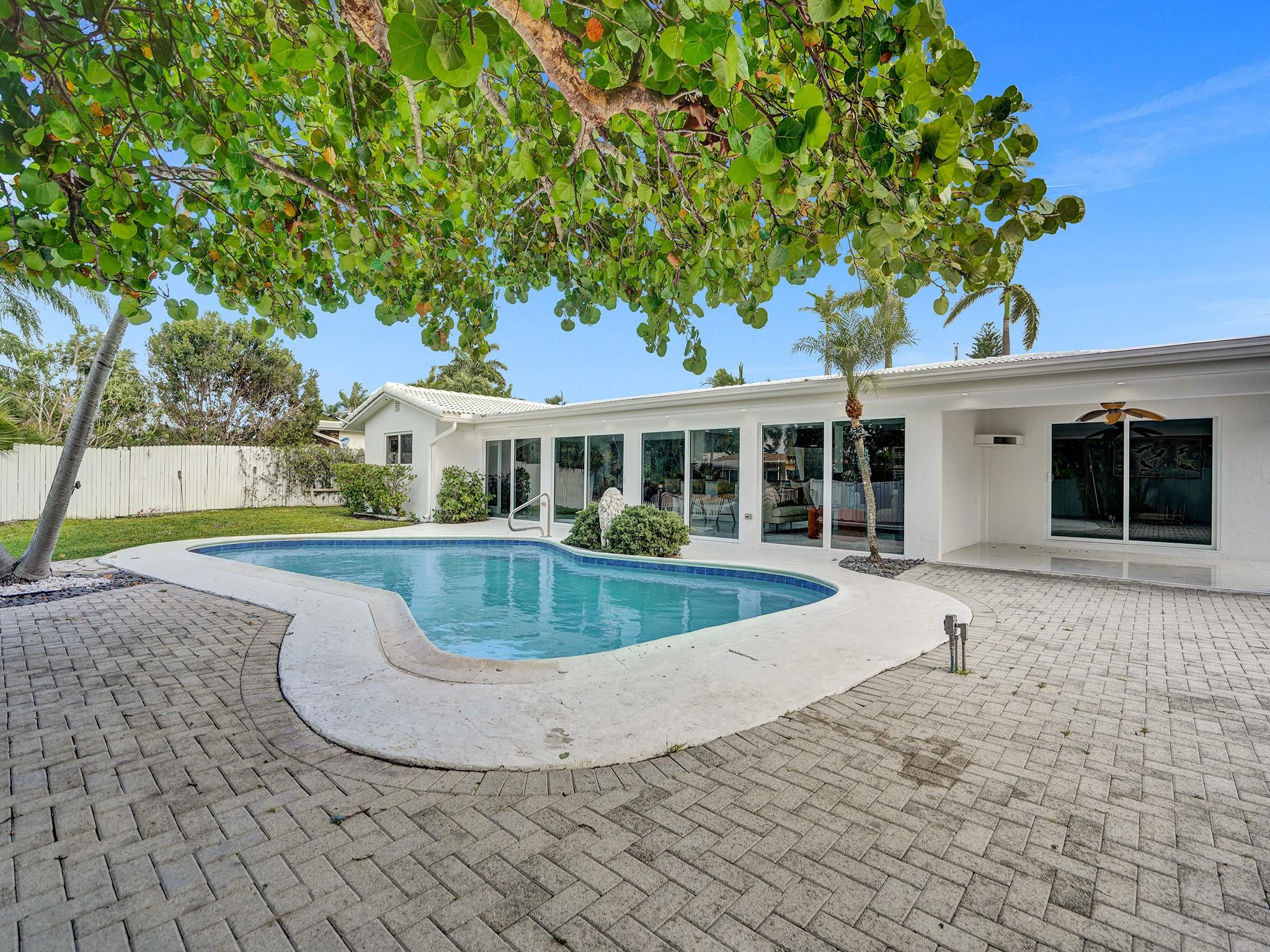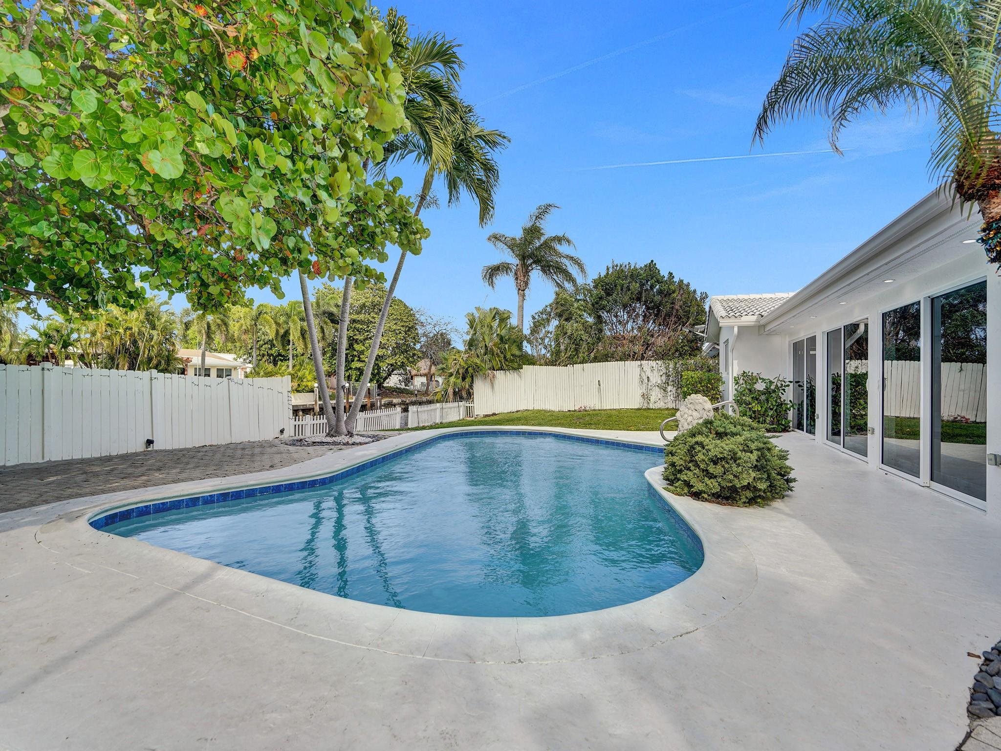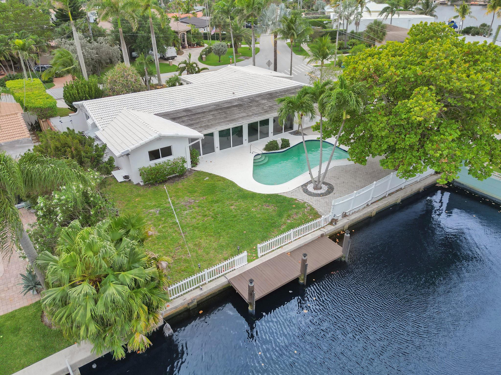 One of the most desirable neighborhoods in Pompano Beach. Waterfront Ocean Access w/ only 1 fixed bridge (Federal Hwy) Impeccably maintained, Large corner lot, 3 Bedroom plus large Den 3 Bath, Pool Home with open concept and huge outdoor area, over-sized 2 car garage and plenty of room for parking. The property boasts floor-to-ceiling impact windows & doors. Seller would consider some short term financing with significant down payment. located near to Shopping, Restaurants, Revitalized Pompano Beach and Downtown Fort Lauderdale. Close to Airport and Major Highways. Fantastic location just 15 minutes to the ocean to experience the true Florida Lifestyle! 80' Seawall in very good condition as is the dock. 15 min boat ride to the intercoastal or 15 min. drive to the beach , total 2355 sq ft.
