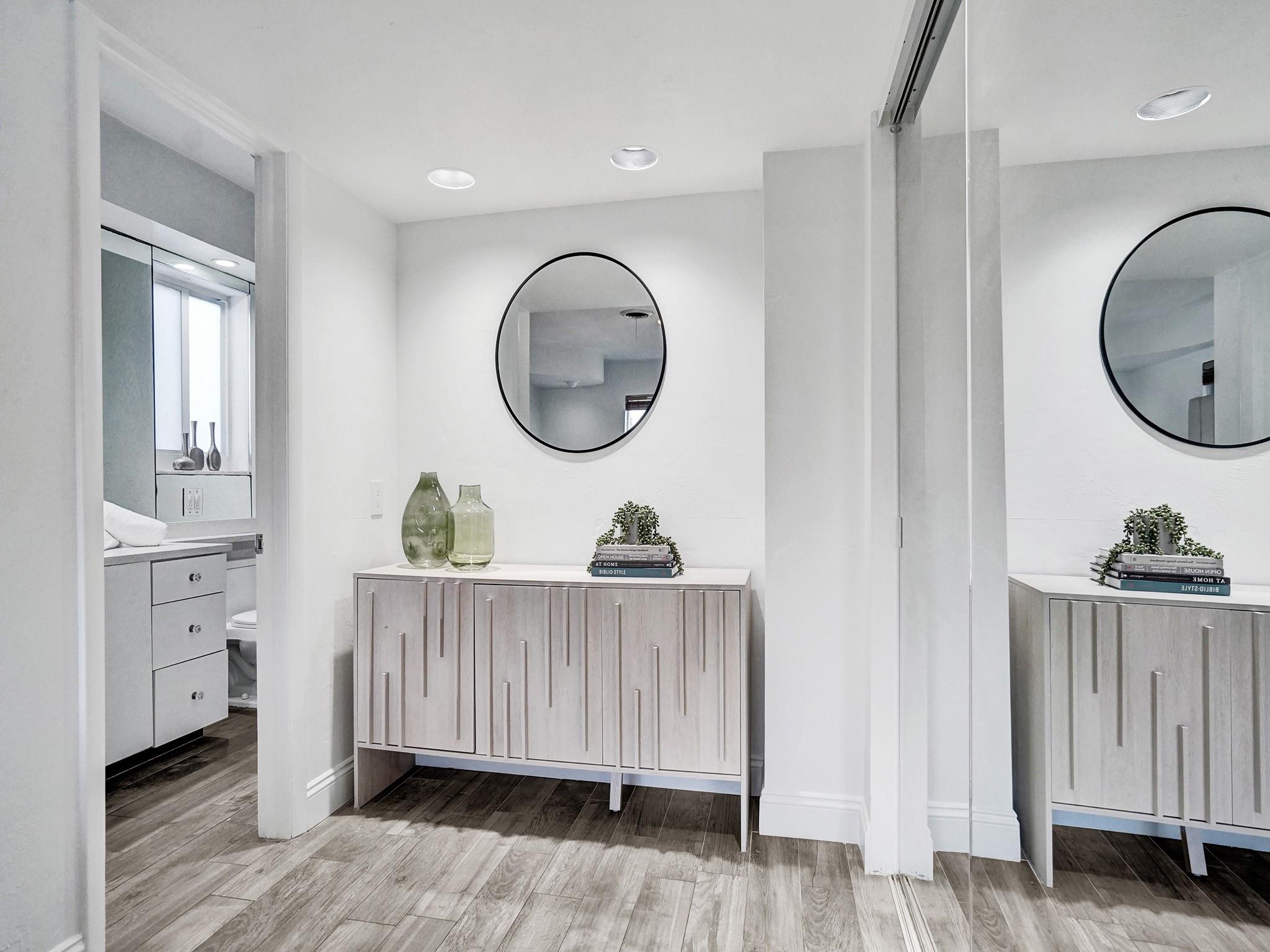 • Interior Feature:BuiltinFeatures, FirstFloorEntry, LivingDiningRoom, CustomMirrors, MainLevelPrimary, TubShower, Bar
