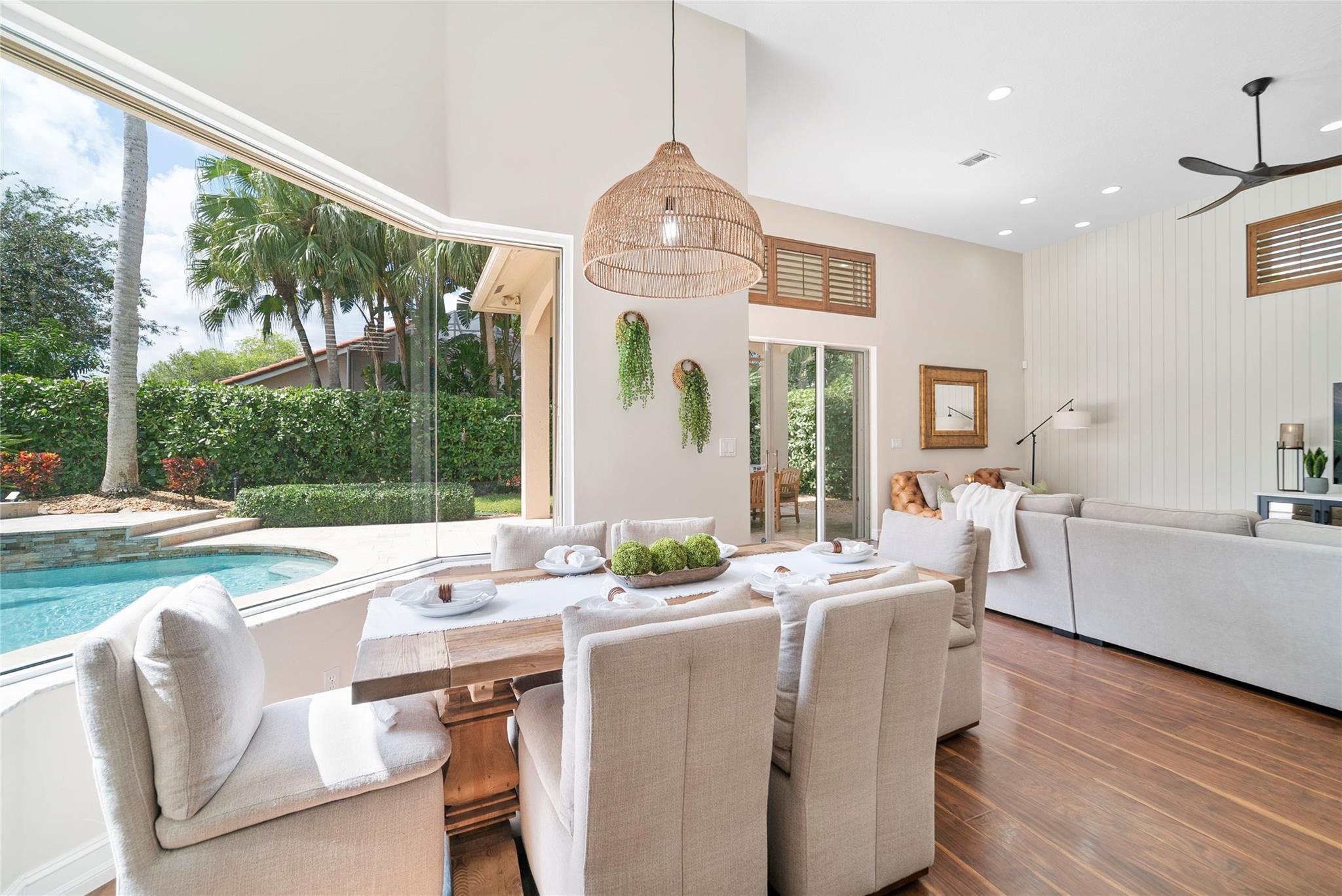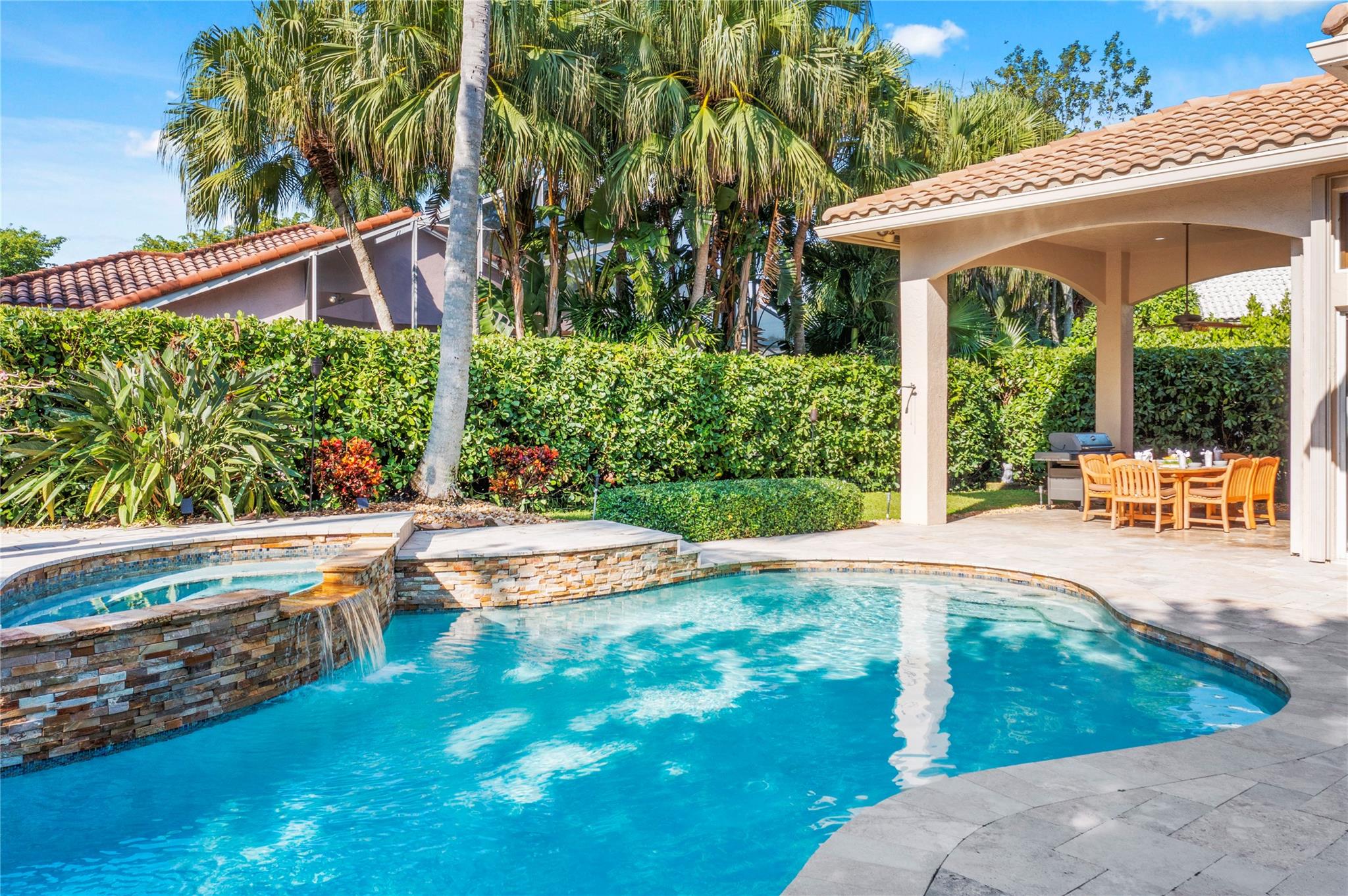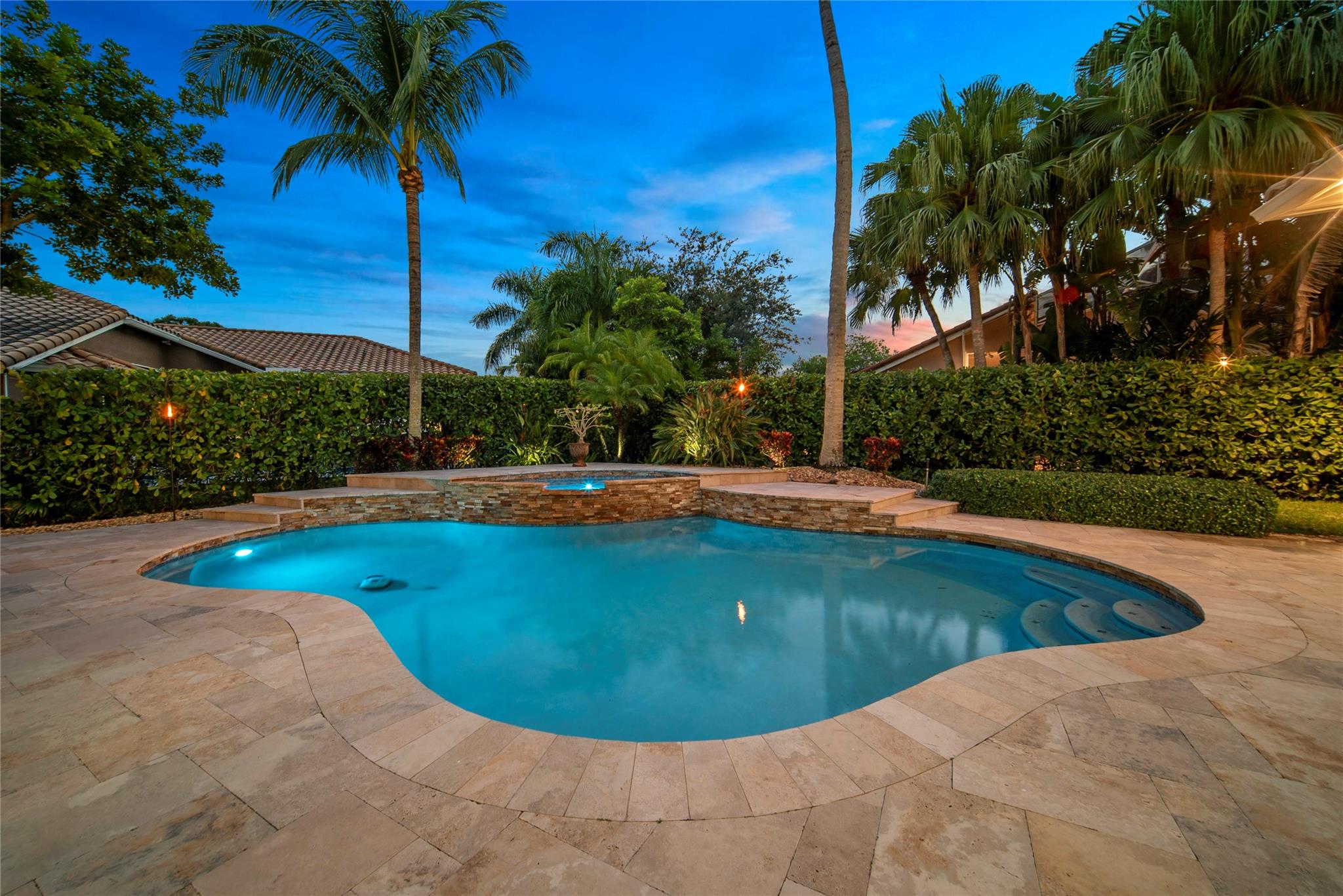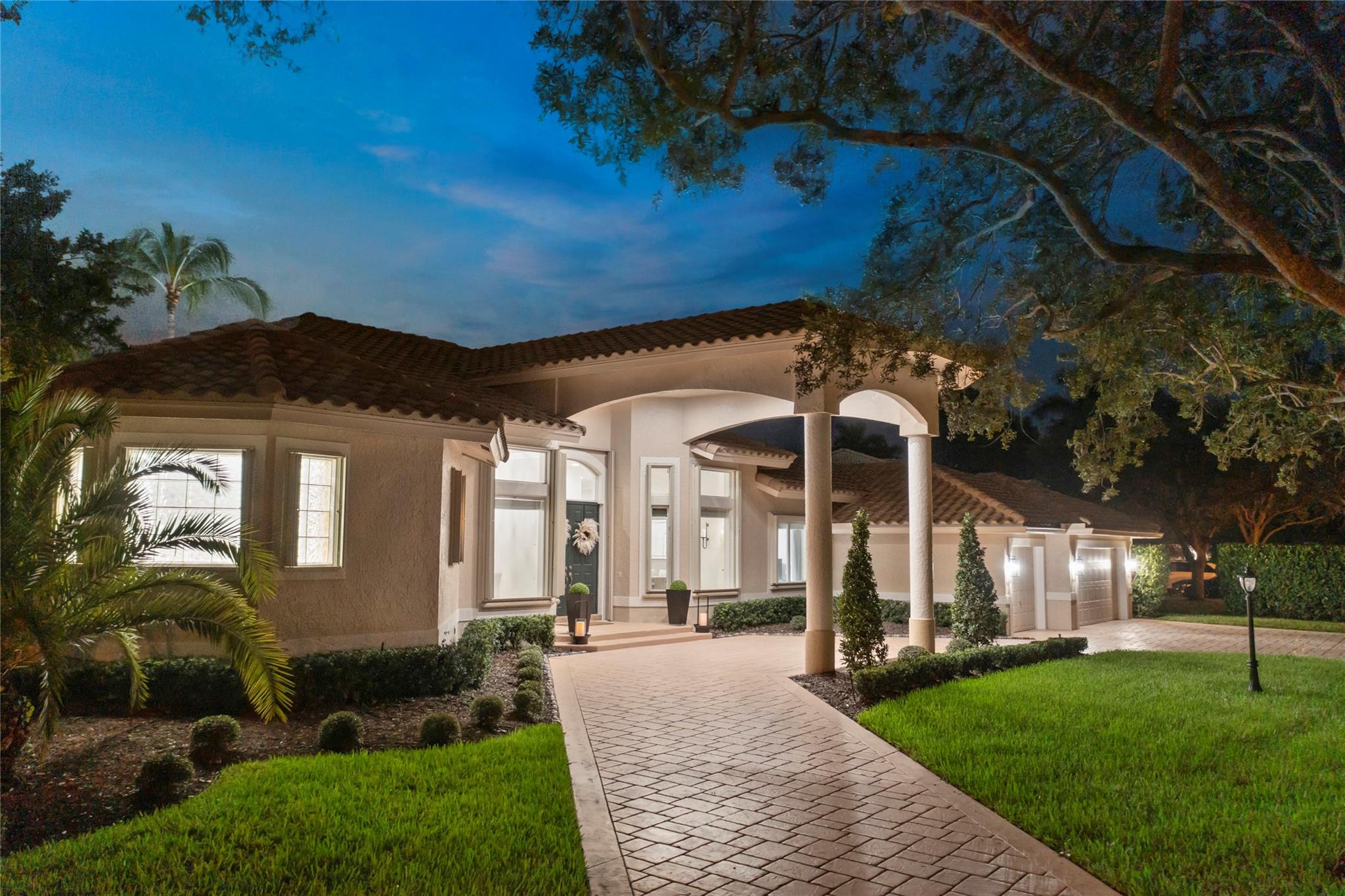 Over 80K In Recent Upgrades & Embrace Your Prominent Apporach & Luxurious Circular Driveway To Your Modern Traditional Home W/5 Beds + 3.5 Bath & Saltwater Pool & Travertine Tile Surrounding Your Private Oasis. Enjoy Your Updated Quartz Kitchen W/ Marble Backsplash & SS Appliances. Wood Flooring & Tile Throughout, New LED Lighting & New Fans & $5K in New Chandeliers, Crown Molding, Freshly Painted Home w/Sherwin Williams Emerald Paint, Updated Primary Bath W/Luxury Finishes & Hidden Storage, Updated Bathrooms, Shiplap Accent Walls & ADT/Fire/Co2 System. 2018 ROOF, 2018 Diamond Bright Pool w/Hot tub Waterfall, 2017 AC's w/ 2023 Ductwork & Updates, Accordion Shutters Complete, Professionally Landscaped & Fenced-In Yard w/ Dog Run. 24 Hour Guard Gated & A-Rated Schools.