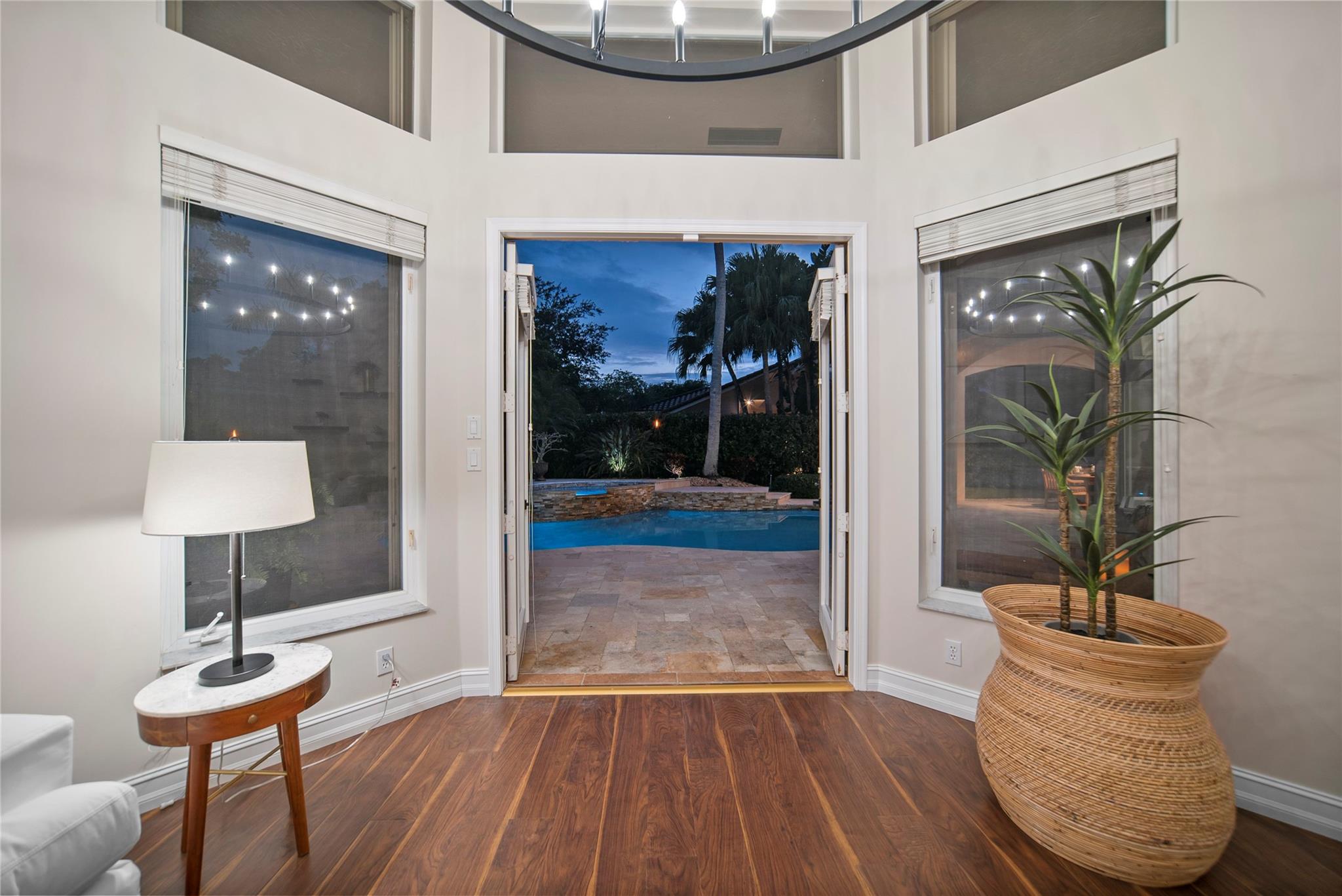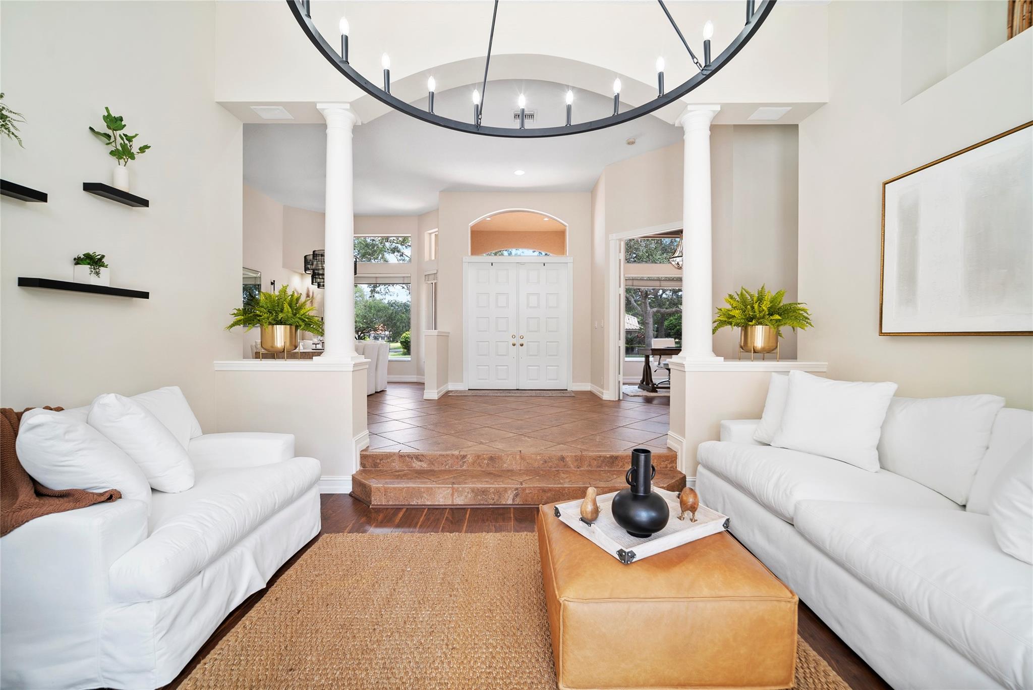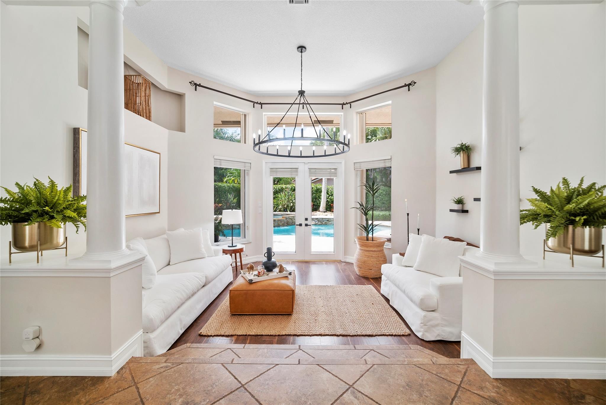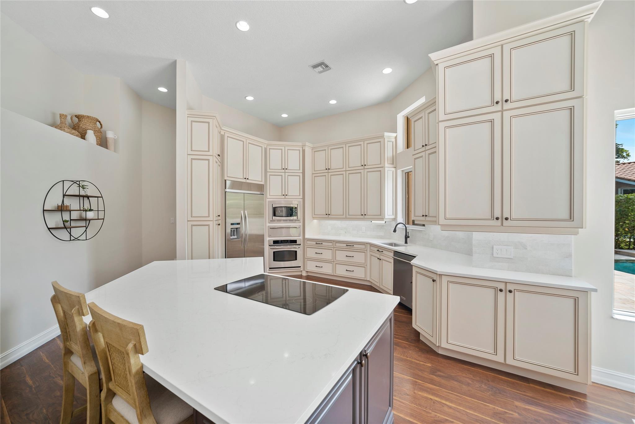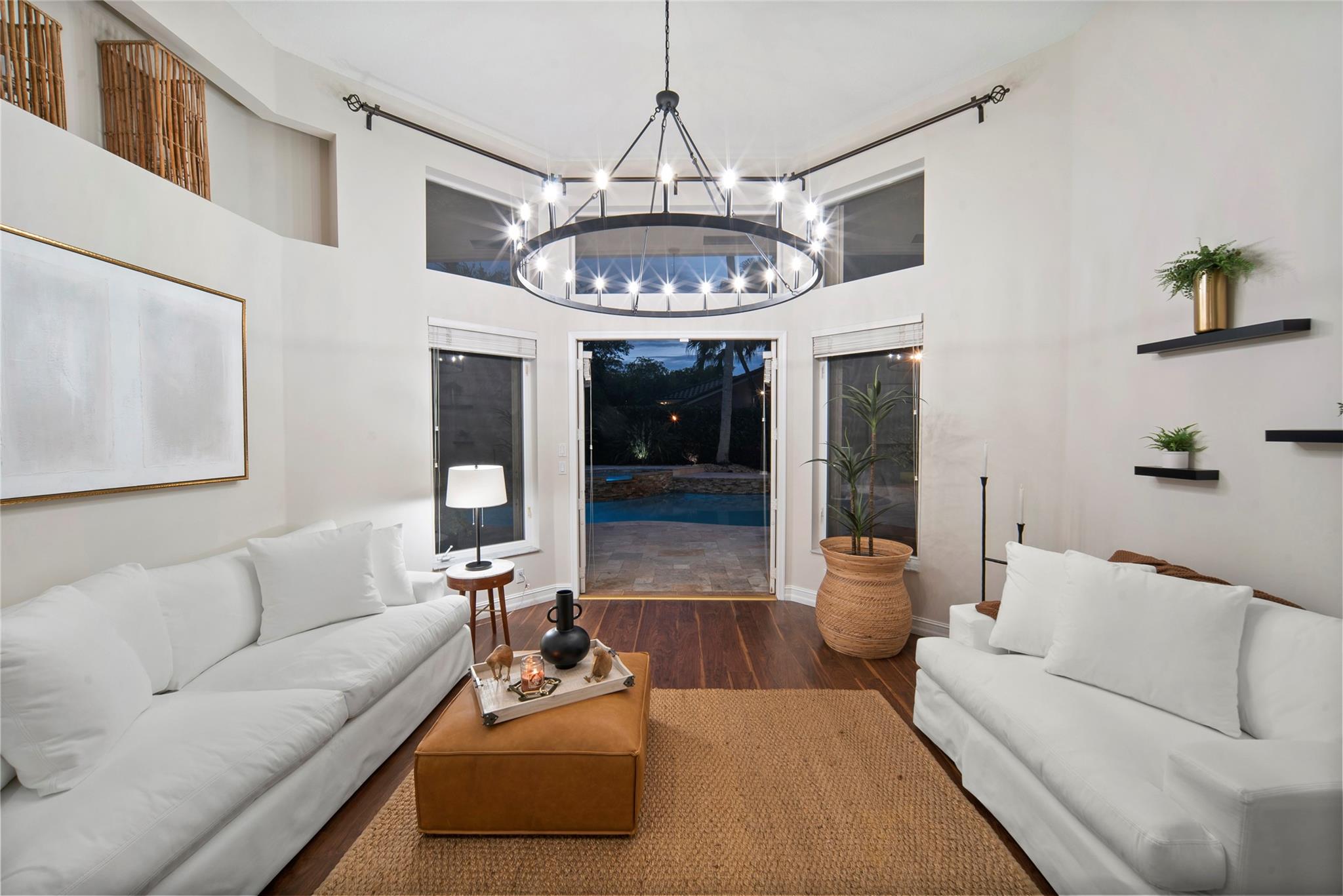 Over 80K In Recent Upgrades & Embrace Your Prominent Apporach & Luxurious Circular Driveway To Your Modern Traditional Home W/5 Beds + 3.5 Bath & Saltwater Pool & Travertine Tile Surrounding Your Private Oasis. Enjoy Your Updated Quartz Kitchen W/ Marble Backsplash & SS Appliances. Wood Flooring & Tile Throughout, New LED Lighting & New Fans & $5K in New Chandeliers, Crown Molding, Freshly Painted Home w/Sherwin Williams Emerald Paint, Updated Primary Bath W/Luxury Finishes & Hidden Storage, Updated Bathrooms, Shiplap Accent Walls & ADT/Fire/Co2 System. 2018 ROOF, 2018 Diamond Bright Pool w/Hot tub Waterfall, 2017 AC's w/ 2023 Ductwork & Updates, Accordion Shutters Complete, Professionally Landscaped & Fenced-In Yard w/ Dog Run. 24 Hour Guard Gated & A-Rated Schools.