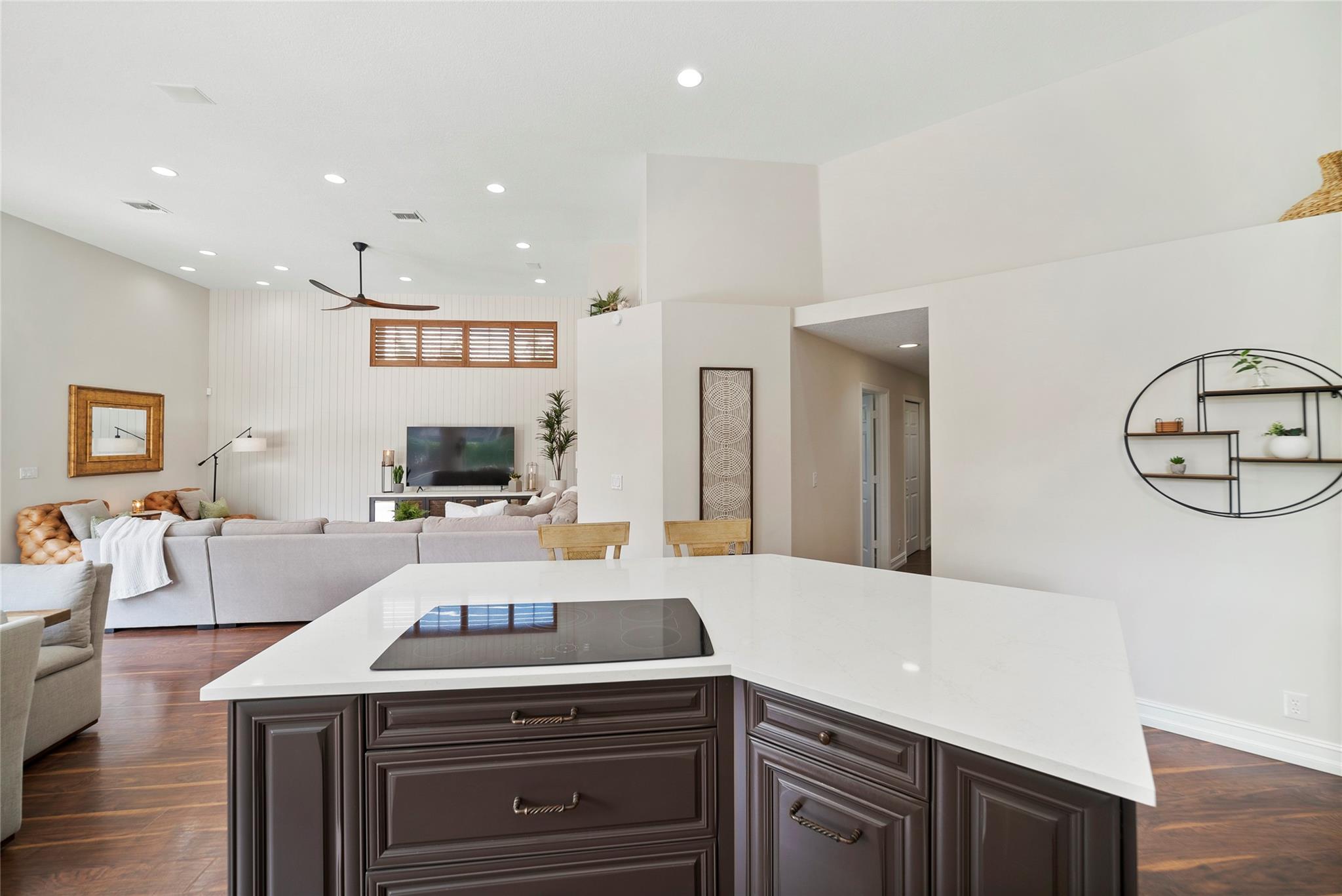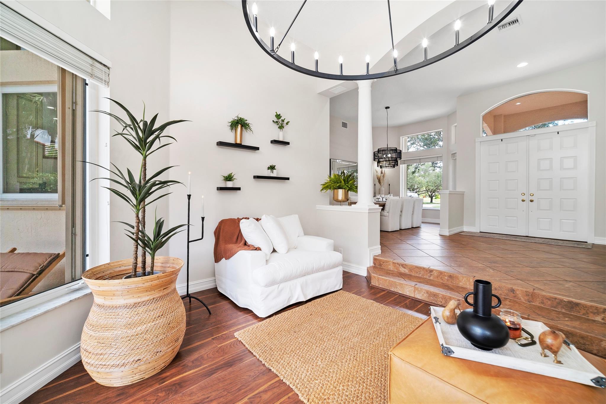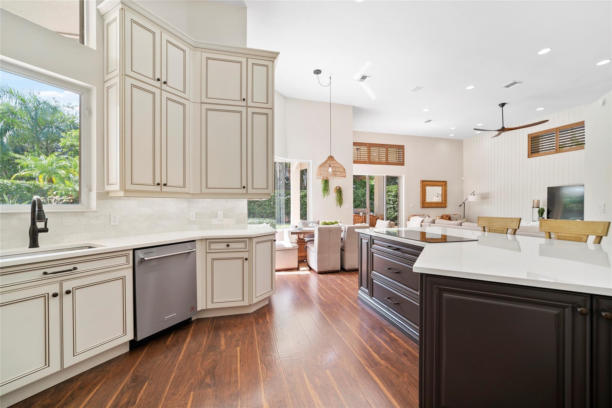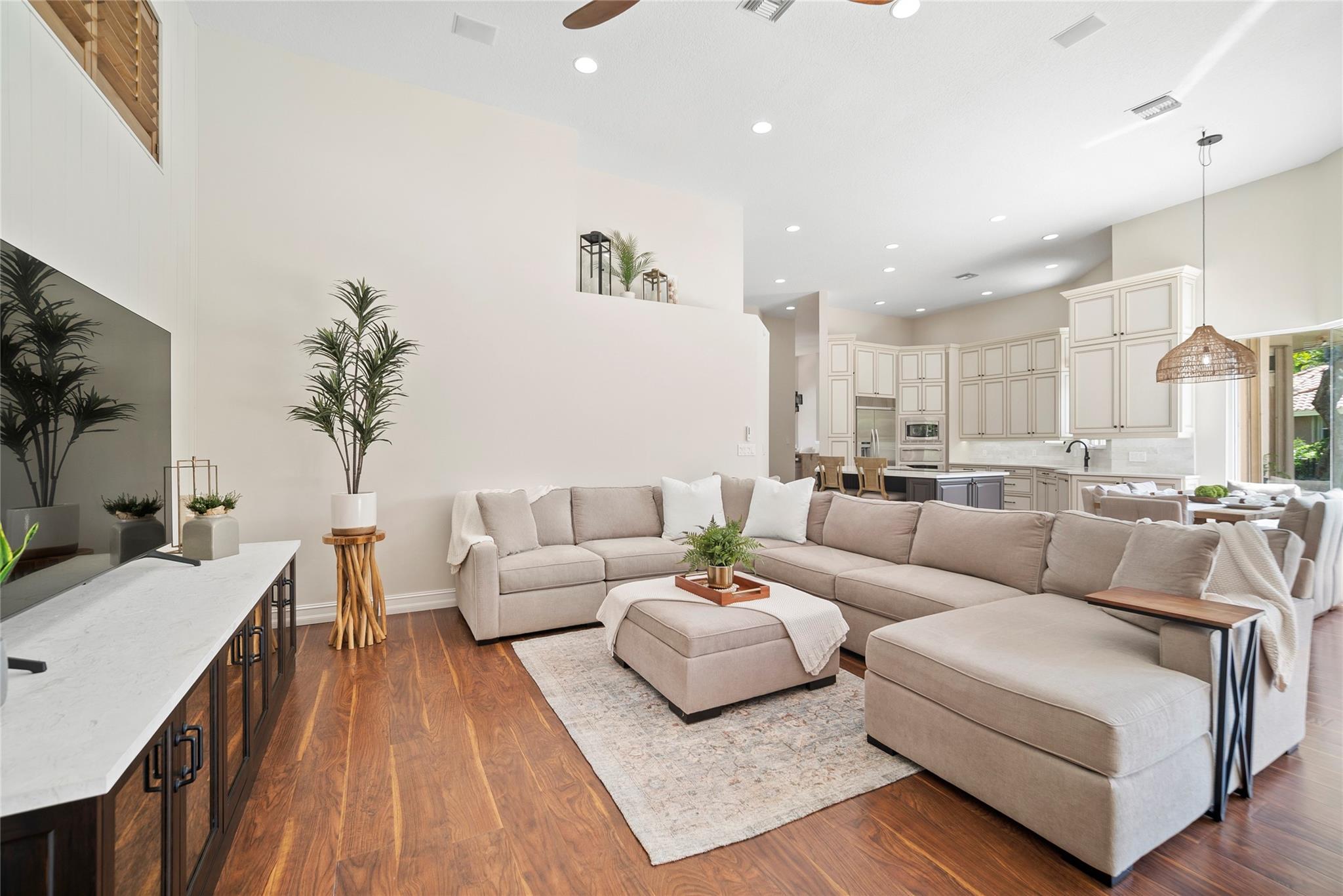 Over 80K In Recent Upgrades & Embrace Your Prominent Apporach & Luxurious Circular Driveway To Your Modern Traditional Home W/5 Beds + 3.5 Bath & Saltwater Pool & Travertine Tile Surrounding Your Private Oasis. Enjoy Your Updated Quartz Kitchen W/ Marble Backsplash & SS Appliances. Wood Flooring & Tile Throughout, New LED Lighting & New Fans & $5K in New Chandeliers, Crown Molding, Freshly Painted Home w/Sherwin Williams Emerald Paint, Updated Primary Bath W/Luxury Finishes & Hidden Storage, Updated Bathrooms, Shiplap Accent Walls & ADT/Fire/Co2 System. 2018 ROOF, 2018 Diamond Bright Pool w/Hot tub Waterfall, 2017 AC's w/ 2023 Ductwork & Updates, Accordion Shutters Complete, Professionally Landscaped & Fenced-In Yard w/ Dog Run. 24 Hour Guard Gated & A-Rated Schools.