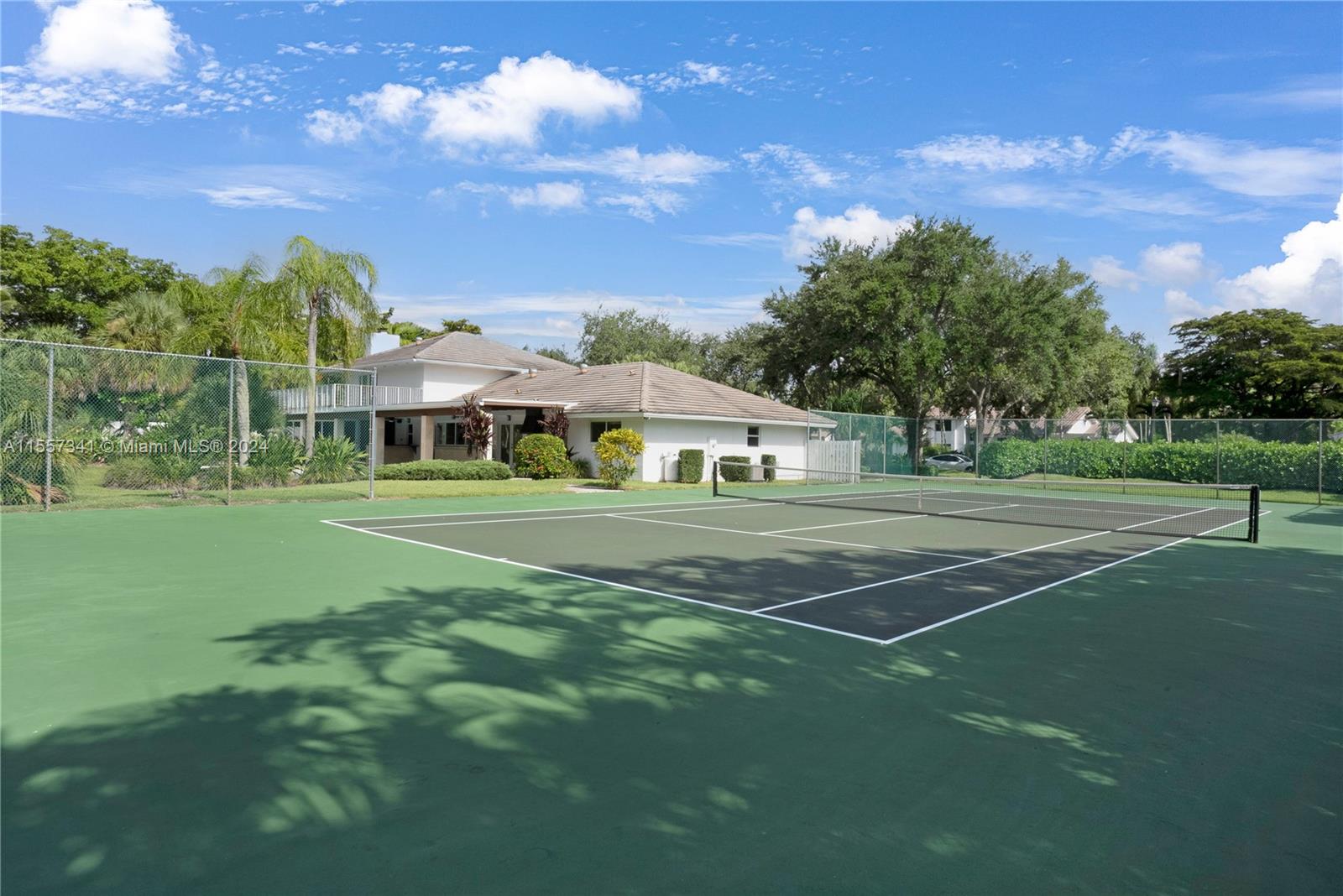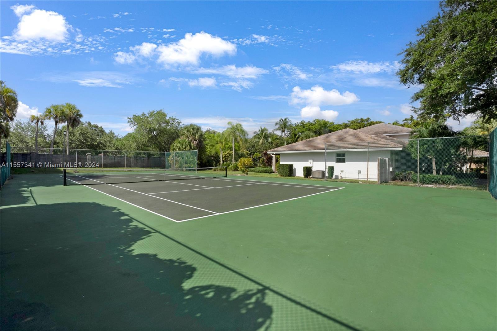 Experience luxury living in this Galloway Glen property. This beautiful home boasts a private tennis court and a private pool. With five bedrooms and four bathrooms, it's perfect for a family. Enjoy the warm ambiance of a fireplace and the convenience of a true two-car garage. Entertain guests in the large formal dining room or the oversized covered patio, complete with a built-in grill. You can relax knowing the neighborhood keeps a 24-hour security detail and know you are safe in your home from tropical weather with complete high impact windows and doors. Don't miss out on this amazing opportunity.
