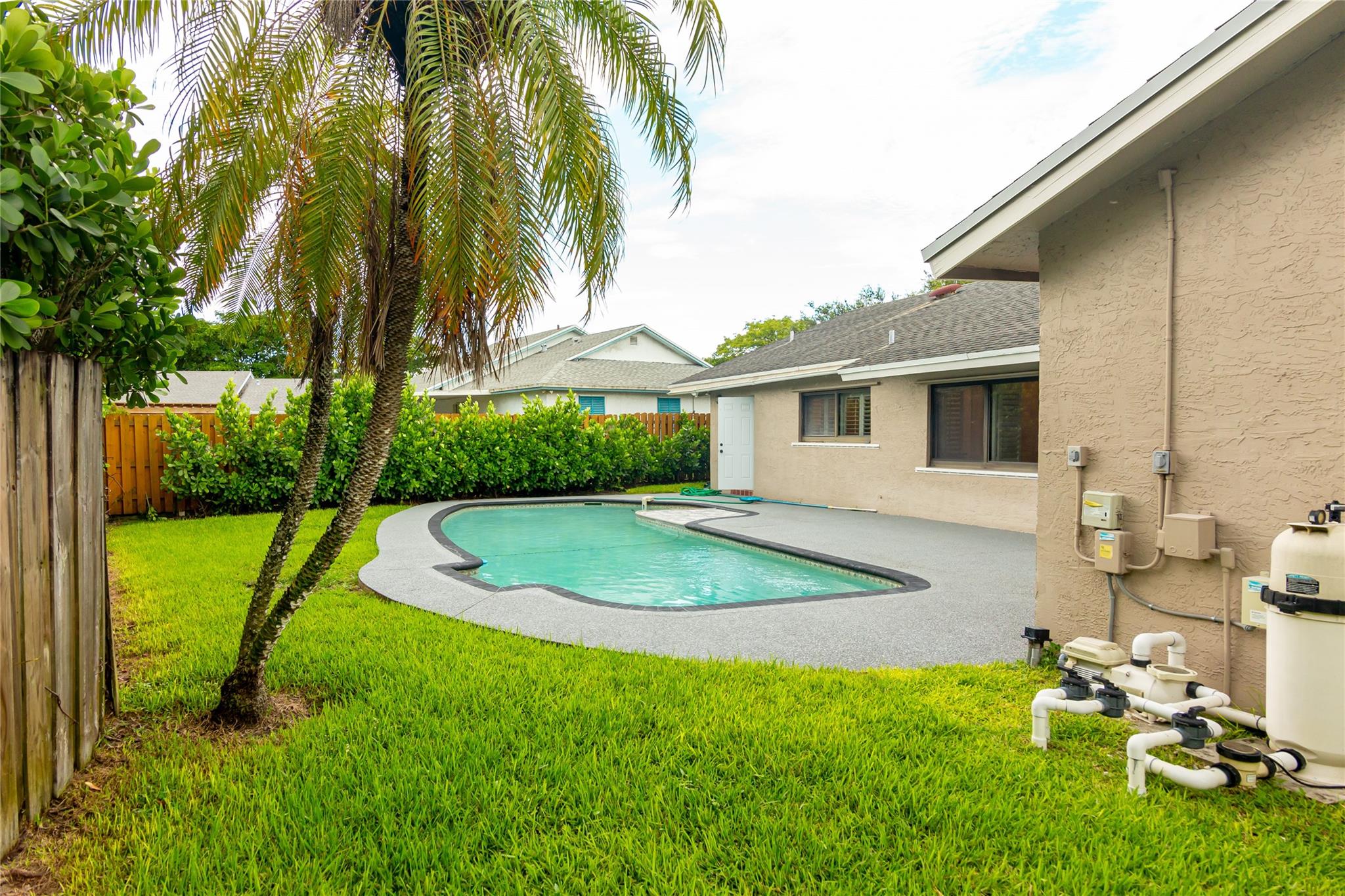 Welcome home to this stunning, single family, home located in the desirable city of Cooper City! This 4/2 home has a private backyard complete with a saltwater pool (with new plumbing and commercial-grade pool equipment installed in 2021) perfect for entertaining guests. Other features include a modern kitchen with stainless steel appliances, high ceiling in the living room, updated bathrooms, recess lighting, plantation shutters, modern flooring, newer AC (2019), newer water heater (2015) and a Vivint smart home security system. Also included, are hurricane impact windows and outdoor cameras! as well as a 2 car garage. Located in an A-rated school zone this home is located in a community with NO HOA! You won't want to miss seeing this impeccable home in Cooper City! Move in ready!