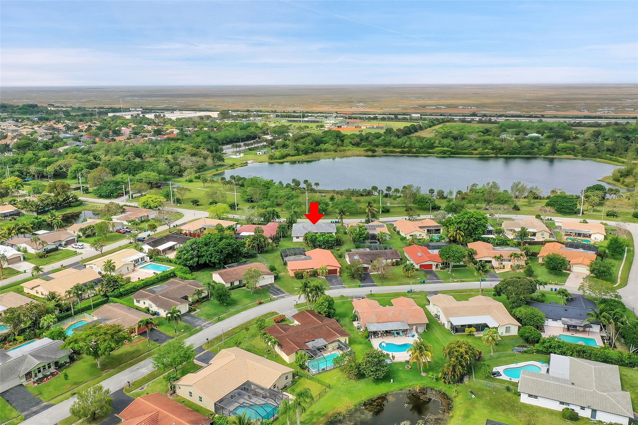 Prime Coral Springs location! With ample square footage (plus a pool and garage, too!)- this perfectly situated home is waiting for your personal touches. Close to major highways for convenient commute. Enjoy the most beautiful sunsets from your front yard lake view. Simply walk across the street to the dog park, community garden, playground, and walking path. With three spacious bedrooms and multiple living areas, this home is the perfect family hub. Primary bathroom is gutted and prepped for remodel.