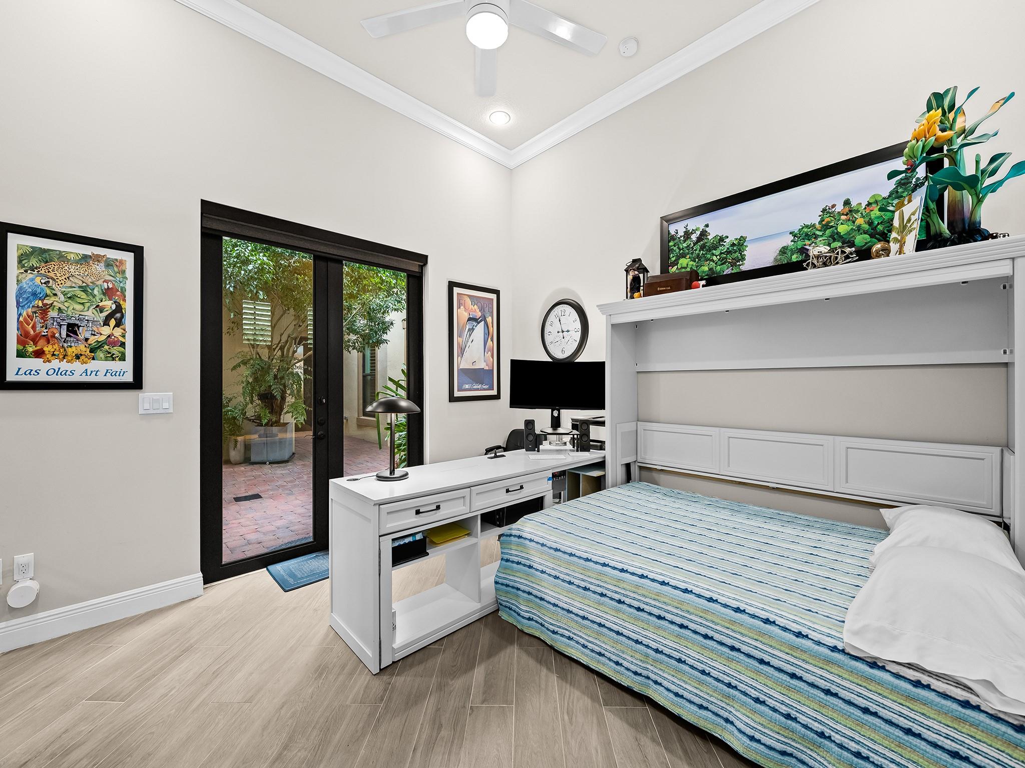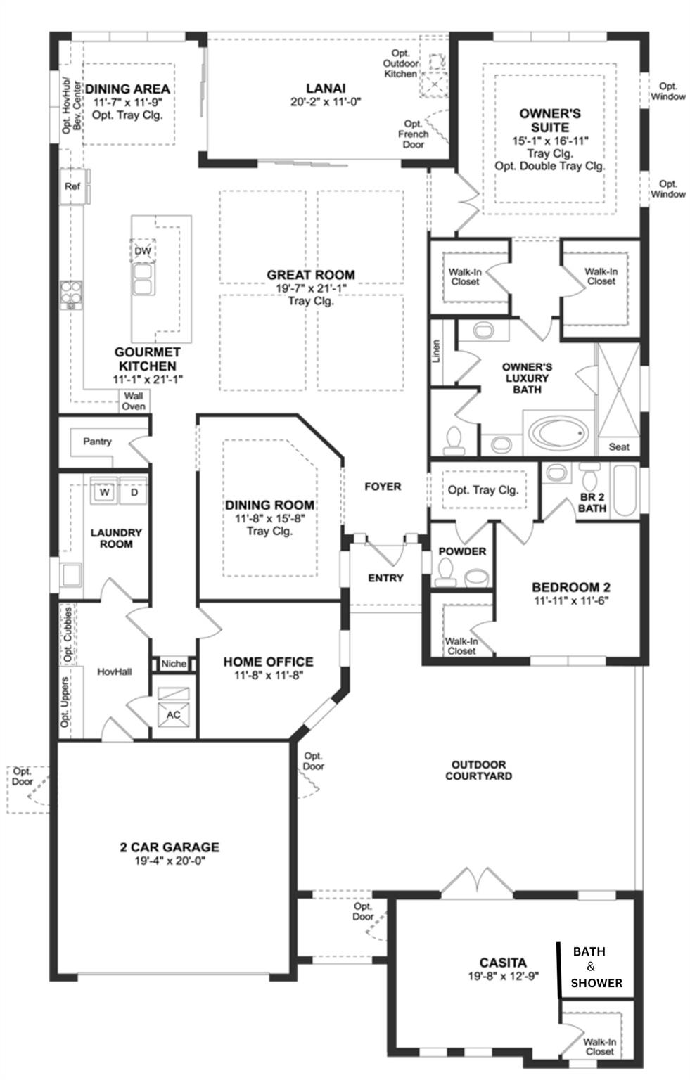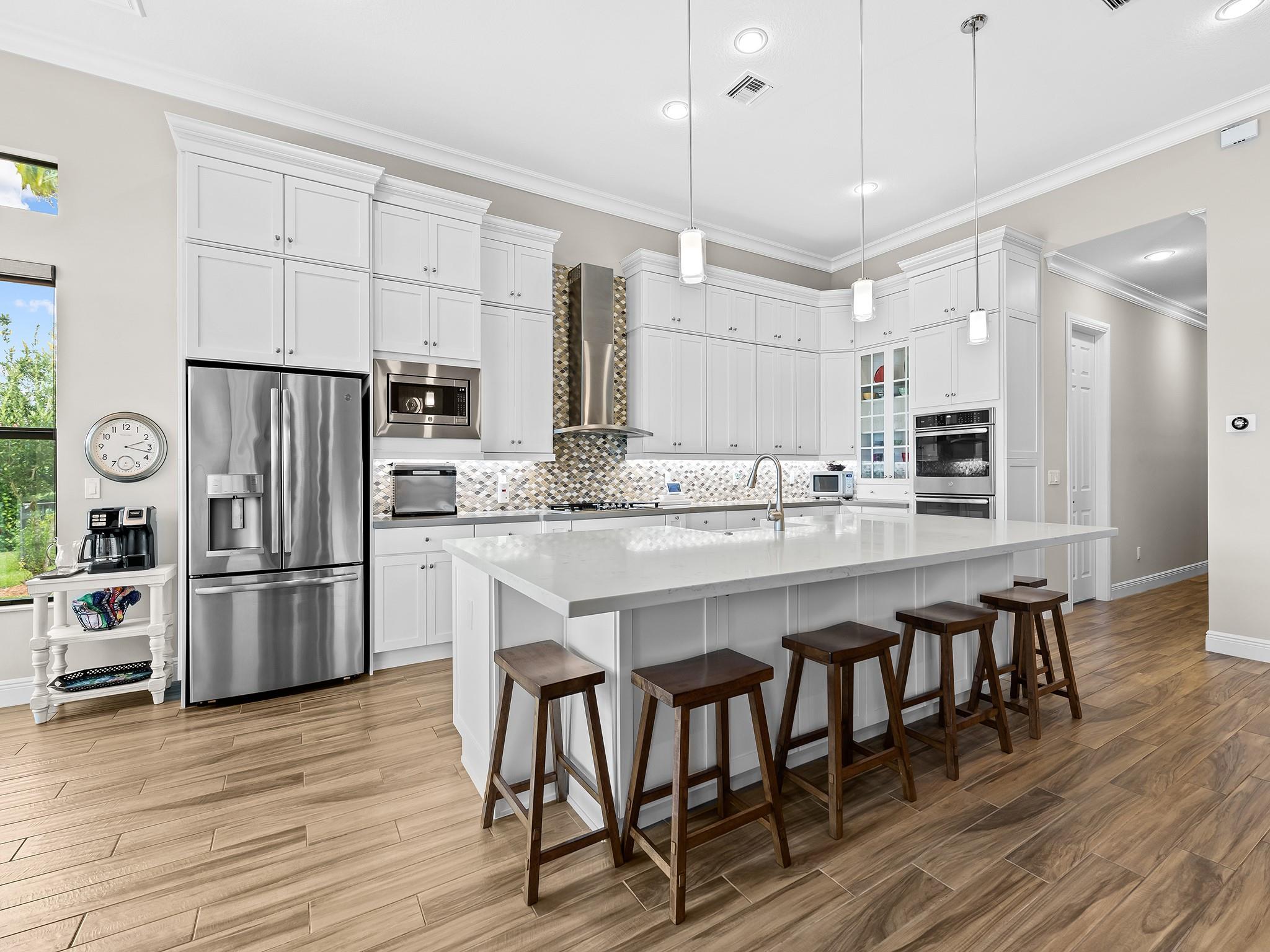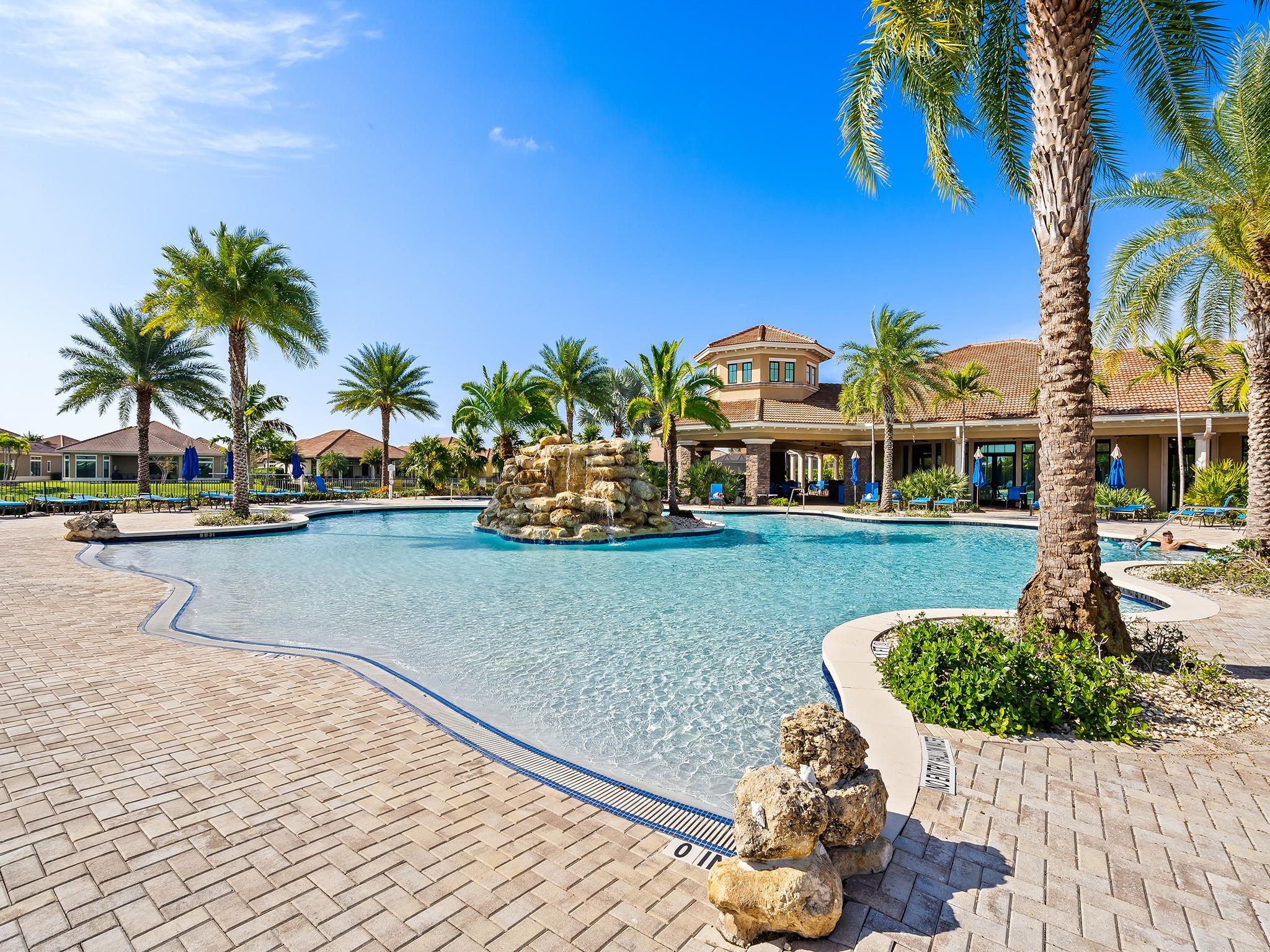 Located in Four Seasons Parkland (55+ community) and fronting a park, this home enjoys unobstructed lake views and tranquil ambiance. The louvered courtyard can be closed to create an additional outdoor room. A separate lanai has retractable screening. The casita (a detached building with large closet and full bath) offers versatile usage options. There’s abundant storage throughout: double upper kitchen cabinets, walk-in pantry, custom-built storage in master bedroom, mudroom, den & garage, and a well-appointed laundry room. Situated on one of the most coveted lots in the community, this residence offers a perfect balance of close proximity to clubhouse amenities (gym, card room, art room, BBQ, pools, café, bocce, tennis, pickleball, etc) while maintaining a serene retreat from the action
