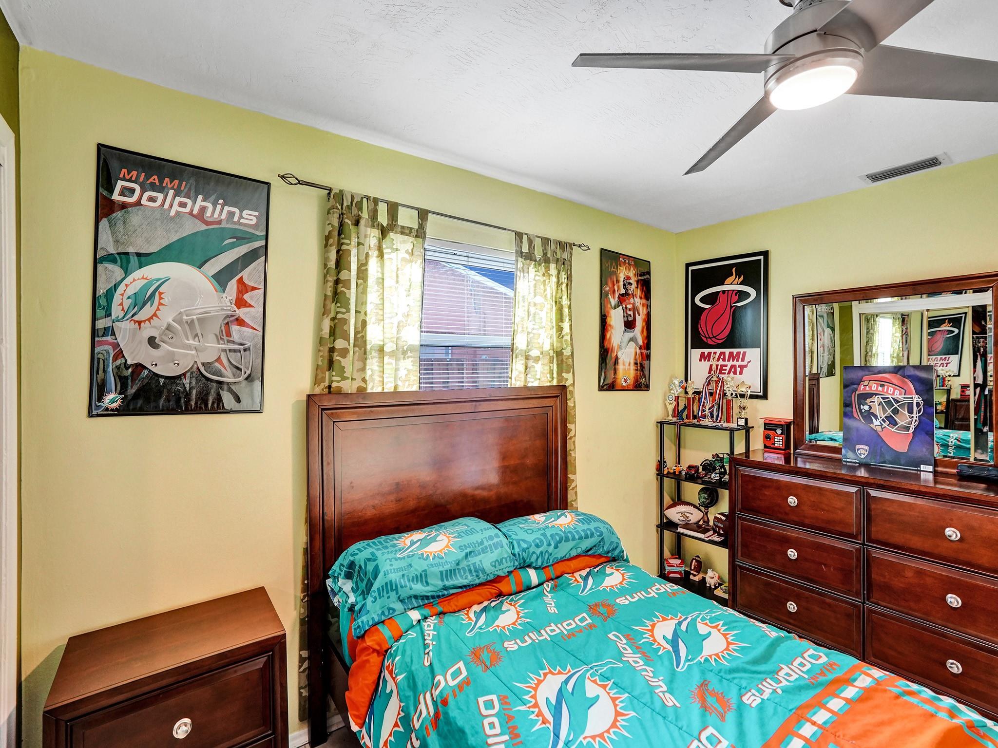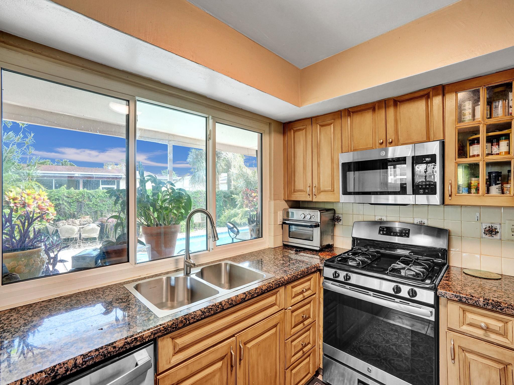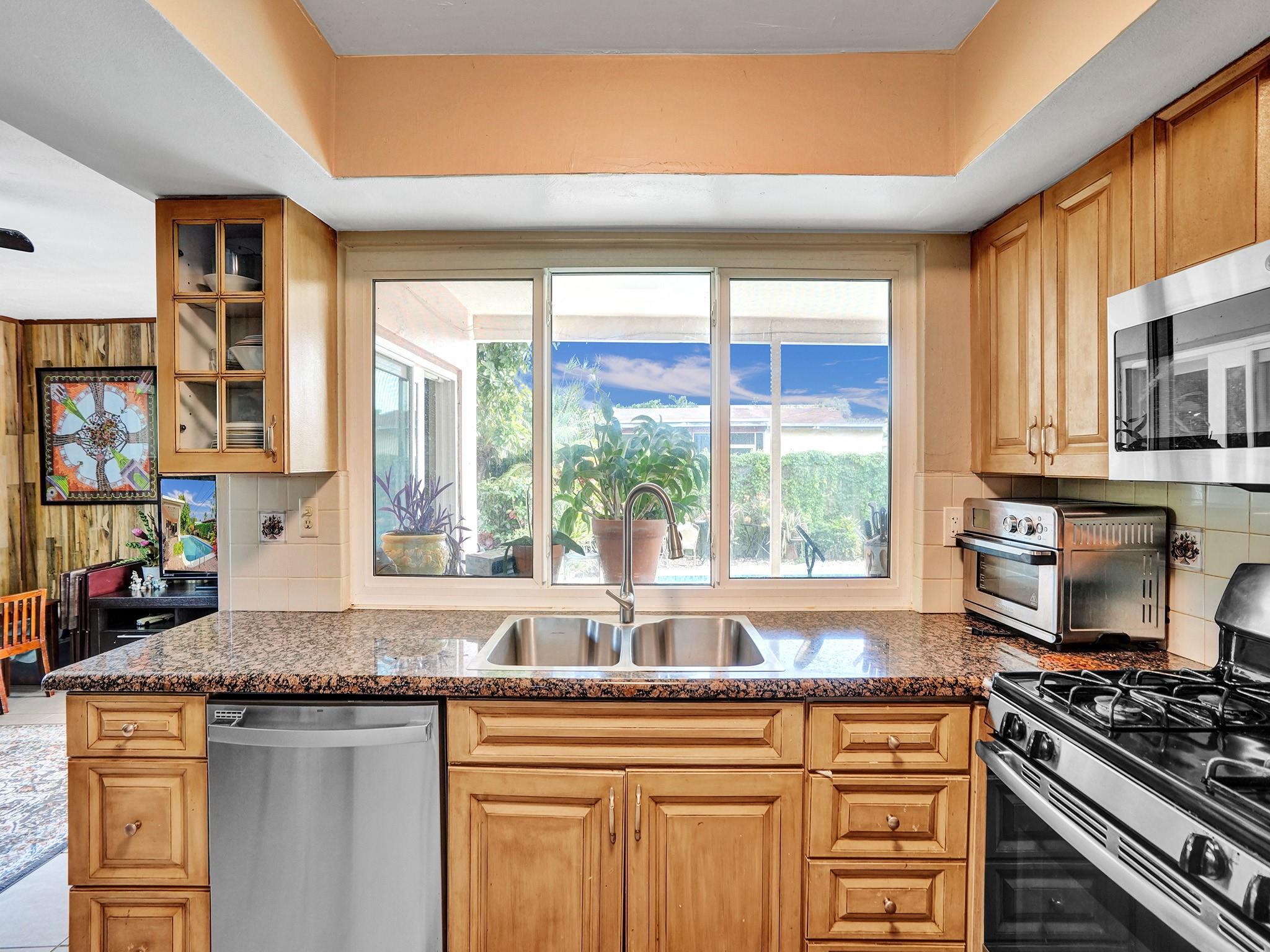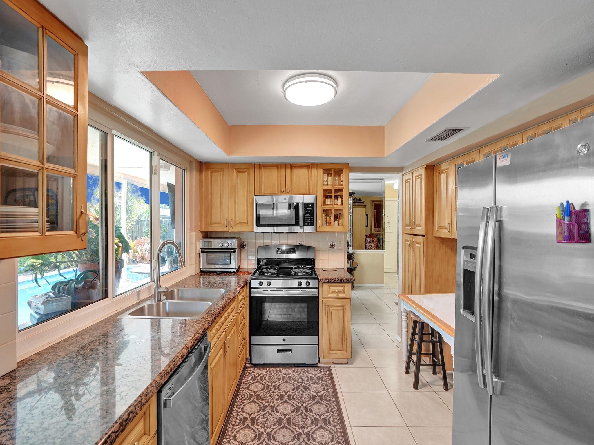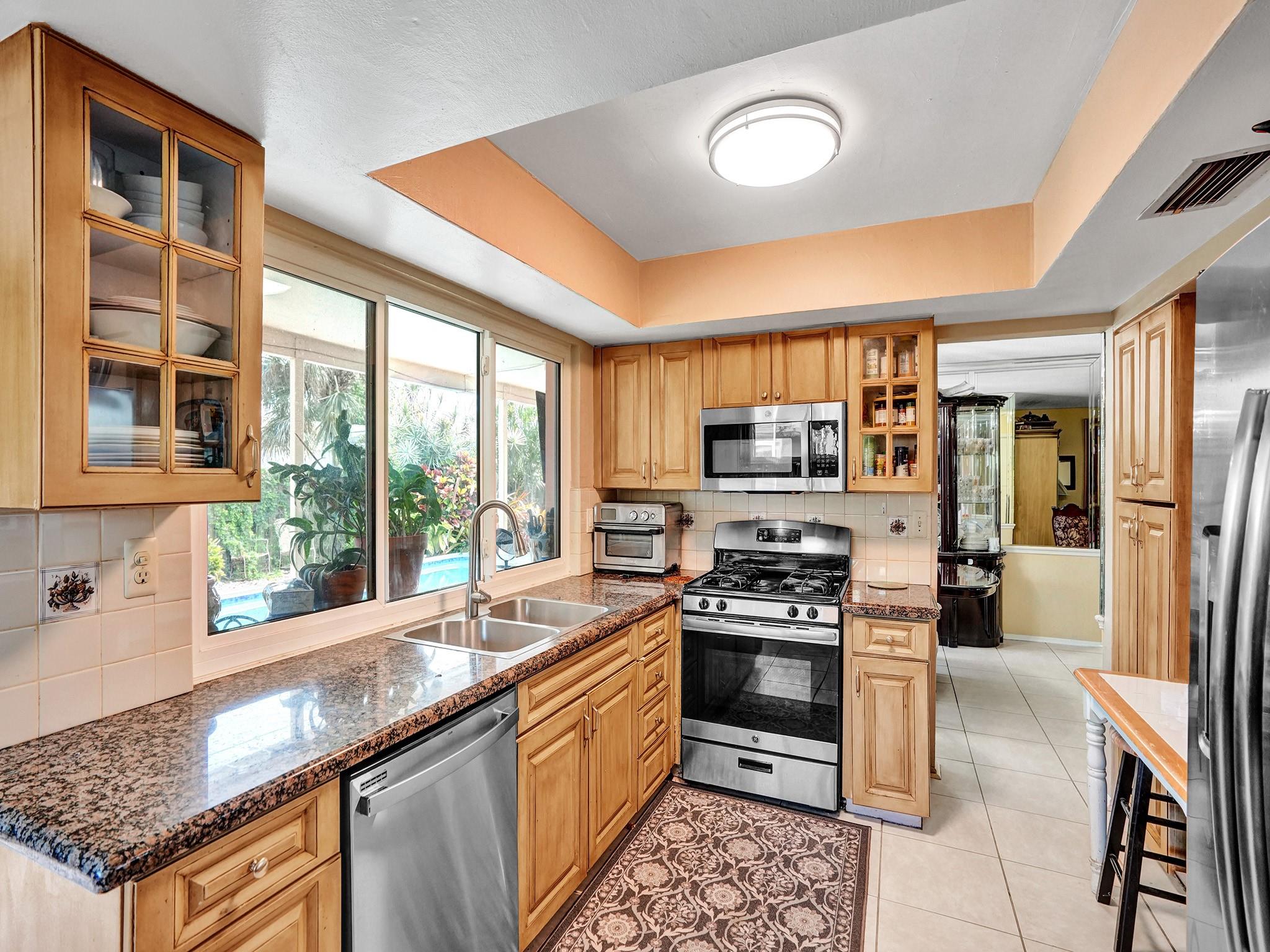 Impeccably maintained, 3-bedroom home!! An open floor plan seamlessly connects the living, dining, and modern kitchen, making it ideal for entertaining. The upgraded kitchen features granite countertops, ample storage, and stainless steel appliances. 3 spacious bedrooms, 2 bathrooms plus garage. Also includes a versatile den perfect as a home office, playroom, or guest room. Step outside to your private backyard oasis, featuring a pool and lush garden, perfect for hosting gatherings. The barrel tile roof is only 6 years old, and hurricane-impact windows are throughout. Additionally, there's a newer A/C system and water heater. This move-in ready haven exudes pride of ownership and is waiting for you to create lasting memories. Don't miss this opportunity!