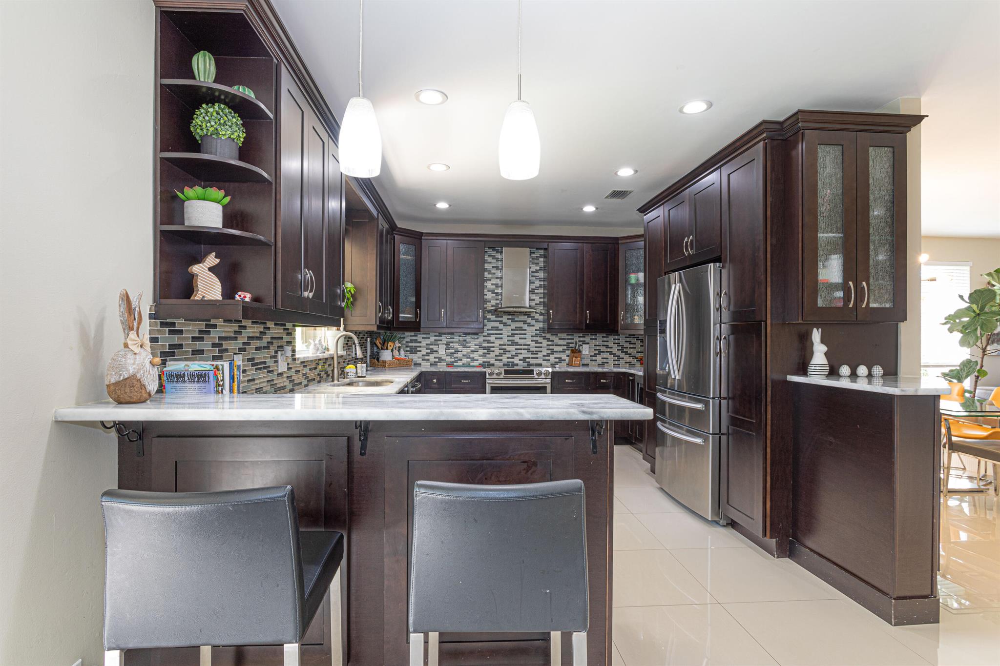 Experience luxurious living in this 4-bedroom, 3-bath oasis boasting modern amenities. Entertain effortlessly in the spacious living areas, chef's kitchen with marble countertops, eat in peninsula, formal dining area, full bath downstairs. Upstairs features luxury vinyl flooring throughout. Bedrooms have large closets and and natural light. Double doors lead to primary bedroom with seating / flex space, 2 walk in closet and remodeled bathroom. Screened patio, nice size pool with a serene ambiance. Embrace sustainability with solar power, ensuring eco-friendly living. Indulge in comfort, style, and sophistication in this epitome of upscale residential bliss. Garage features hookup for electric vehicle charger or Accy.
