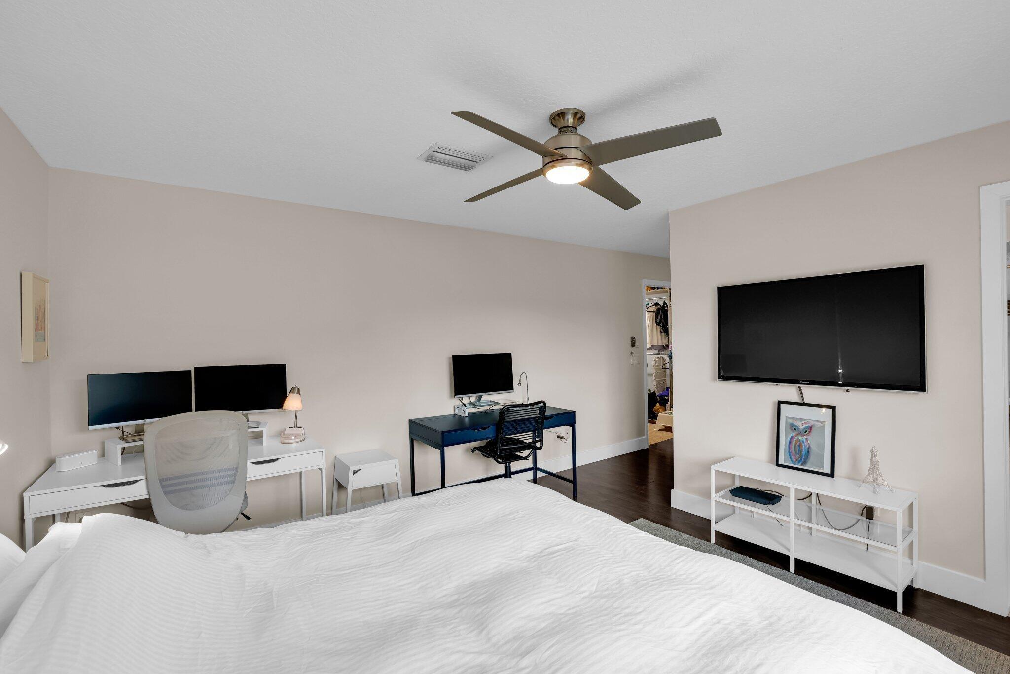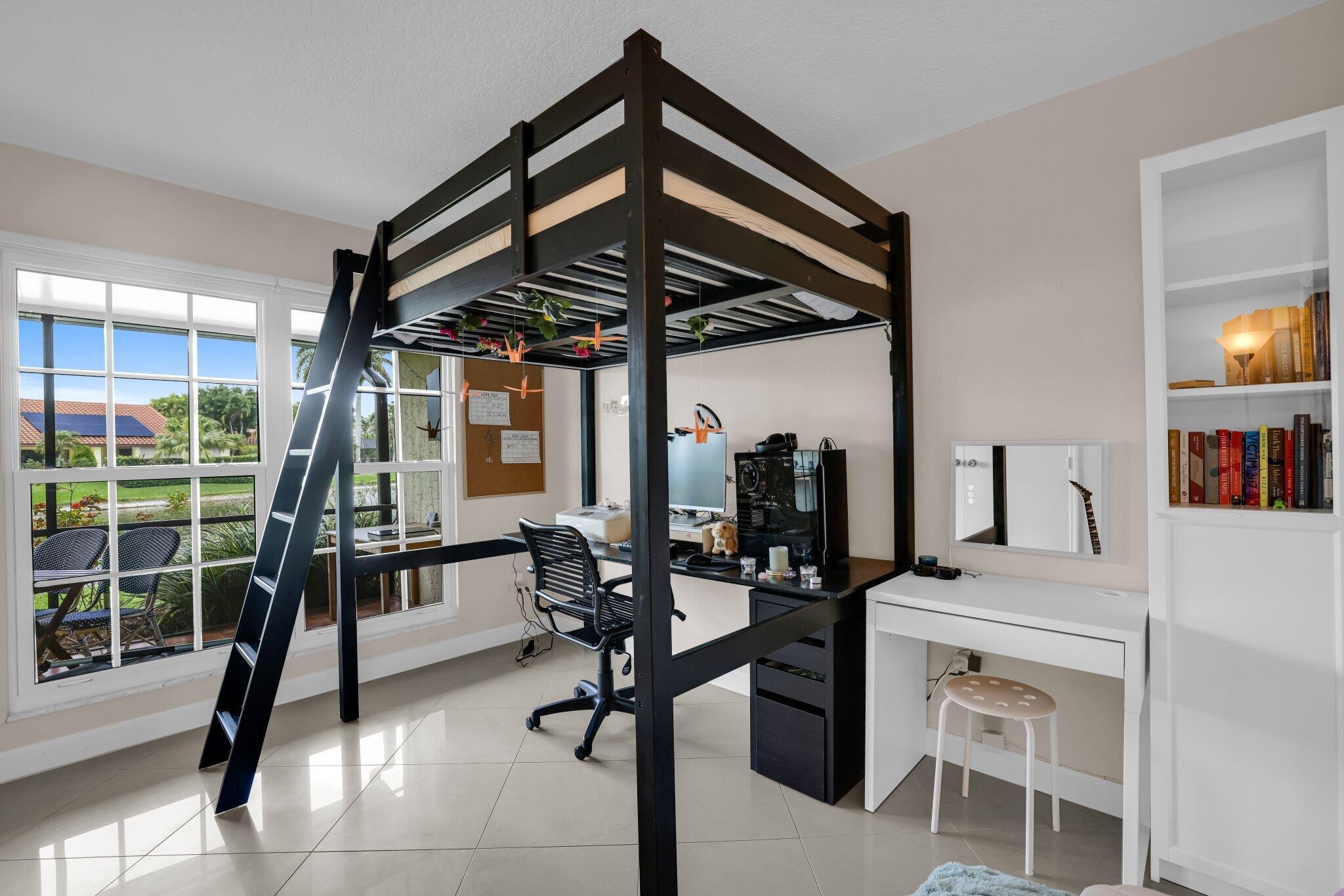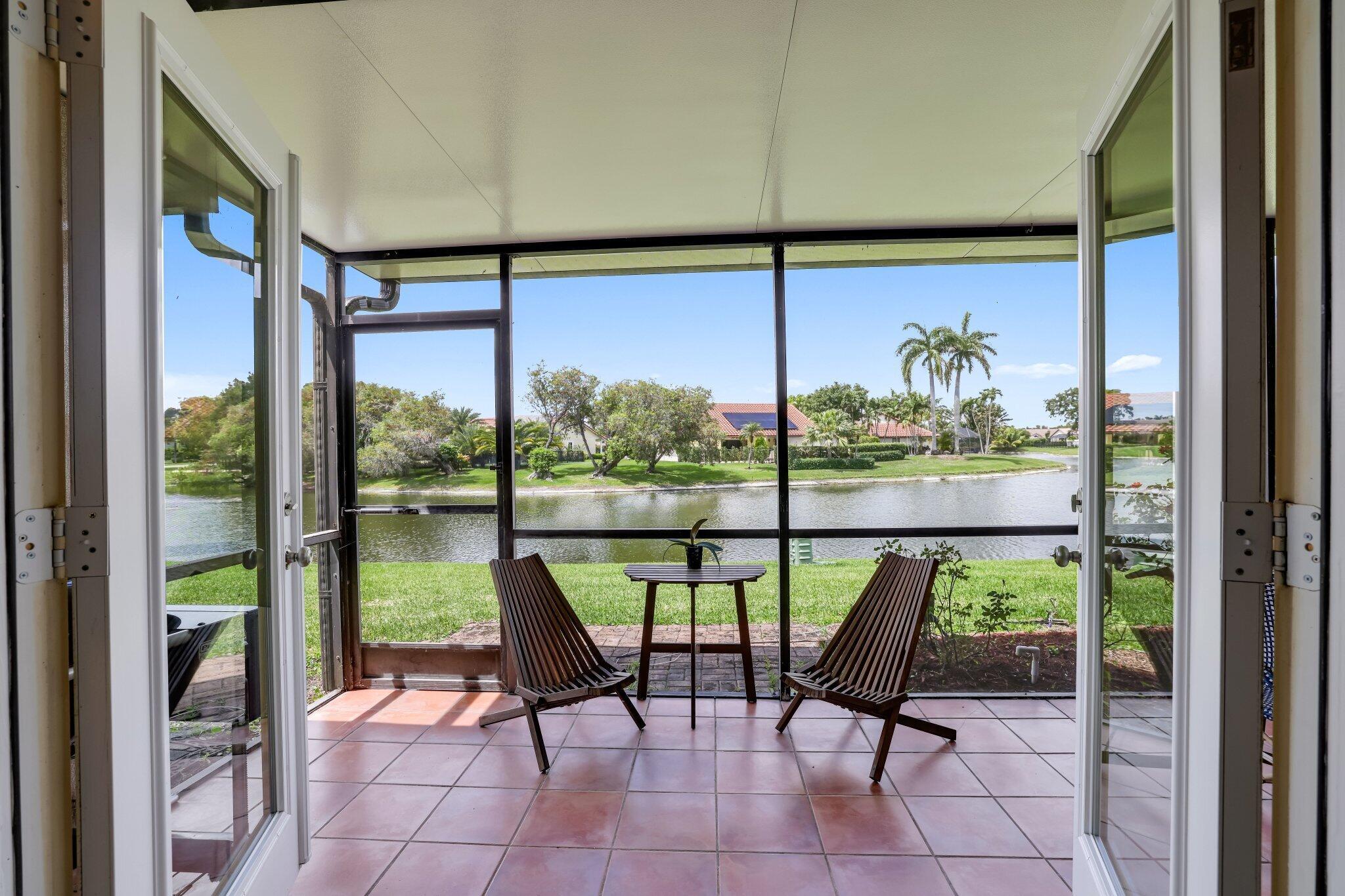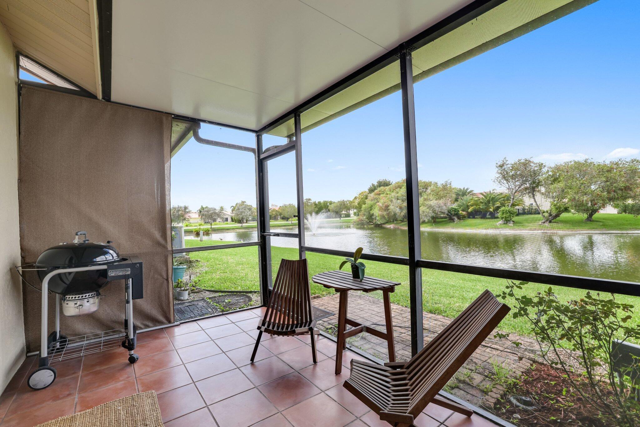 Stunning 2/2 lakefront townhome nestled in the highly sought-after Woodstream neighborhood within the Lakes of Boca Raton. Recently renovated, this home welcomes you with an abundance of natural light streaming through its windows, complemented by lofty ceilings that enhance the feeling of spaciousness. Enhanced with impact windows and a new roof installed just 4 years ago, this home ensures both security and longevity. Inside you'll find a seamless blend of porcelain and laminate flooring throughout, adding a touch of modern elegance to every room. Upstairs, the generously sized primary bedroom features a walk-in closet and an updated ensuite bathroom, providing a peaceful retreat with complete privacy.