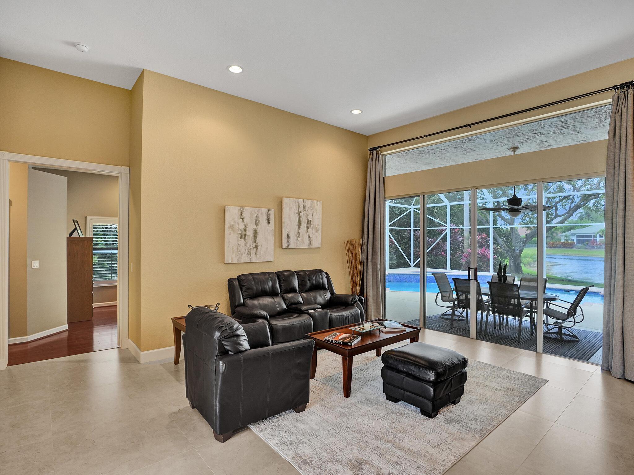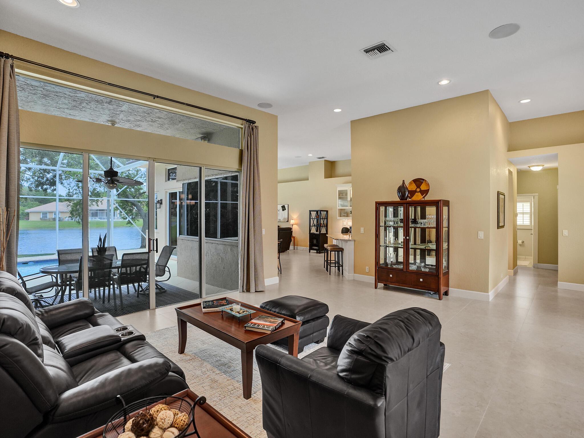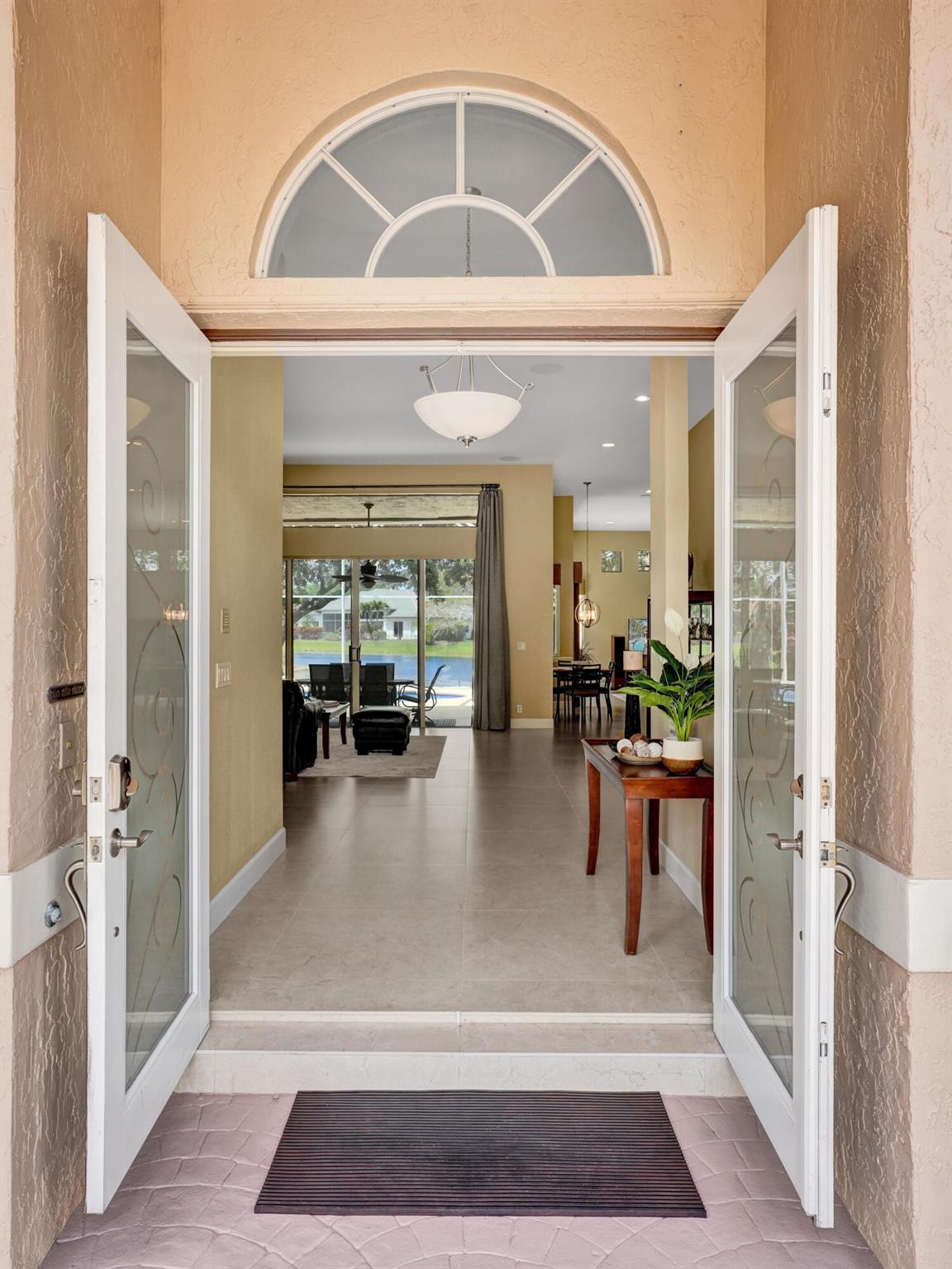 DON'T MISS this rare find of a home in the gated community of Meadow Run: 5 bed, 3 baths, NEW 2024 ROOF, on a cul-de-sac, with a heated pool AND a jacuzzi, on a lake, with a 3-car garage and meticulously cared for! WOW!! As you walk in, you are greeted by the beautiful view of the lake and greenery through the sliding glass doors, along with neutral, large 31'' tile floors throughout the main area & kitchen. The kitchen has been updated with quartzite countertops and overlooks the family room. All bathrooms have been renovated, including the primary bathroom in 2020. The current owners added a screen pool enclosure in 2017, at the same time they resurfaced the pool. Enjoy hours of peaceful relaxation, beautiful sunsets & fun on the patio with your built-in DCS grill!