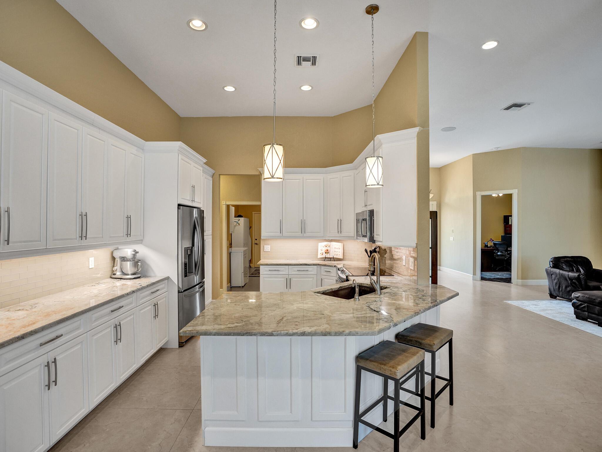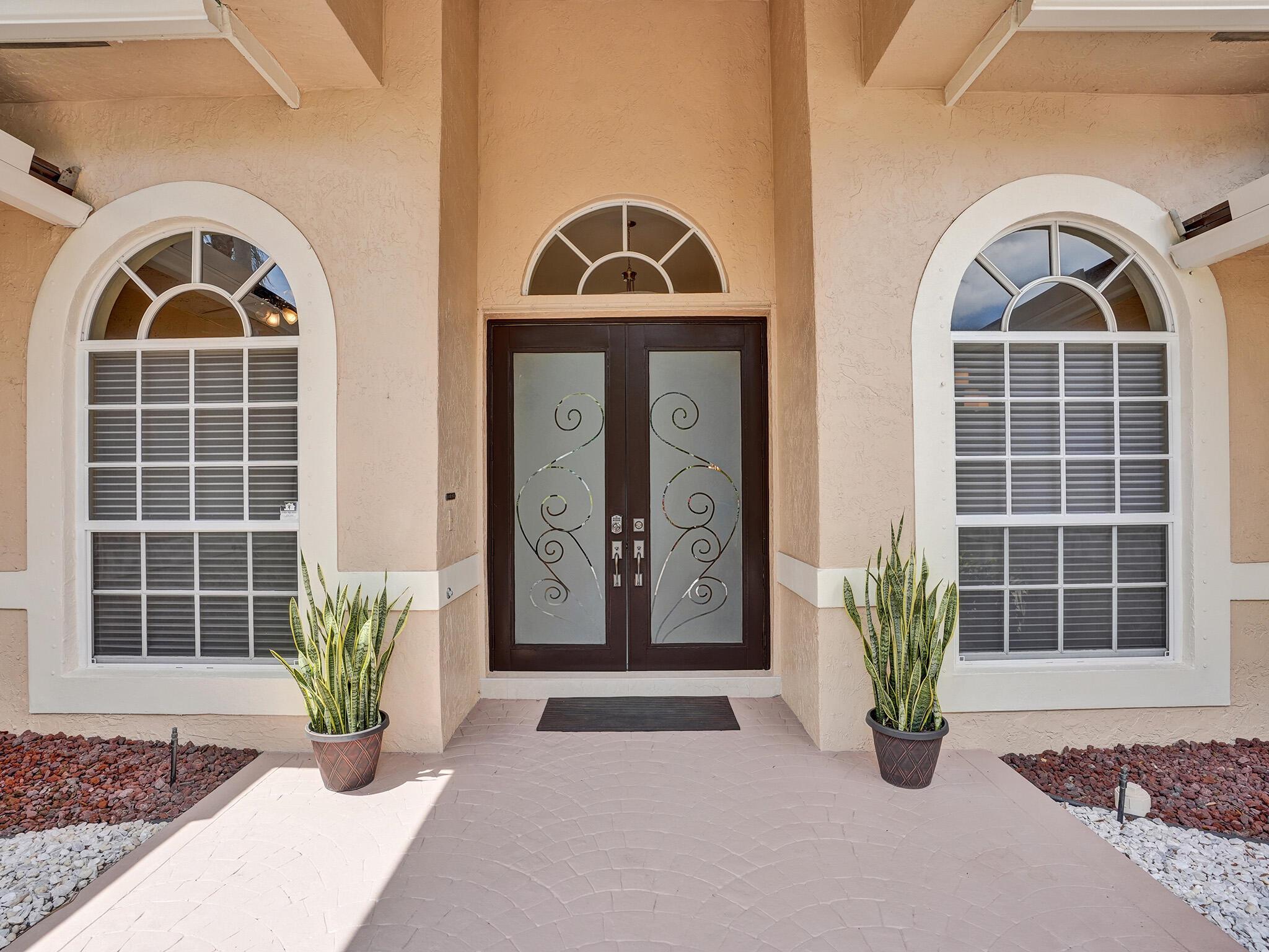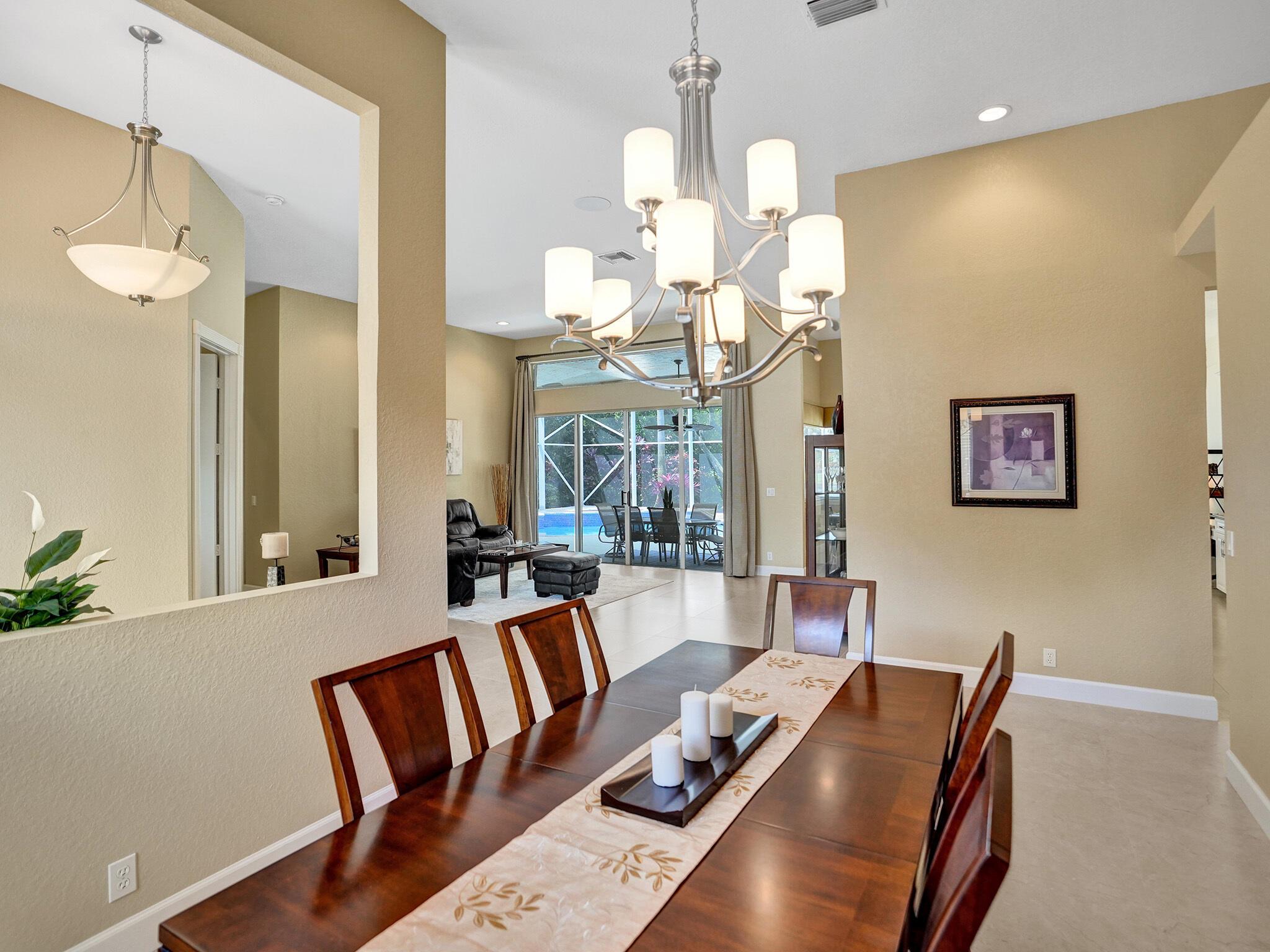 DON'T MISS this rare find of a home in the gated community of Meadow Run: 5 bed, 3 baths, NEW 2024 ROOF, on a cul-de-sac, with a heated pool AND a jacuzzi, on a lake, with a 3-car garage and meticulously cared for! WOW!! As you walk in, you are greeted by the beautiful view of the lake and greenery through the sliding glass doors, along with neutral, large 31'' tile floors throughout the main area & kitchen. The kitchen has been updated with quartzite countertops and overlooks the family room. All bathrooms have been renovated, including the primary bathroom in 2020. The current owners added a screen pool enclosure in 2017, at the same time they resurfaced the pool. Enjoy hours of peaceful relaxation, beautiful sunsets & fun on the patio with your built-in DCS grill!