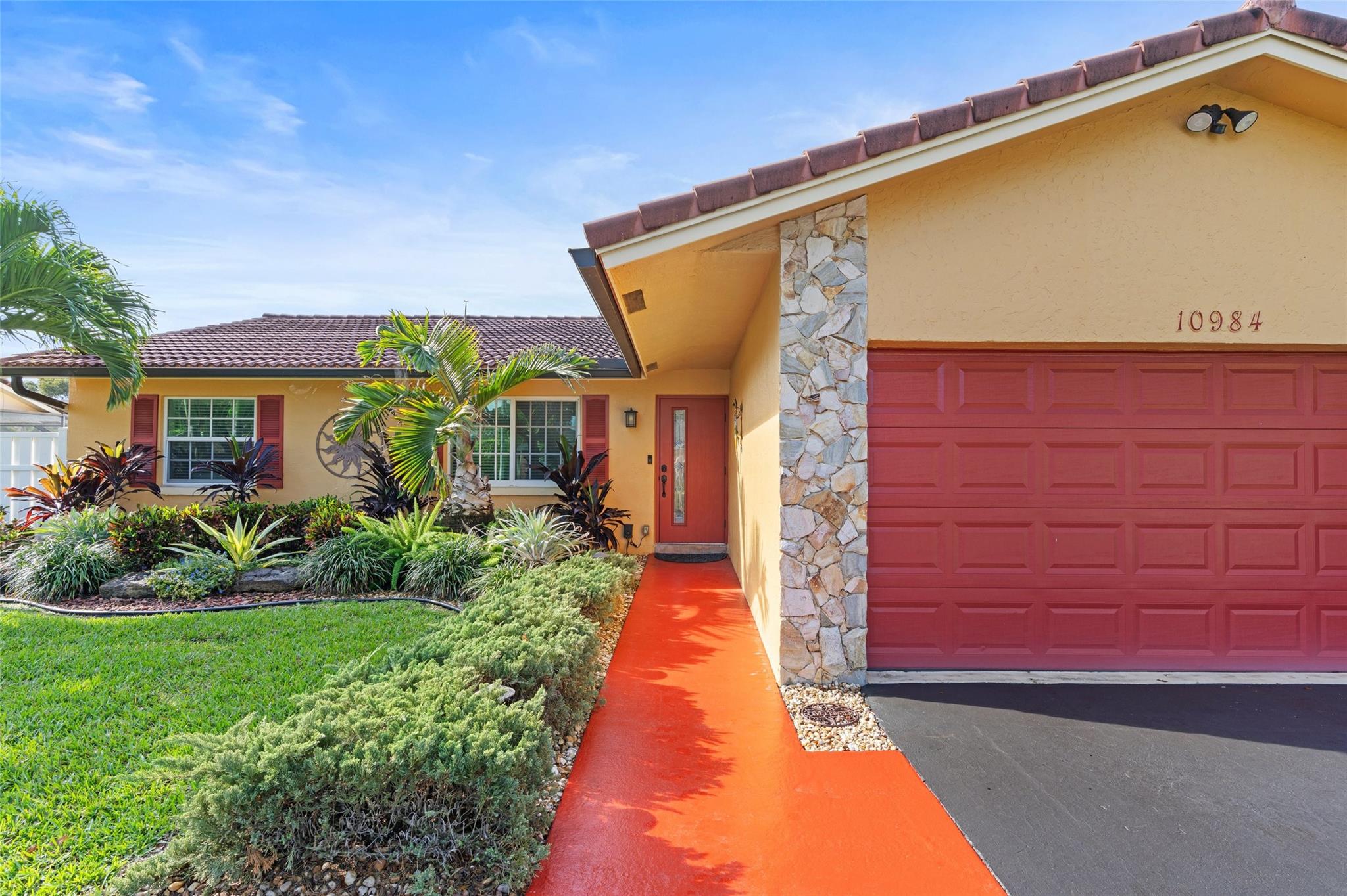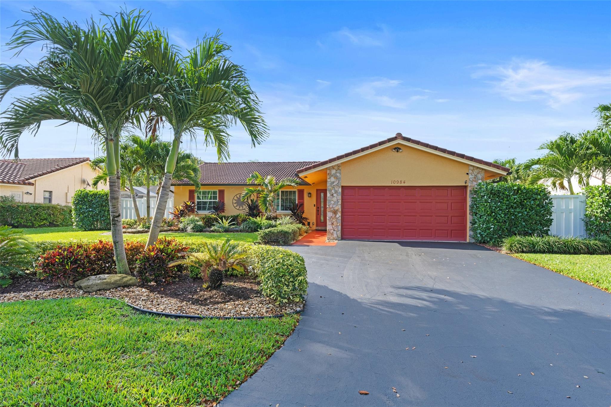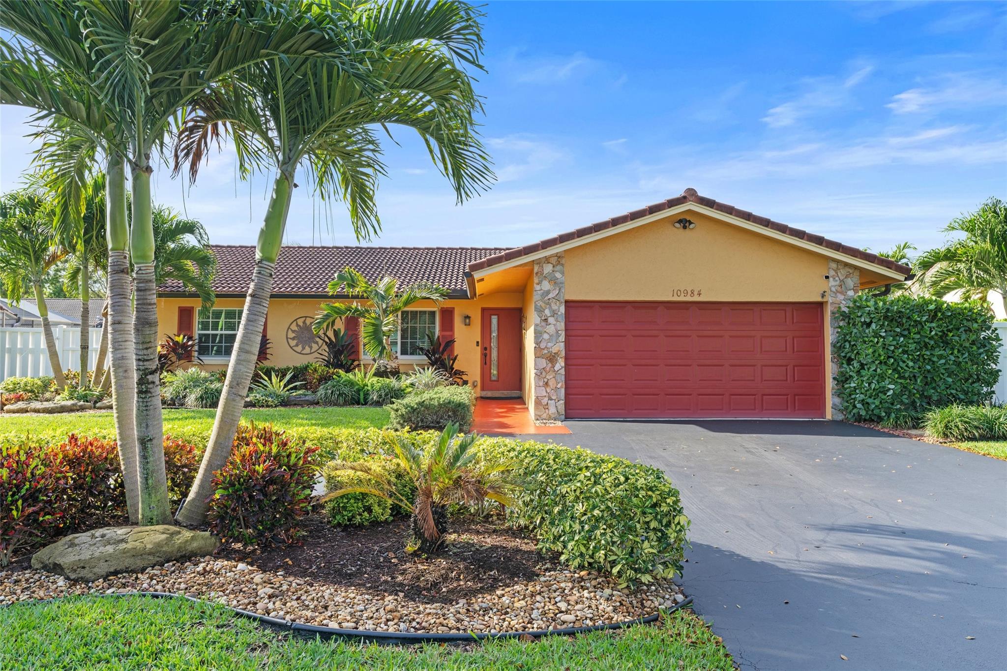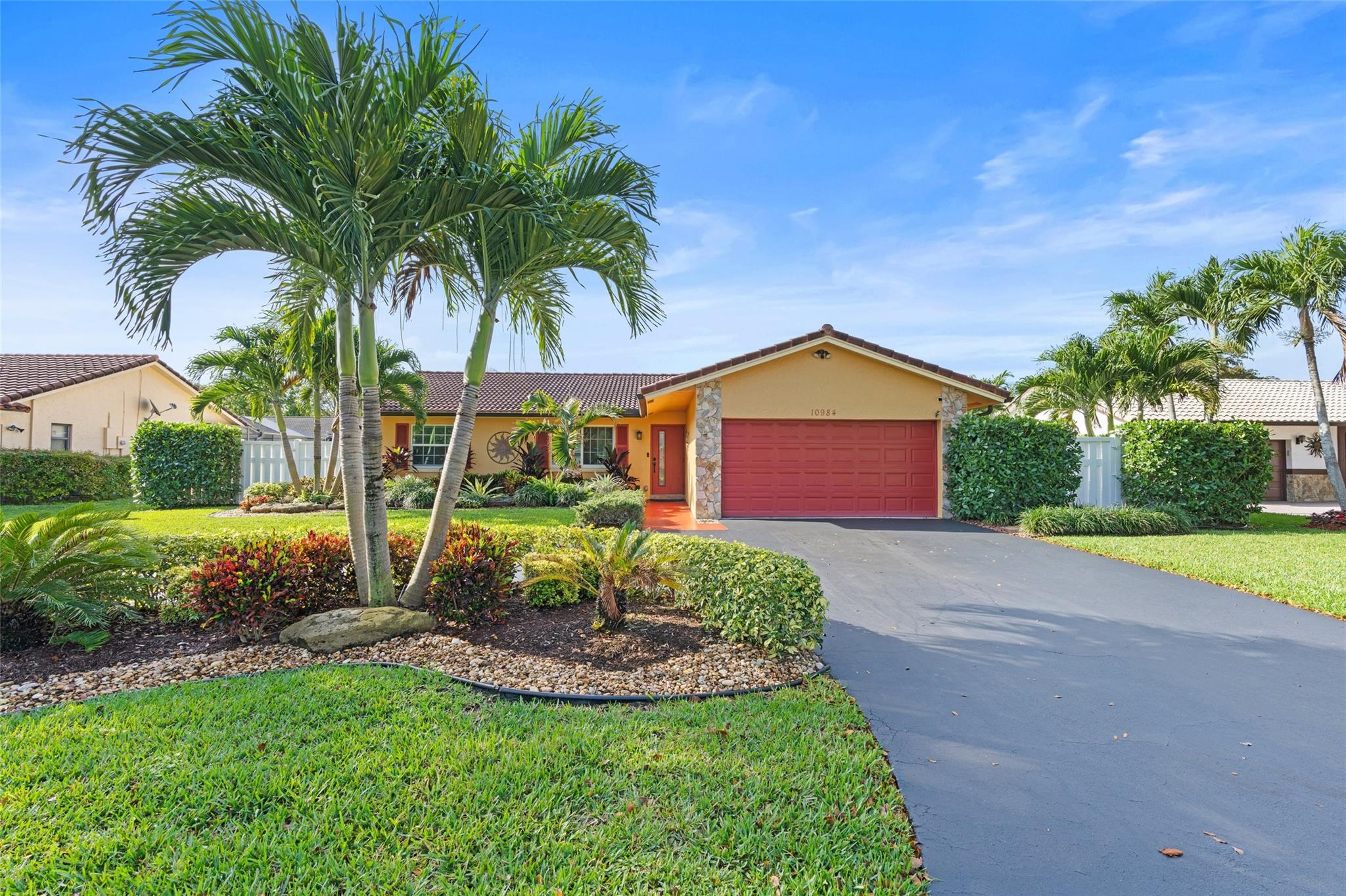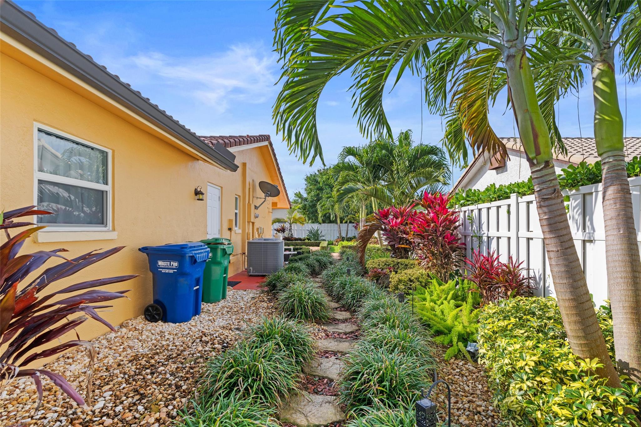 Stunning 3 bedroom single-family home with a private pool & jacuzzi. Open floor plan, vaulted ceilings, remodeled baths Outdoor oasis with lush tropical landscaping a covered patio & fully fenced yard great for entertaining. Freshly painted, new impact windows/doors, security system with cameras. AC with UV light. Circular driveway with 2 car garage. Great schools & parks close by!