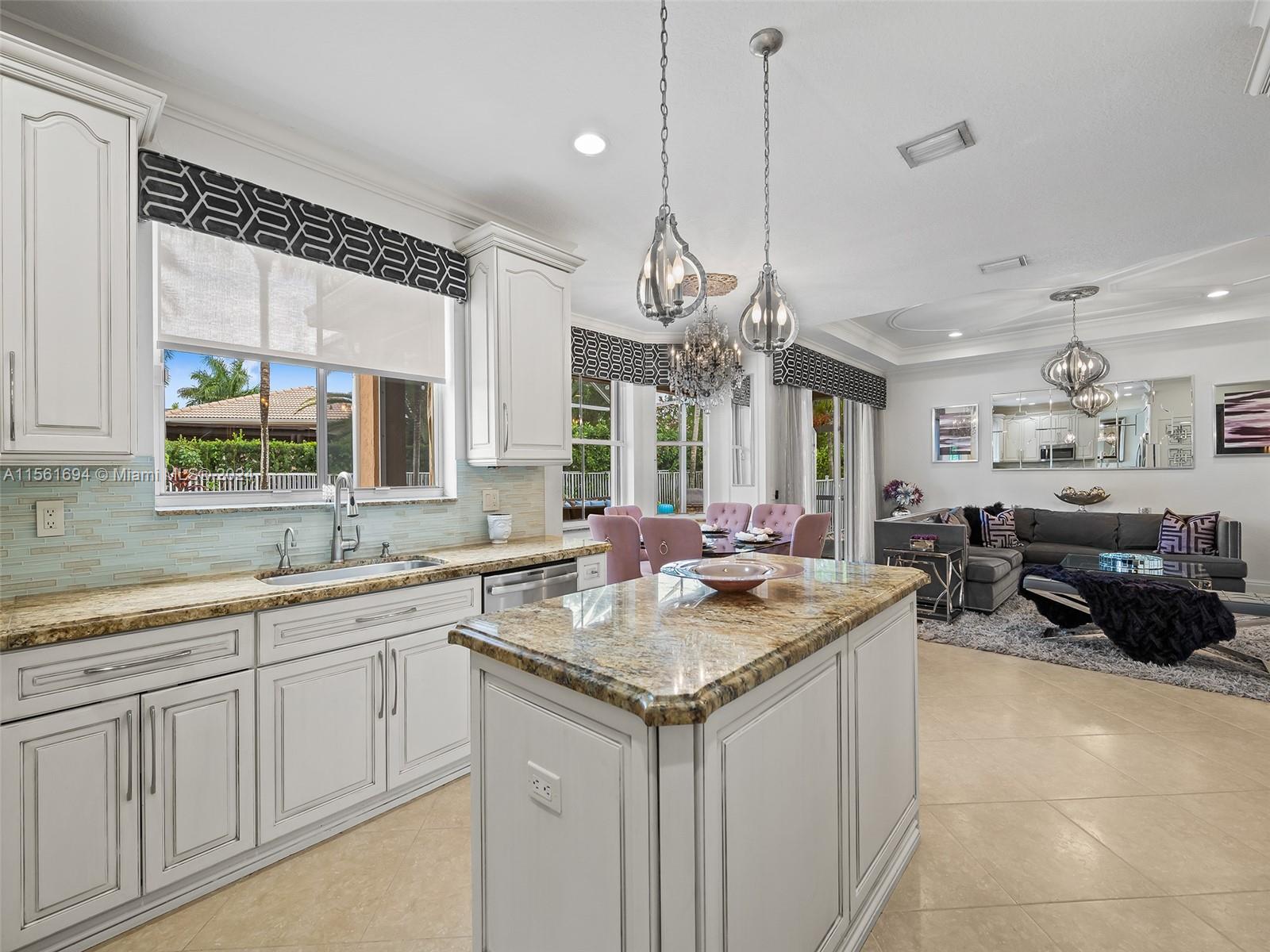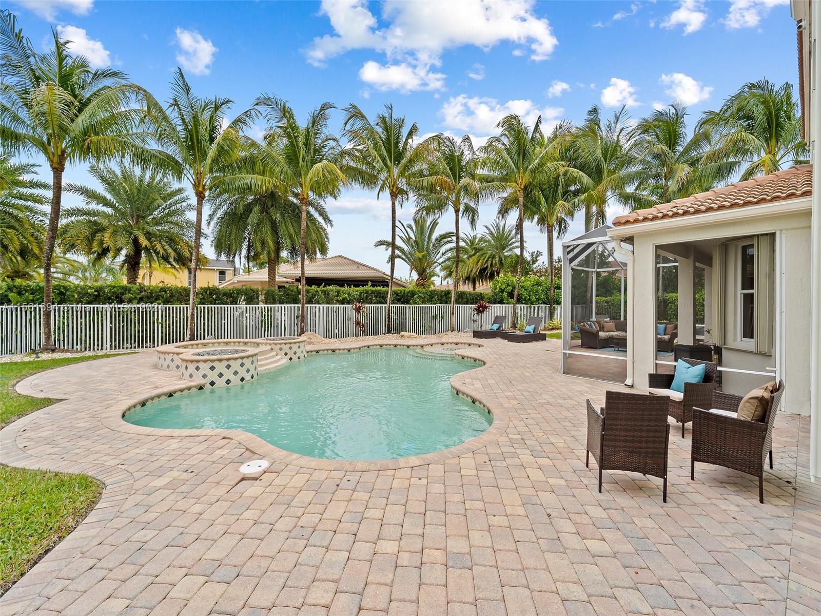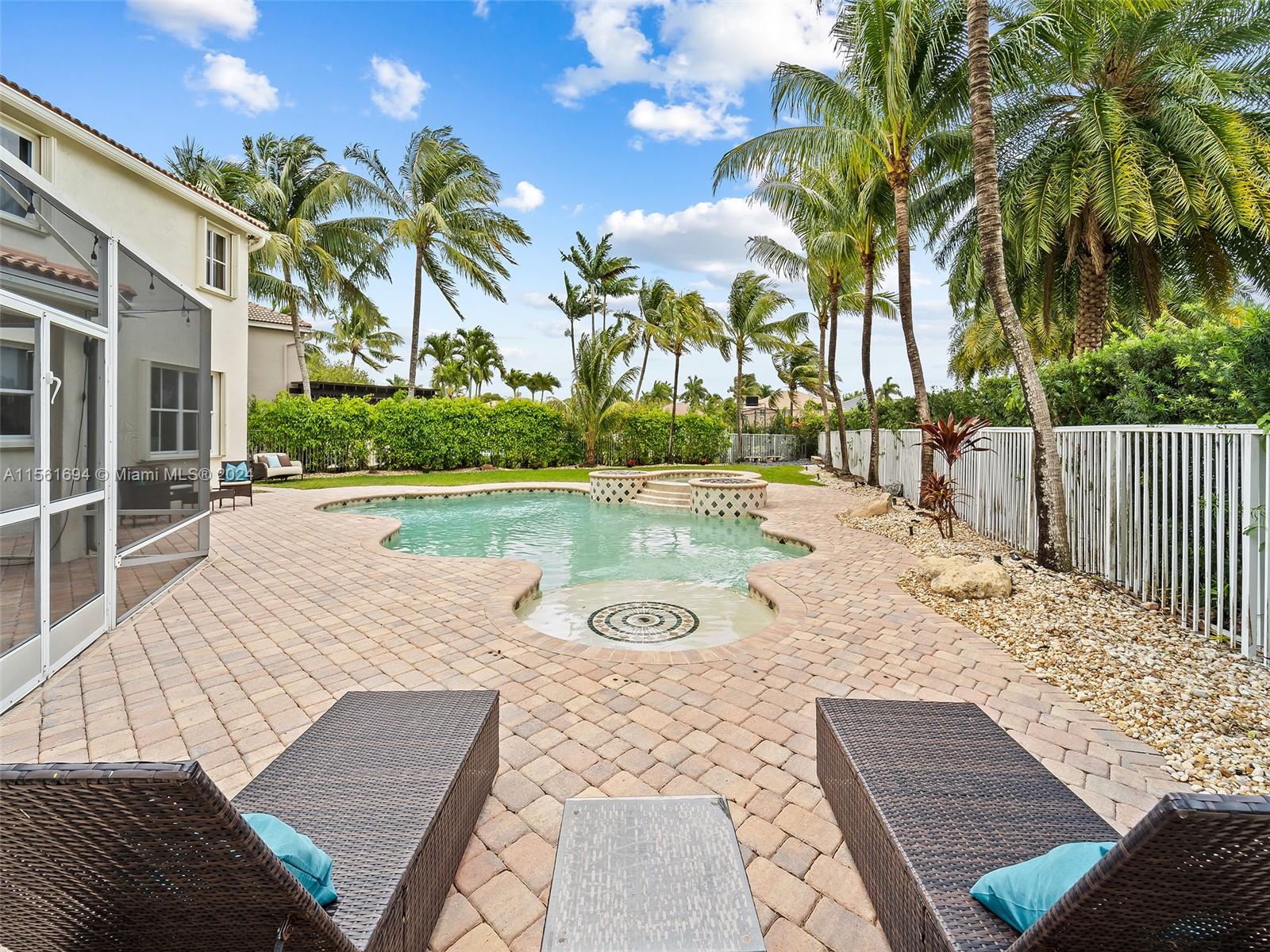 Welcome to 1221 Chenille Circle, a truly magnificent residence exuding elegance and luxury. This stunning home features 6 bedrooms, 3 bathrooms, plus an office/lounge, and two-car garage. Nestled on a gorgeous pie-shaped lot with a resort-style pool, cascading spa, lushy landscape, and lake views. This home offers a perfect blend of elegance and comfort. Features include motorized Hunter Douglas blinds on the first floor, handcrafted drapery, 2-newer AC's (2021), HIK cameras, custom built-in dry bar, and stunning chandeliers that illuminate each room. The freshly painted exterior enhances the curb appeal, making a striking first impression. Experience the epitome of refined living in this exquisite Weston abode. Located in the highly desirable community The Grove III at Savanna.