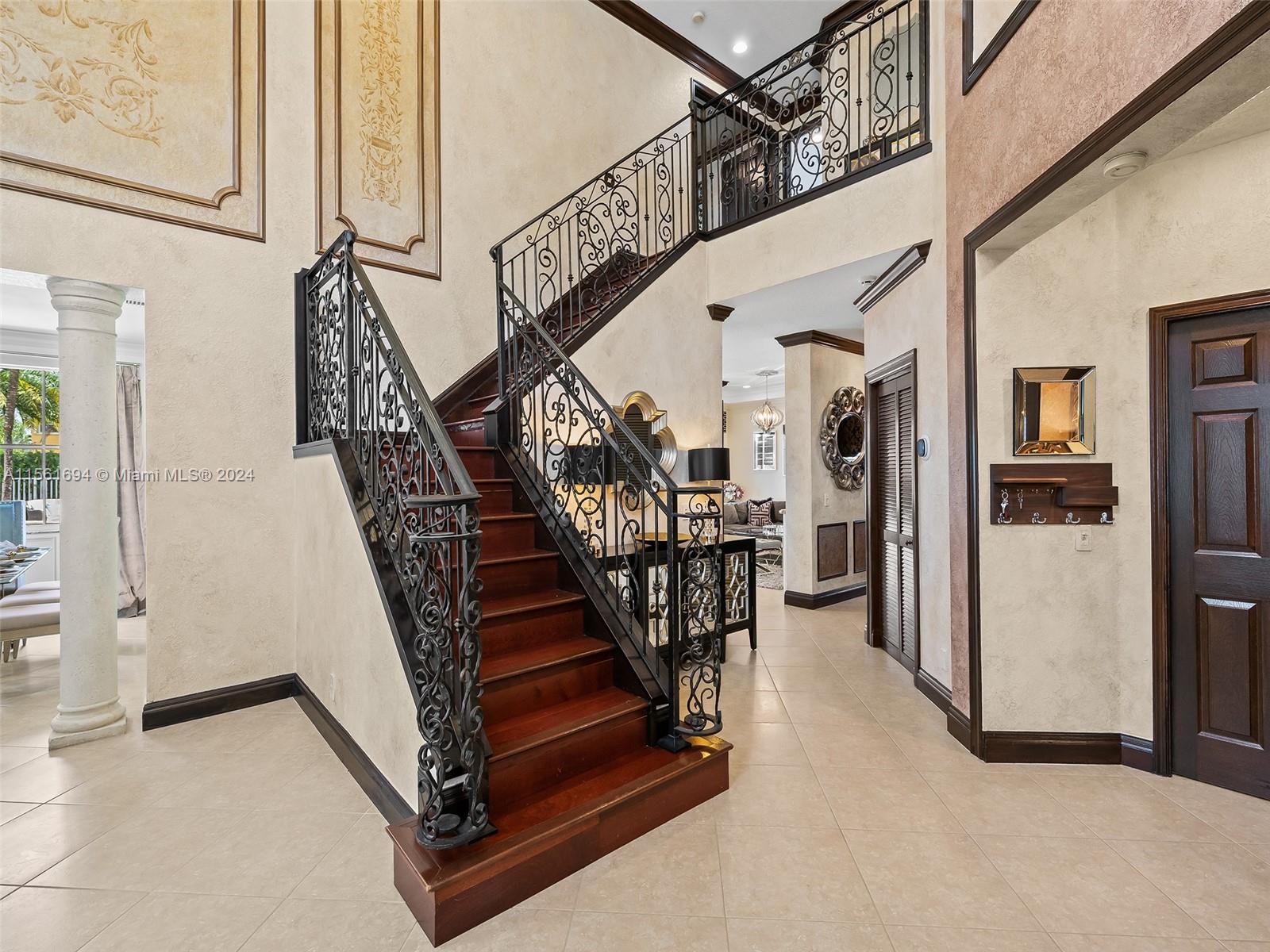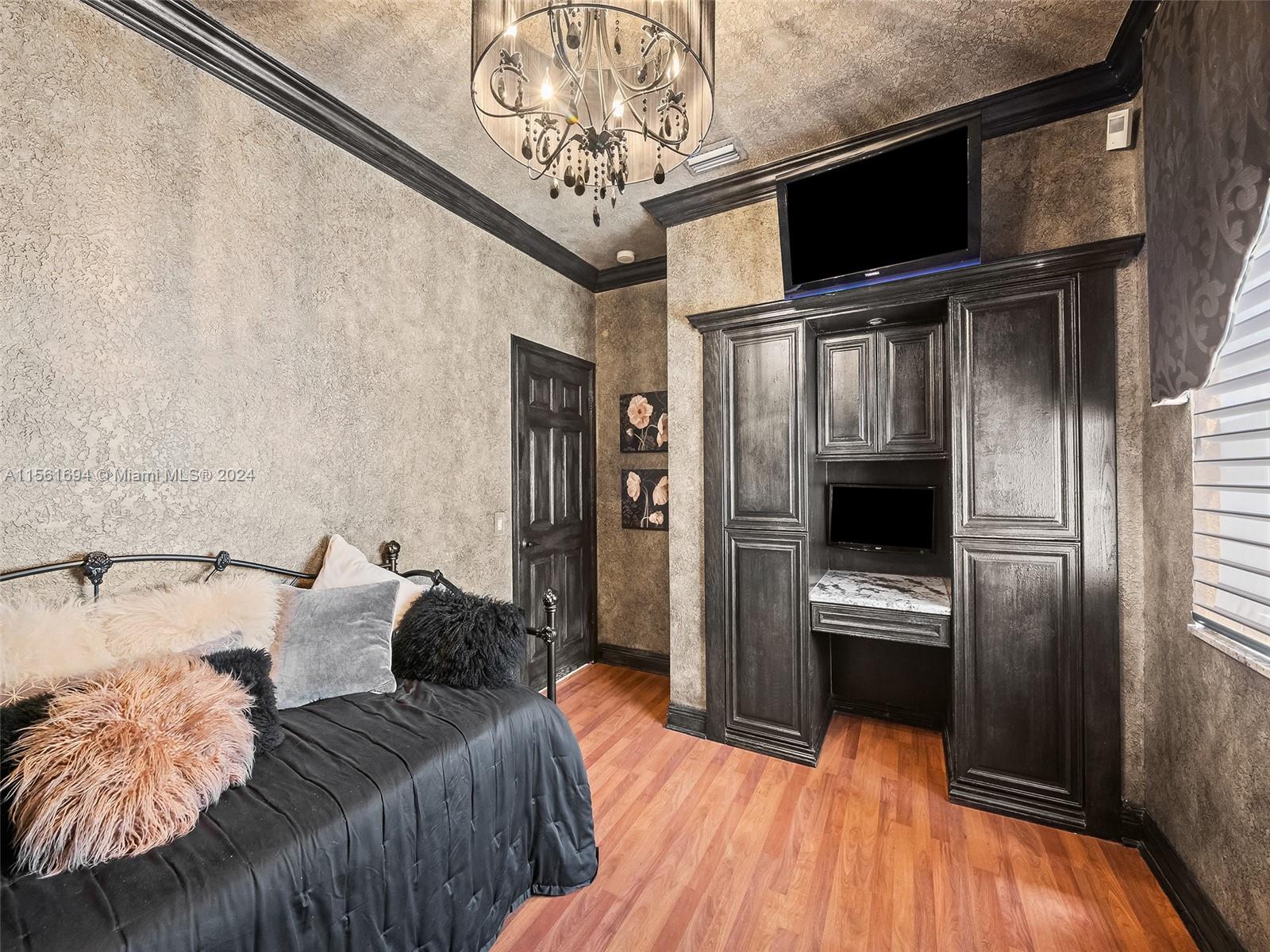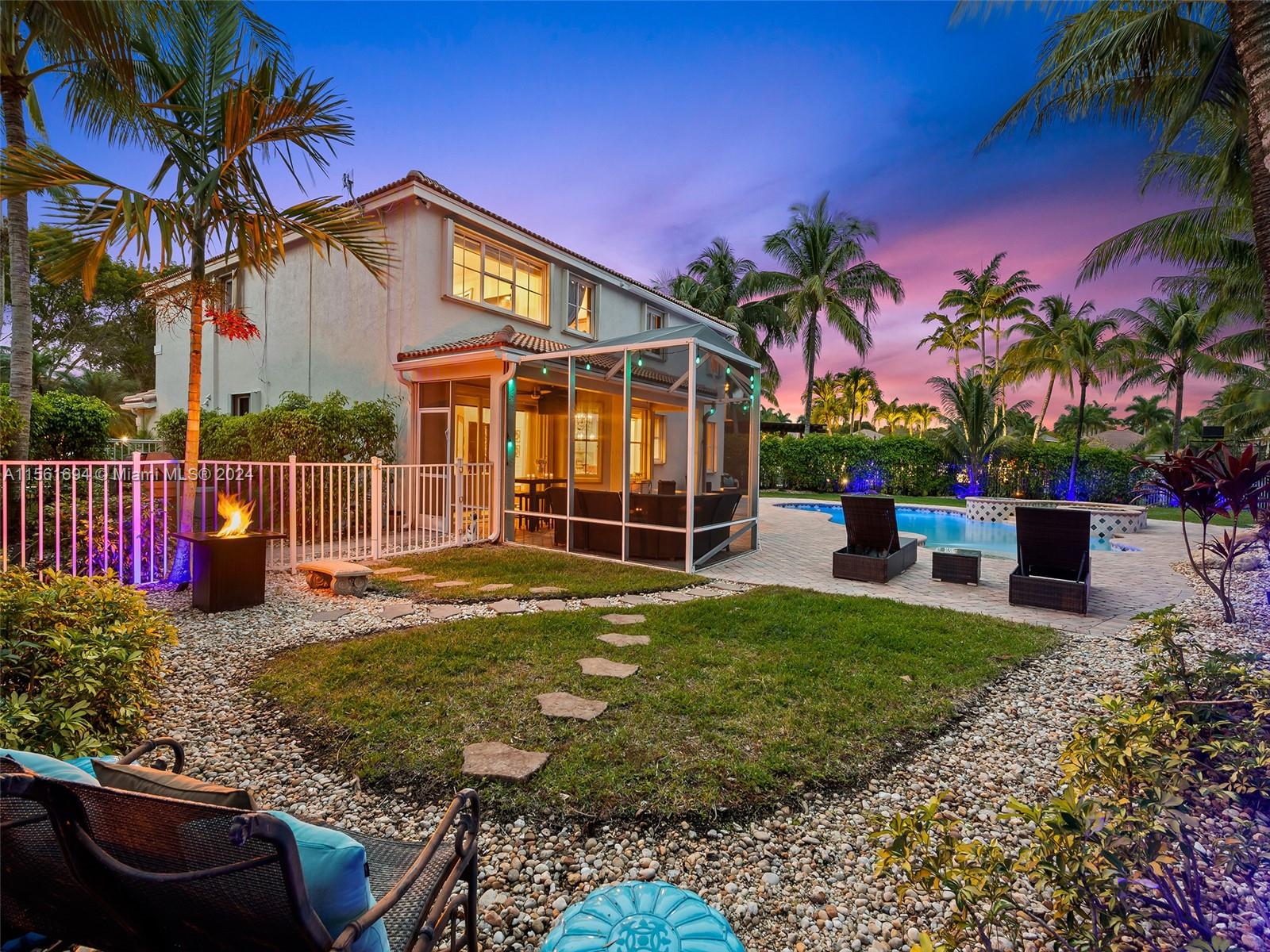 Welcome to 1221 Chenille Circle, a truly magnificent residence exuding elegance and luxury. This stunning home features 6 bedrooms, 3 bathrooms, plus an office/lounge, and two-car garage. Nestled on a gorgeous pie-shaped lot with a resort-style pool, cascading spa, lushy landscape, and lake views. This home offers a perfect blend of elegance and comfort. Features include motorized Hunter Douglas blinds on the first floor, handcrafted drapery, 2-newer AC's (2021), HIK cameras, custom built-in dry bar, and stunning chandeliers that illuminate each room. The freshly painted exterior enhances the curb appeal, making a striking first impression. Experience the epitome of refined living in this exquisite Weston abode. Located in the highly desirable community The Grove III at Savanna.