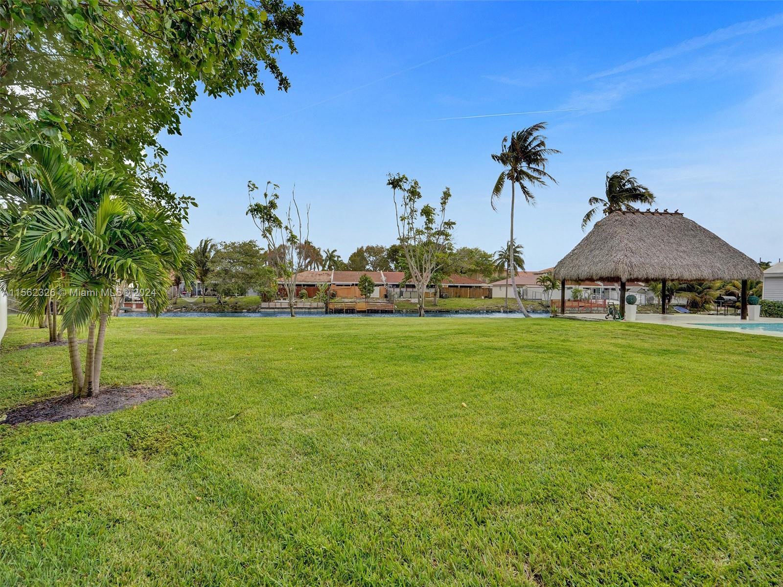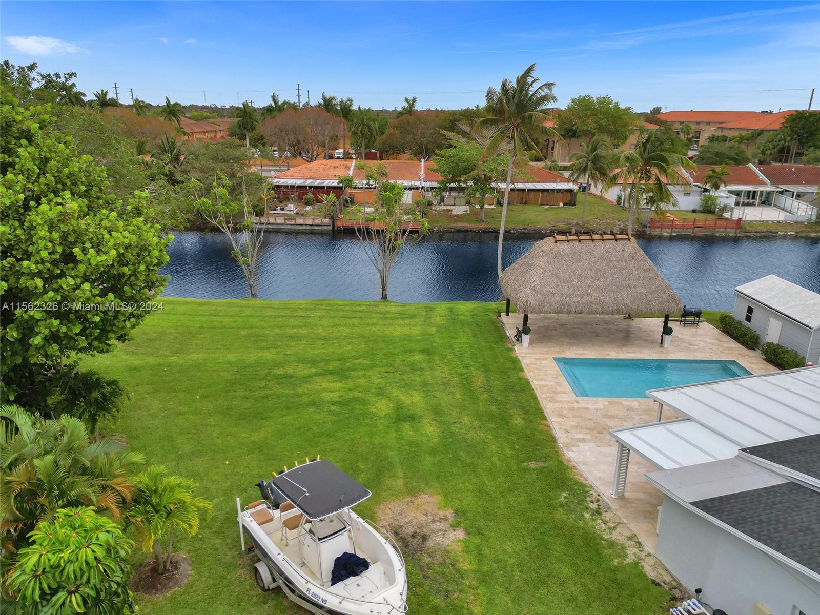 This exceptional, fully renovated home is situated in the sought-after Palm Springs North area. Nestled on a spacious 0.39-acre lot, the largest lot currently on the market, on a wide canal that connects the coveted lakes of PSN. A galvanized white fence opens on both sides, accommodating large vehicles and boats. A new Salt Water Pool from 2022, surrounded by stone floorings. New Roof installed in 2021. Impact Front and Back doors for added security, fully remodeled kitchen and bathrooms, newly insulated aluminum terrace with recessed lighting. Extra Large Tiki Hut, perfect for entertainment, overlooking the water. A 20 ft by 12 ft Game Room shed, featuring a garage door, insulation, epoxy flooring, mini-split AC, and internal power supply. Do not wait!