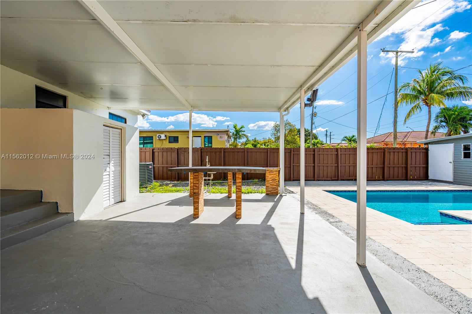 Welcome to your upgraded oasis! This charming 3-bedroom, 1-bathroom house boasts a myriad of modern amenities and thoughtful upgrades. Step inside to discover a newly installed roof and a sparkling 2020 pool, creating a refreshing retreat for sunny days. Feel secure with impact windows and enjoy the convenience of storage shed and laundry rooms. Parking is a breeze with ample space for multiple vehicles, including RVs and boats. Entertain effortlessly in the spacious outdoor covered area, perfect for gatherings with family and friends. Stay comfortable year-round with central A/C and additional split units in each bedroom. With a freshly painted exterior adding to its curb appeal, this home is ready to welcome you to a lifestyle of comfort and convenience.