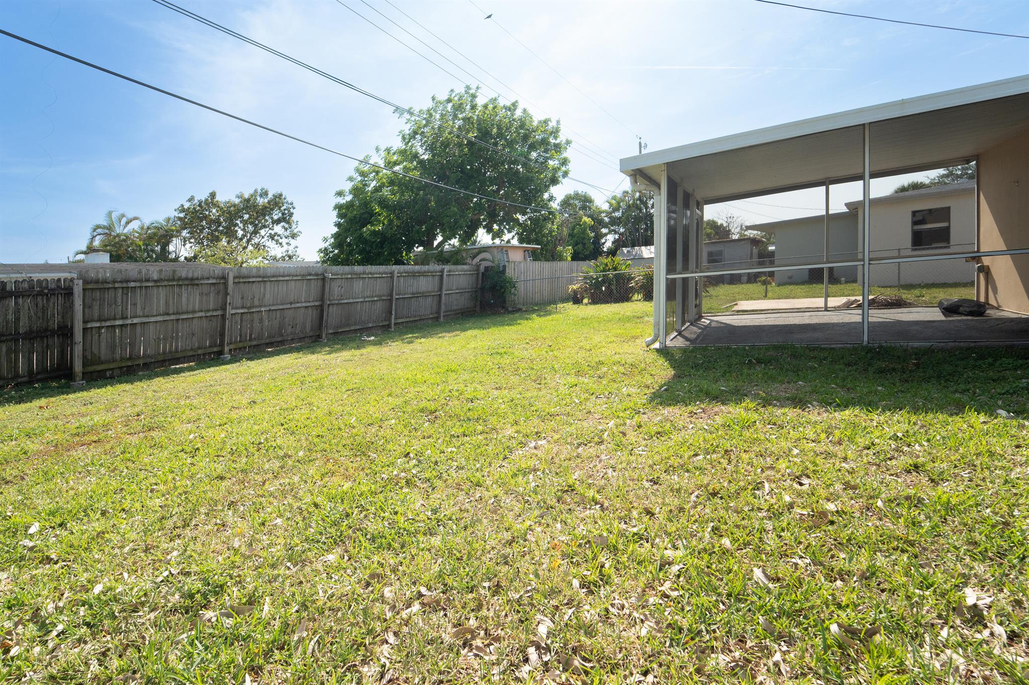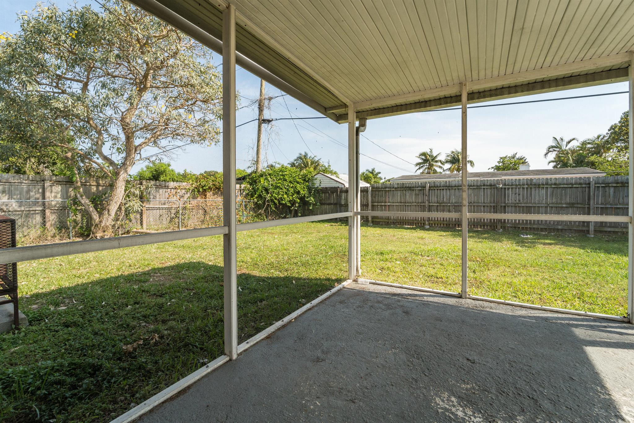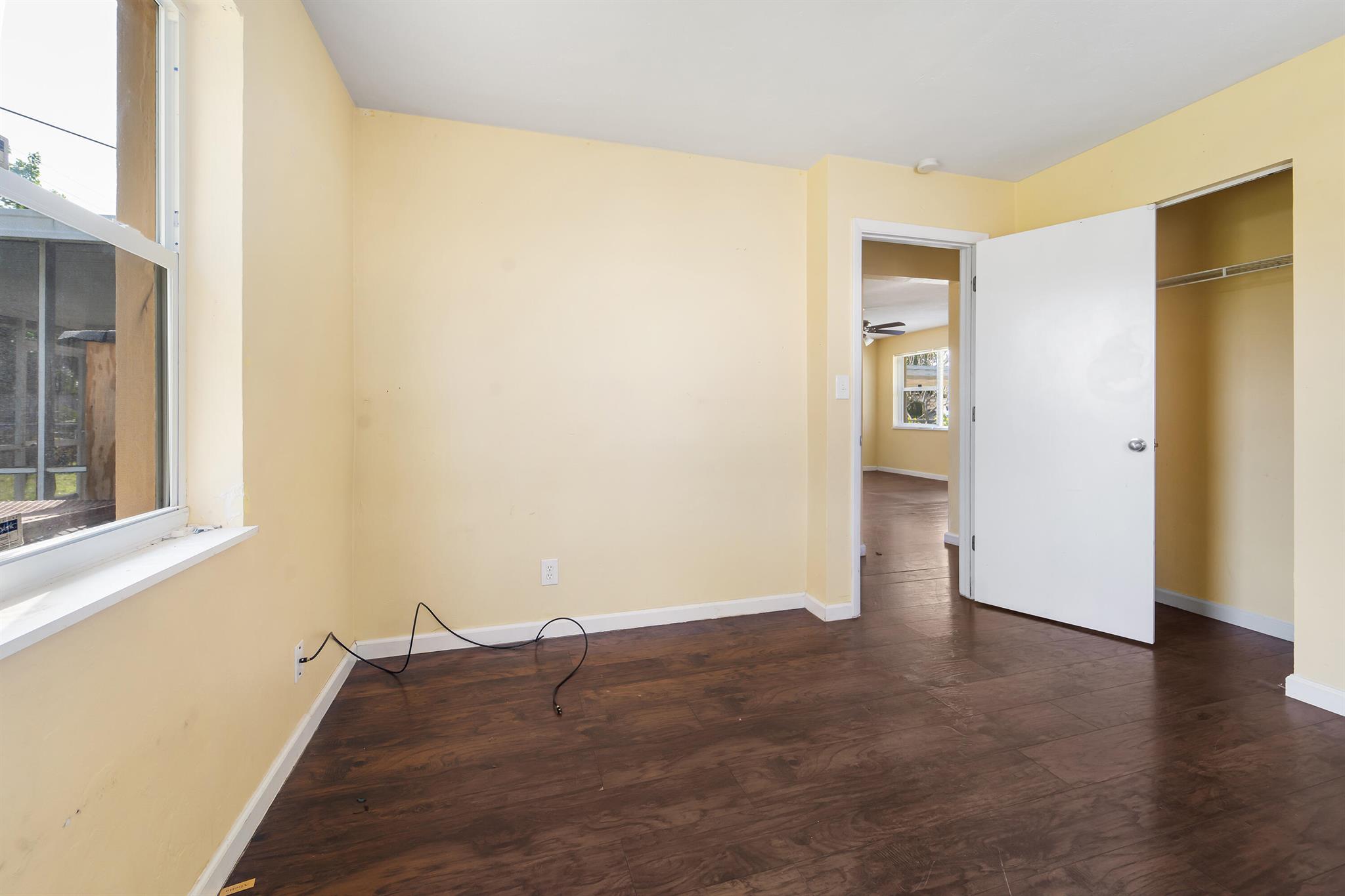 Welcome to this charming 2-bedroom, 1-bathroom home nestled on a quiet street awaiting a new owner. As you step inside, you are greeted by a spacious living room adorned with laminate flooring, creating a warm and inviting atmosphere. The focal point of the room is a real wood-burning fireplace, perfect for those chilly evenings. The home has an open floor plan with an adjacent kitchen/dining concept. Stacked 2 bedroom floor plan with a shared bathroom. Venture outside and discover a lovely covered screened-in patio, ideal for al fresco dining. Beyond the patio lies a spacious backyard, offering plenty of room for outdoor activities and the potential to add your own personal touch, whether it be a lush garden oasis or your very own private pool retreat. With no carpet throughout the home,
