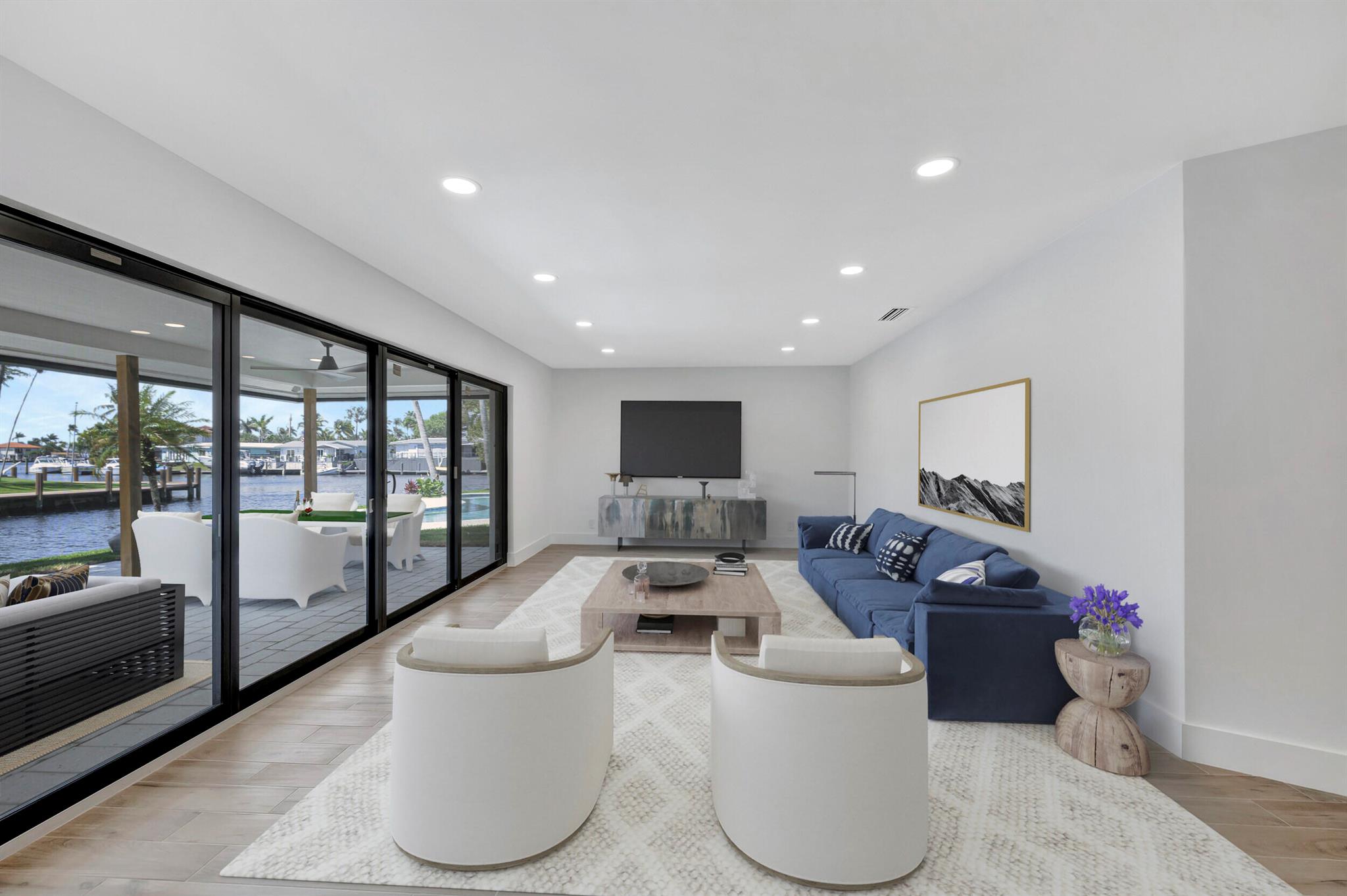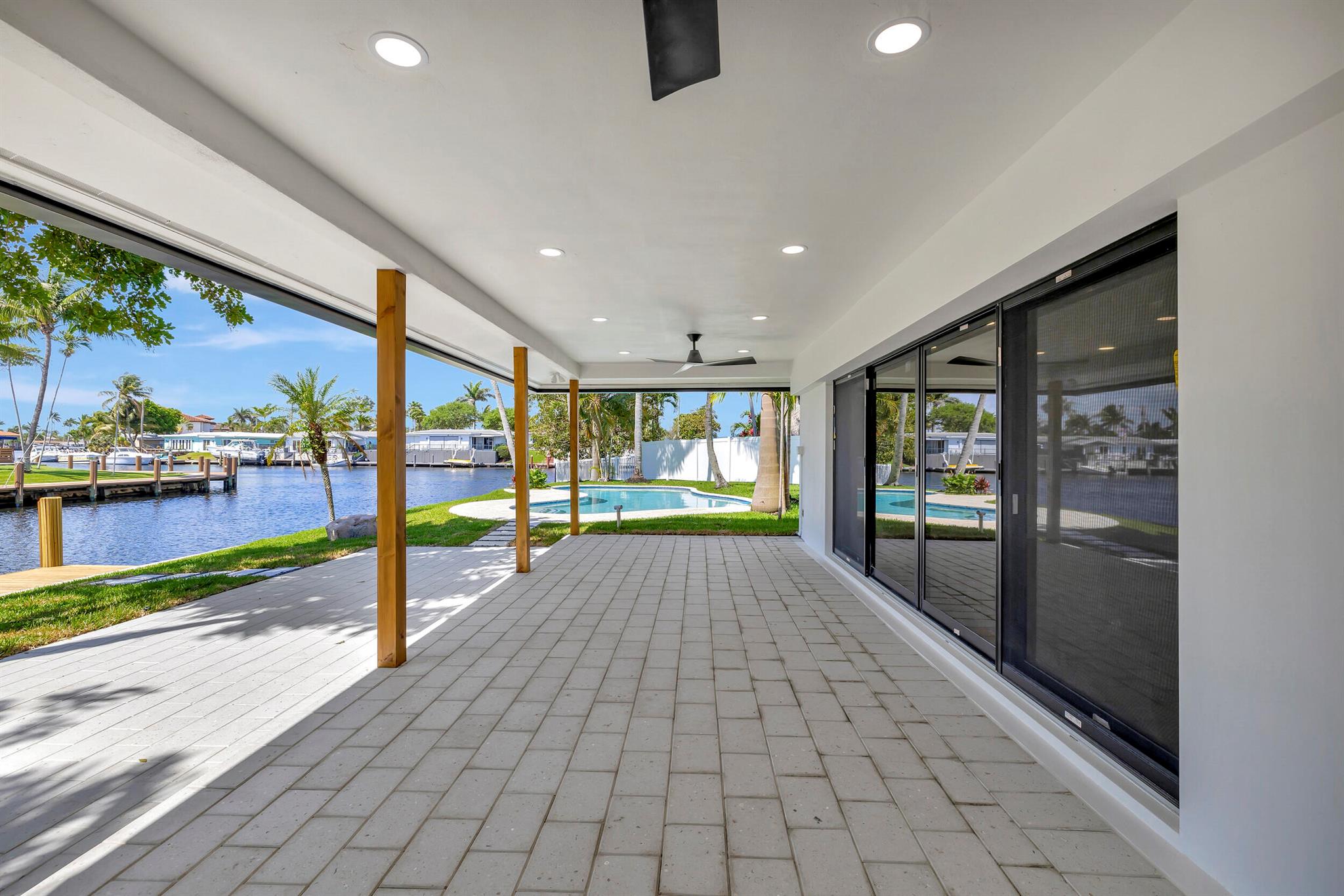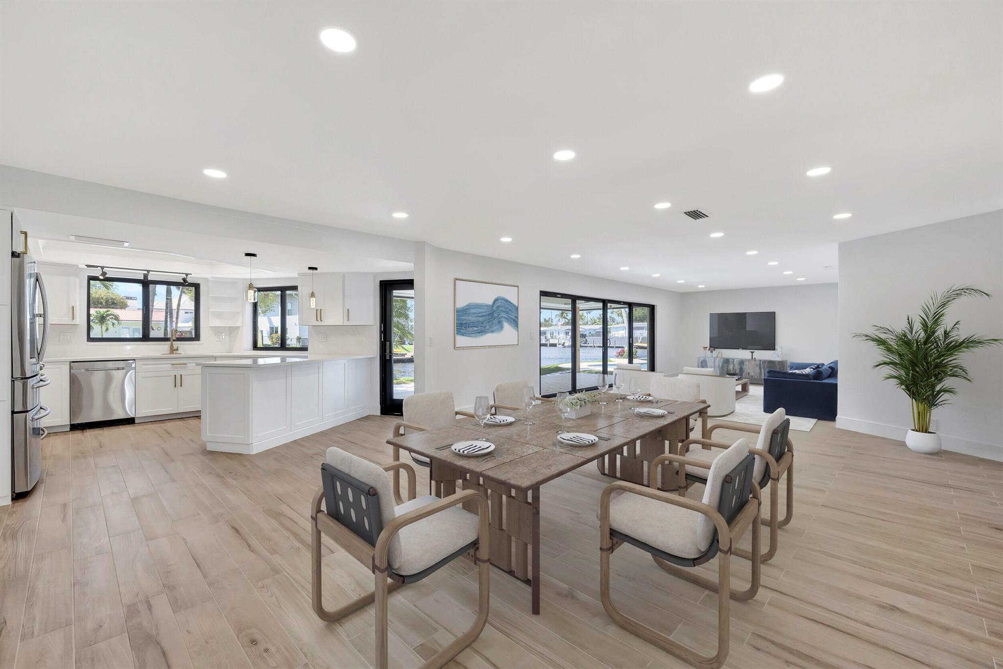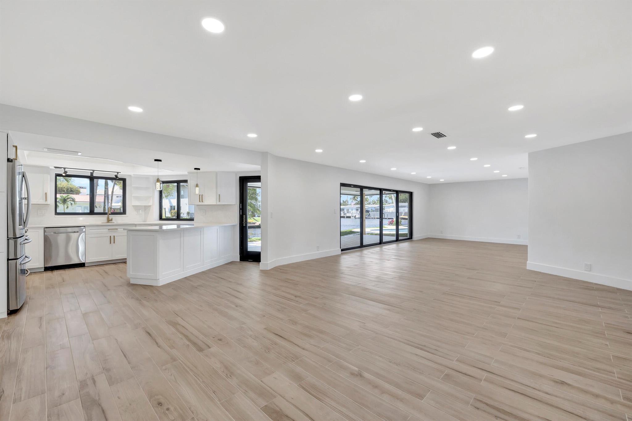 Welcome to your waterfront oasis located in a quiet cul-de-sac, in Pompano Beach, Florida! This exquisitely renovated light and bright three-bedroom, two-bath residence features 150 feet of water frontage, Brand New impact windows & doors throughout, beautifully remodeled bathrooms and kitchen, and a resort-style freeform heated pool with expansive water views. Experience effortless indoor-outdoor living with an open floor plan that seamlessly extends from the family room to the large covered patio. Perfectly situated on an oversized waterfront lot close to beaches, shopping, and nightlife, this property offers ocean-accessible navigable waters under 1 fixed bridge with 13-14 feet clearance at low tide and 10-11 feet at high tide.