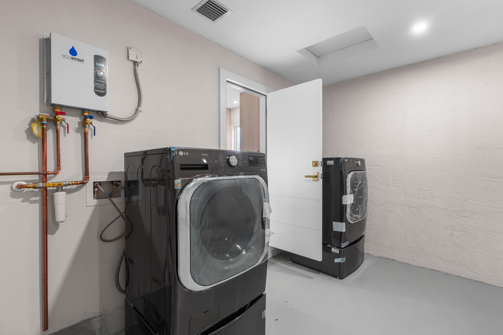 Lauderdale West 2/2 w/garage. 55+ Community. Exceptional property, completely redone in 2024, top to bottom. Hi end designer home. IT'S ALL NEW and done right using top materials. Truly a one-of-a-kind property. Perfect for the most discriminating buyer. Just under 1700sq ft., Impact doors, windows, insulated garage door etc. New tile roof 2017, NEW AC including duct work & attic insulation, NEW tank-less water heater, NEW electric panel... Assoc. Fee Incl: Fiber Optic HDTV & Internet, Free community bus at your door, Lawn Service, Exterior painting, Huge Clubhouse, 2 Pools Tennis Courts, Pool Tables, Ping Pong, Card rooms, Professional Shows, Fitness Center & more!
