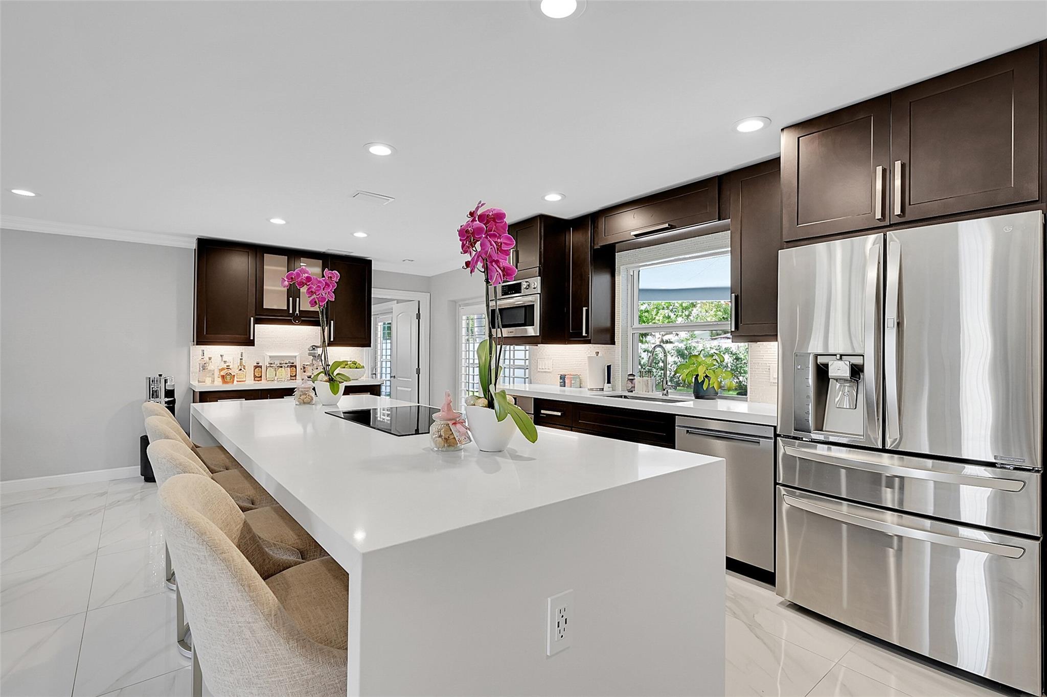 Don't miss out on this incredible opportunity to own a piece of paradise in BOCA WOODS. This amazing Fully Updated Home conveniently located near downtown Mizner Park & world-famous Boca Raton beaches. This house features spacious living room, complete with crown molding and tile floors throughout. The kitchen is a chef's delight, Shaker-style cabinetry, quartz counter top, stainless steel appliances and a breakfast bar. The bedrooms in this home are a haven of comfort with their ceiling fans and ornamental molding. The bathrooms are equally impressive, featuring large vanities and dual sinks. But the real star of the show is the outdoor space. Step outside and you'll find a Heated Pool w/fenced-in large back yard. The patio area is ideal for gatherings with family and friends.